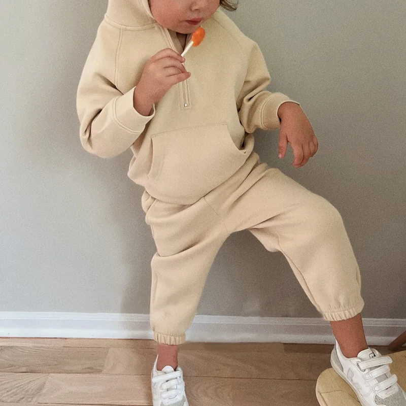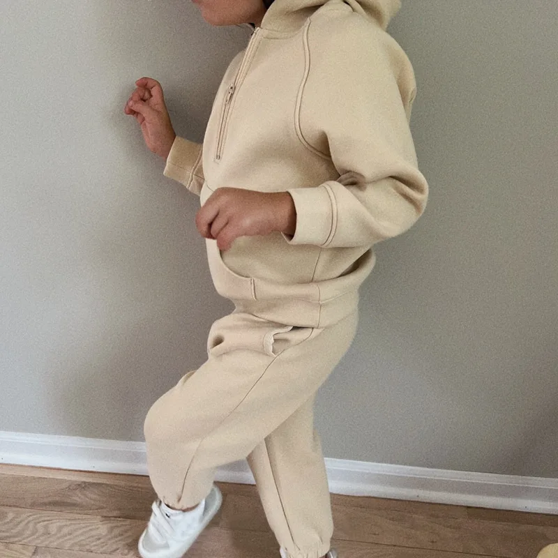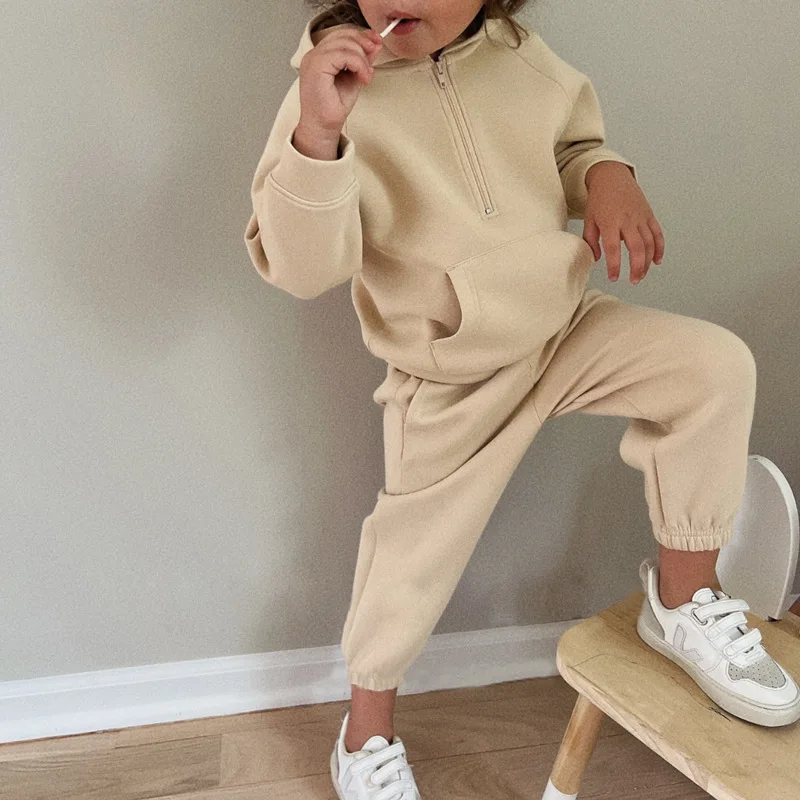 キッズセットアップ 2点セット シンプルハーフジップ長袖スウェットシャツ+ロングスウェットパンツ【mh0008357】
