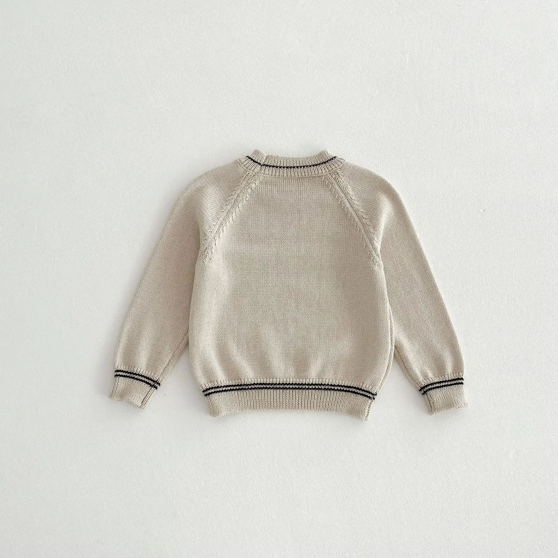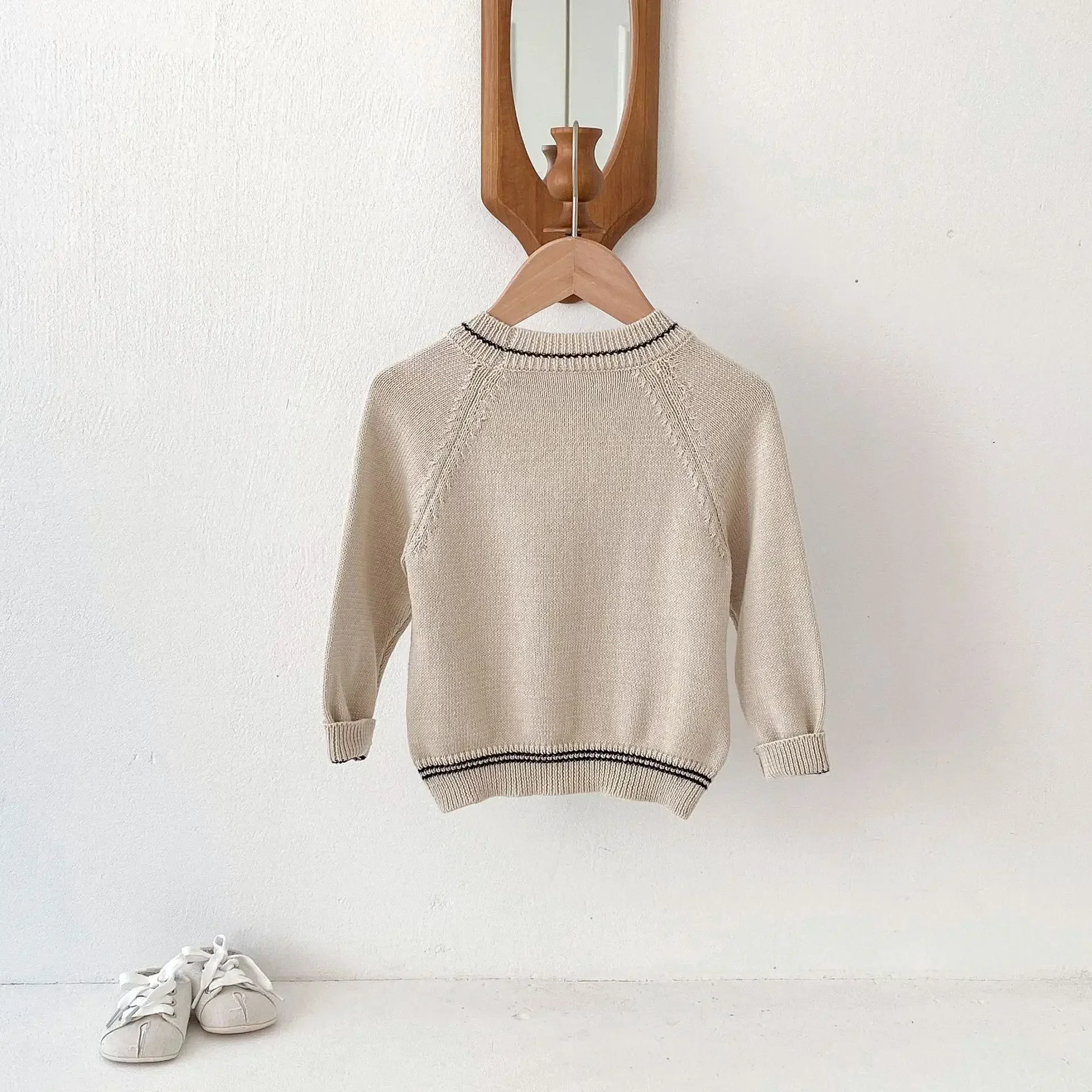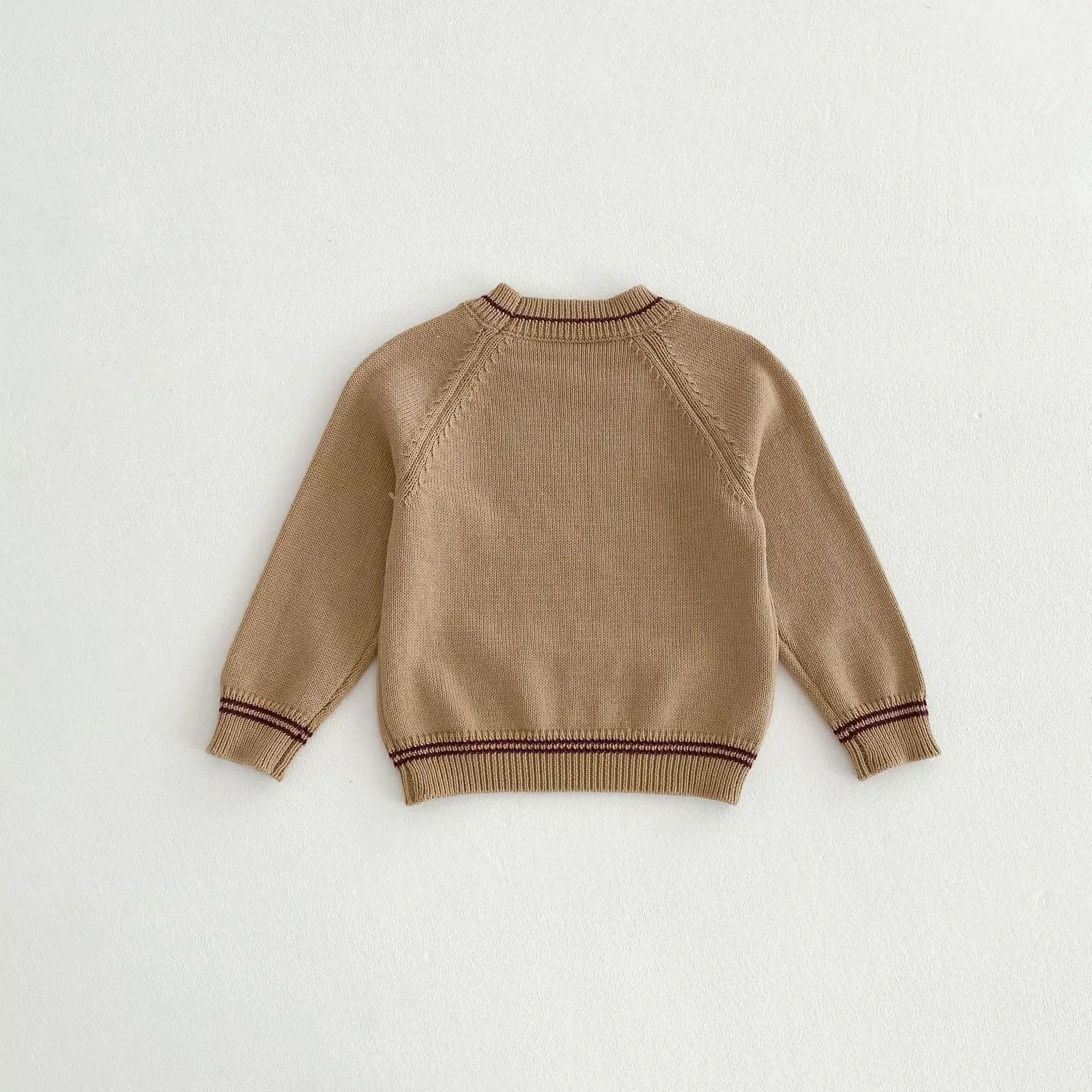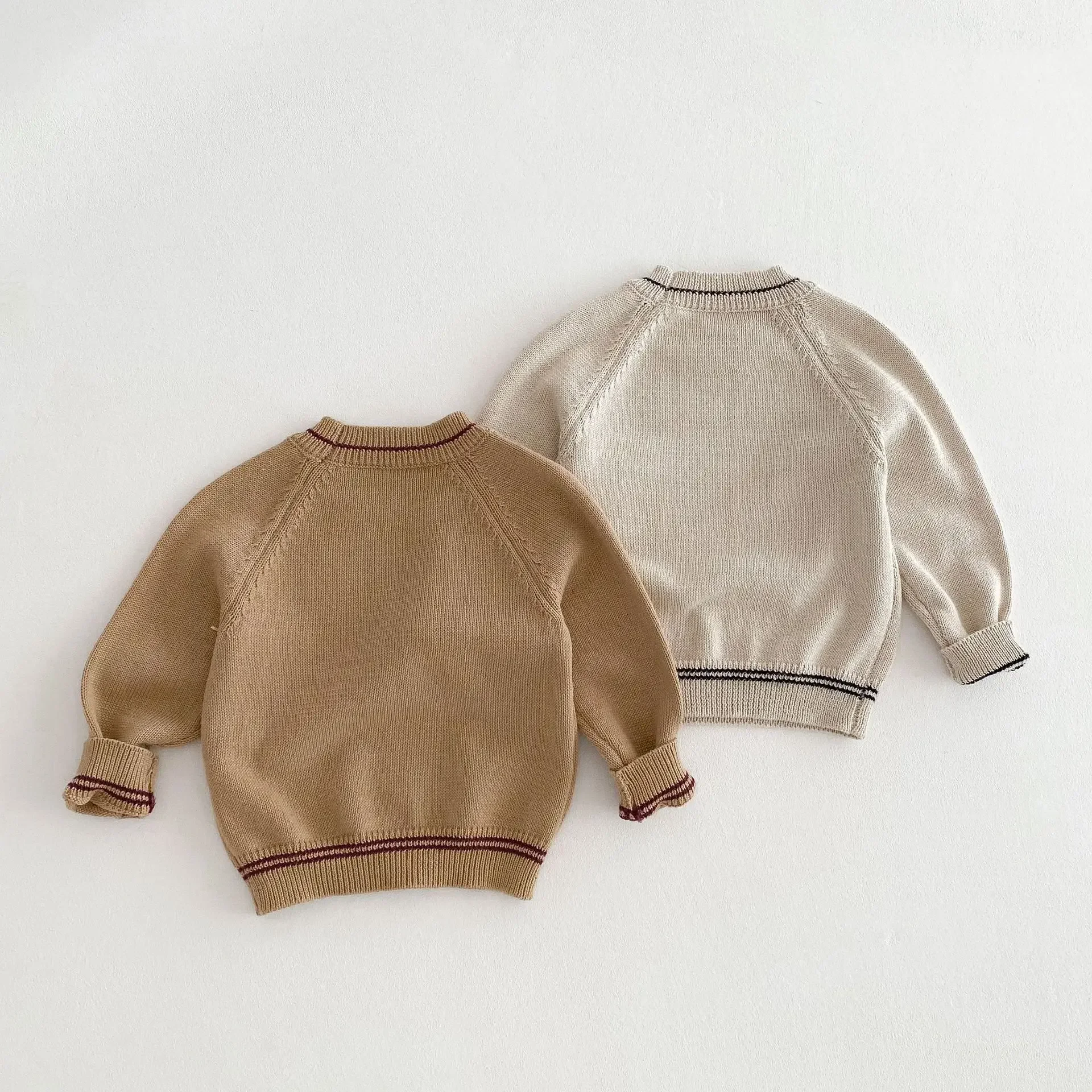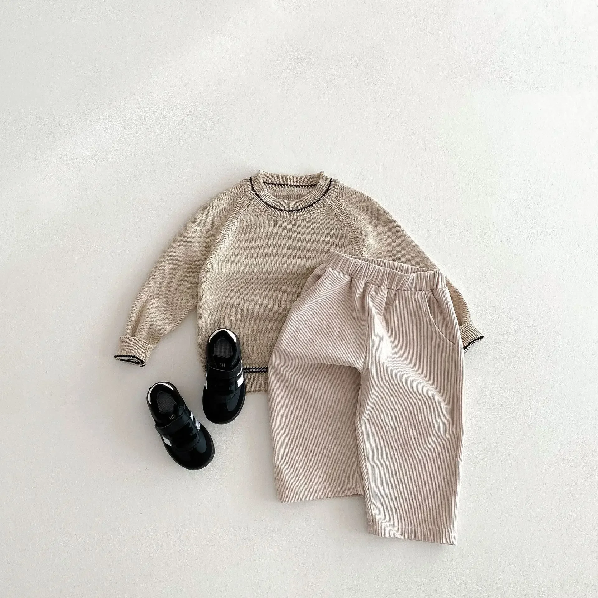 ニット長袖セーターとコーデュロイサスペンダーパンツのセットアップです。温かみのあるニットは、柔らかな素材で肌触りが良く、カジュアルながらも可愛らしい印象を与えます。サスペンダーパンツは、ゆったりとしたシルエットで動きやすく、お子様の遊びをサポートします。コーデュロイ素材が秋冬にぴったりで、着回しやすいデザインが魅力です。組み合わせることで、おしゃれで快適なスタイルを楽しめるこのセットは、普段使いはもちろん、特別な日のお出かけにも最適です。