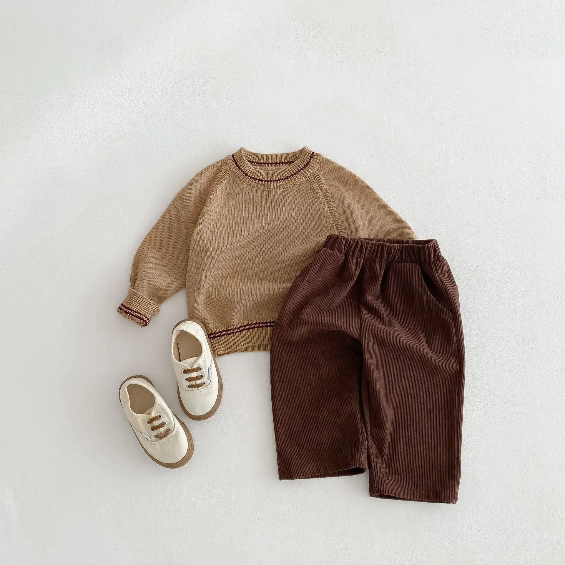 キッズトップス/オーバーオール ニット長袖セーター/コーデュロイサスペンダーパンツサロペット【mh0008958】
