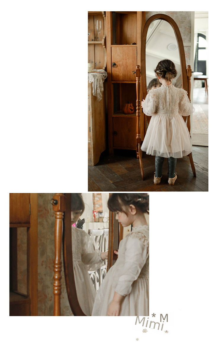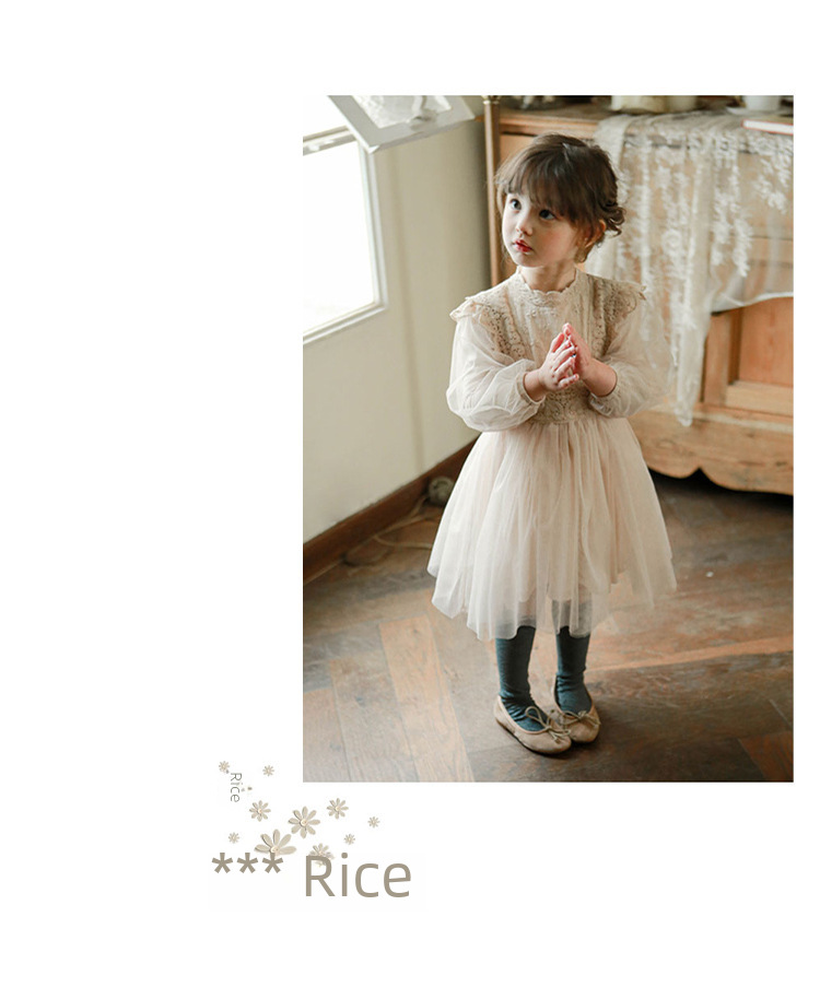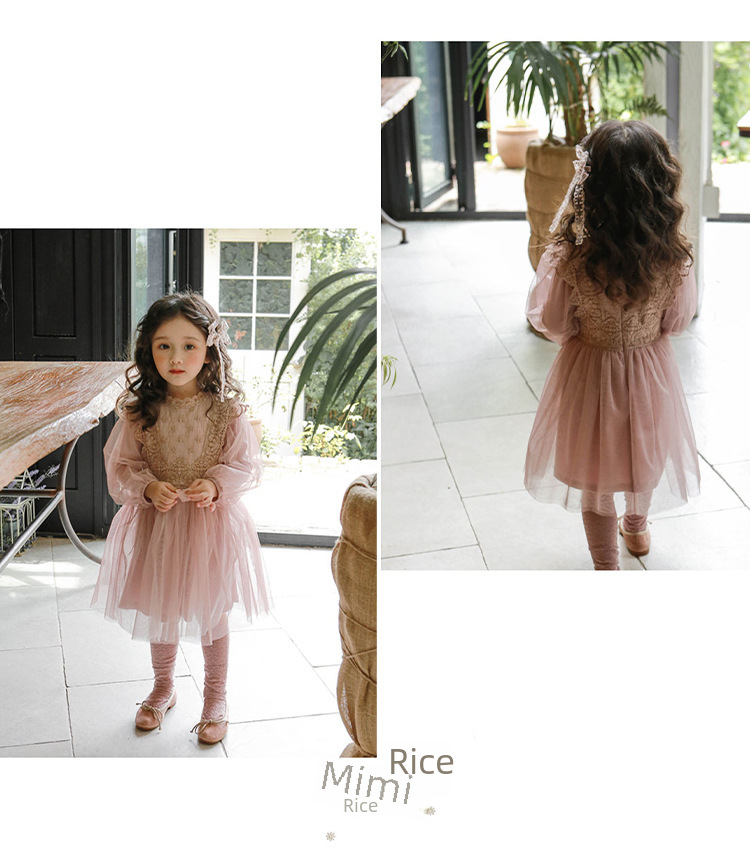 キッズワンピース レースチュールフリル長袖ドレスパーティワンピース【mh0009043】