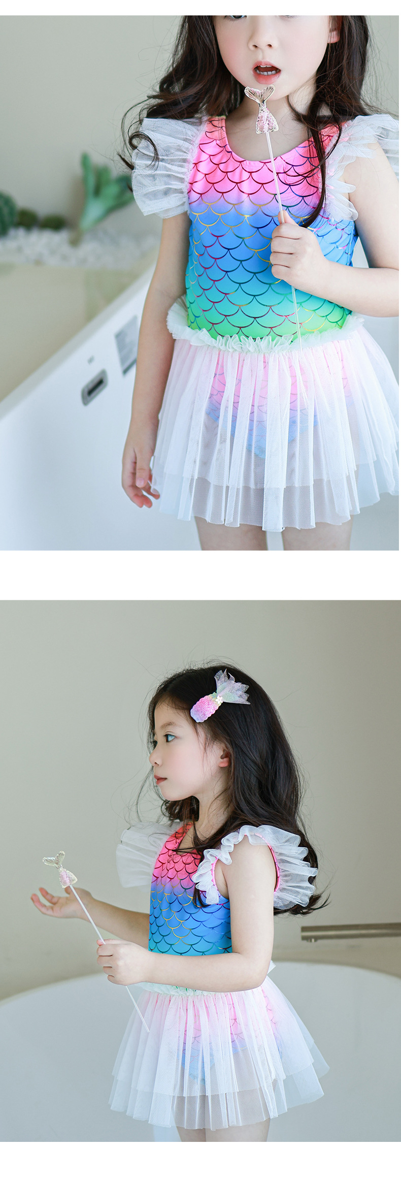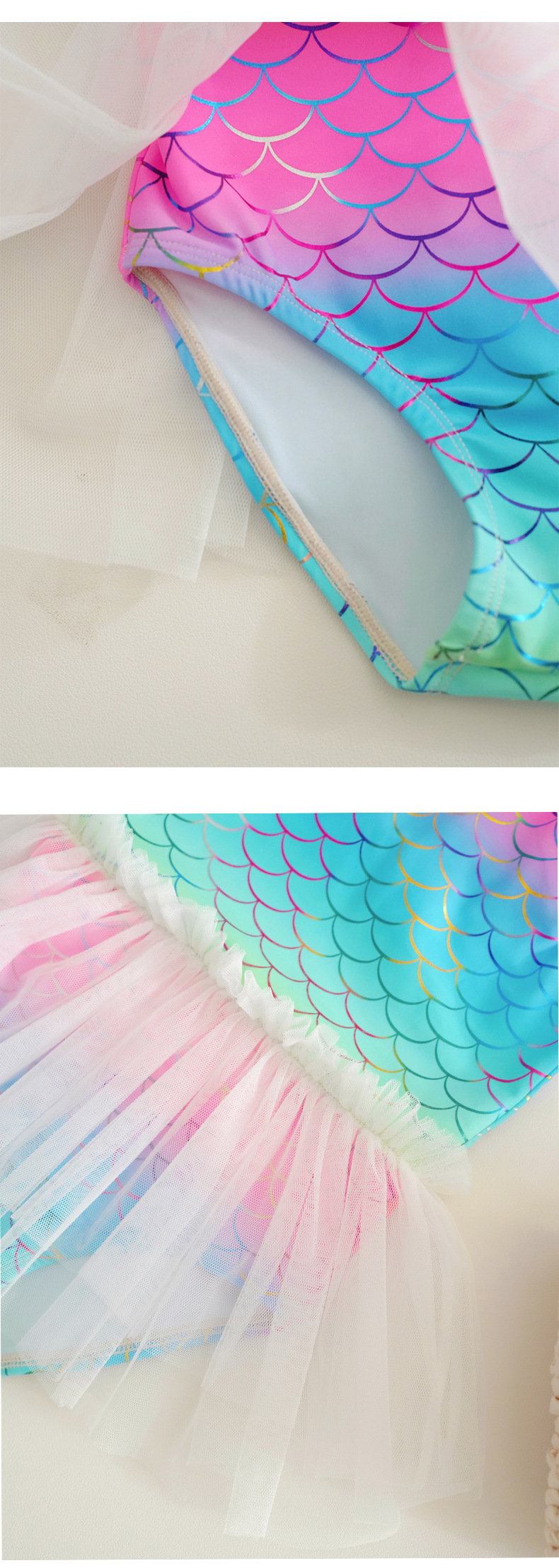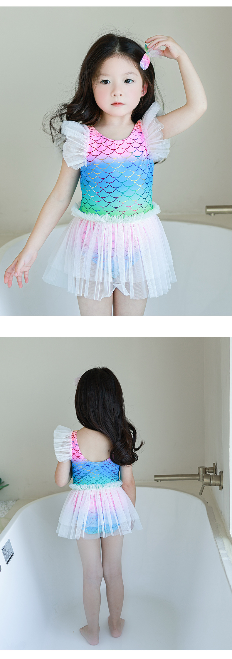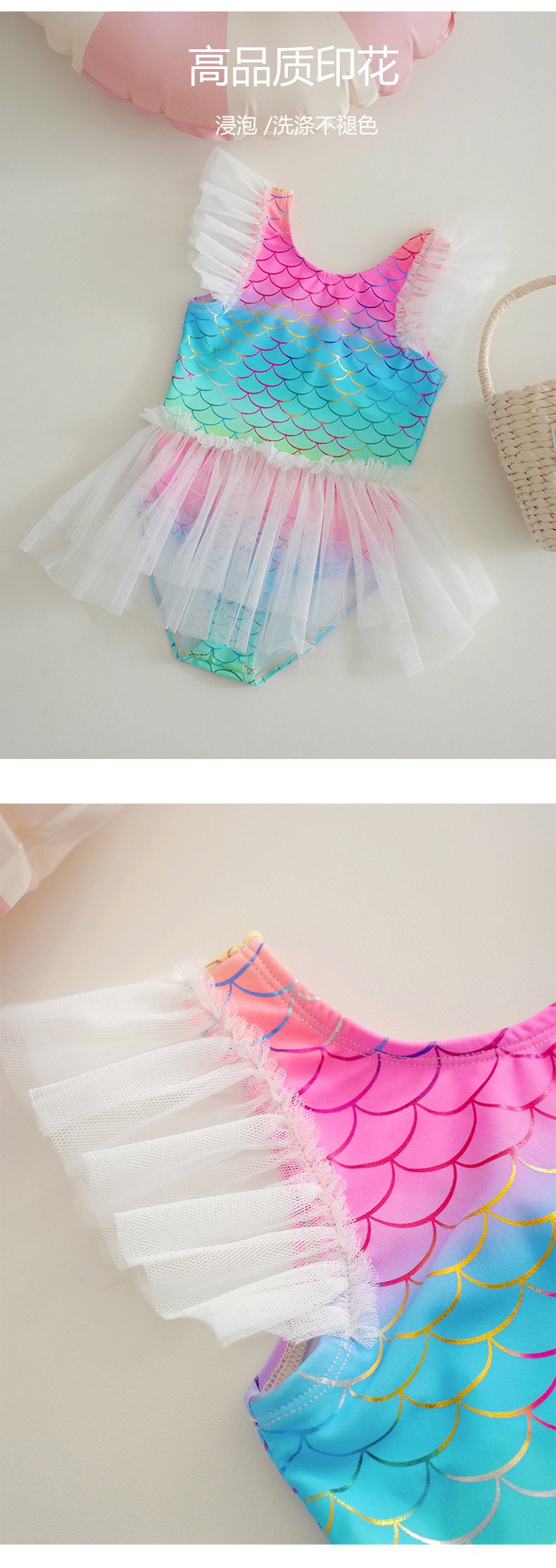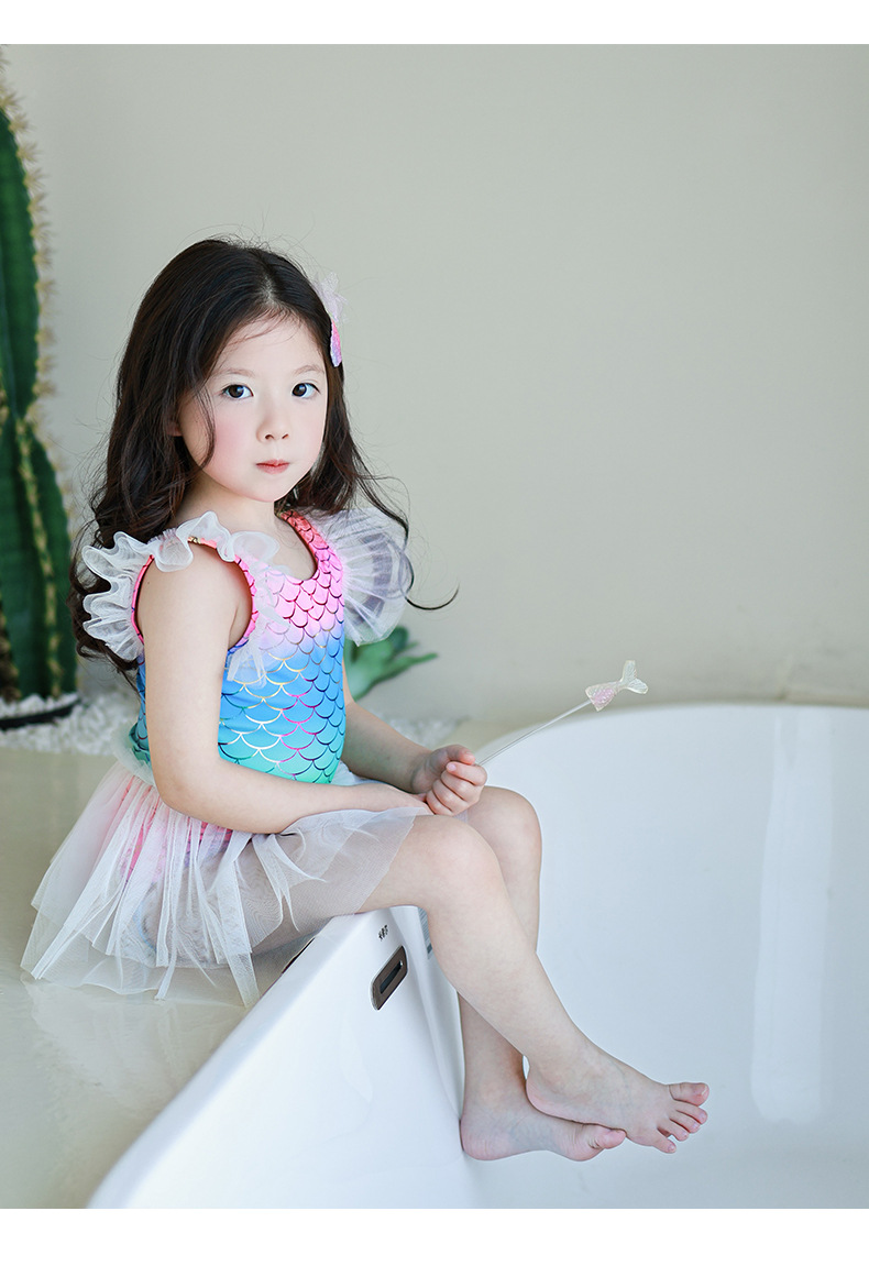 キッズ水着 マーメイド人魚姫フリルワンピーススイムウェア 帽子セット【mh0009082】