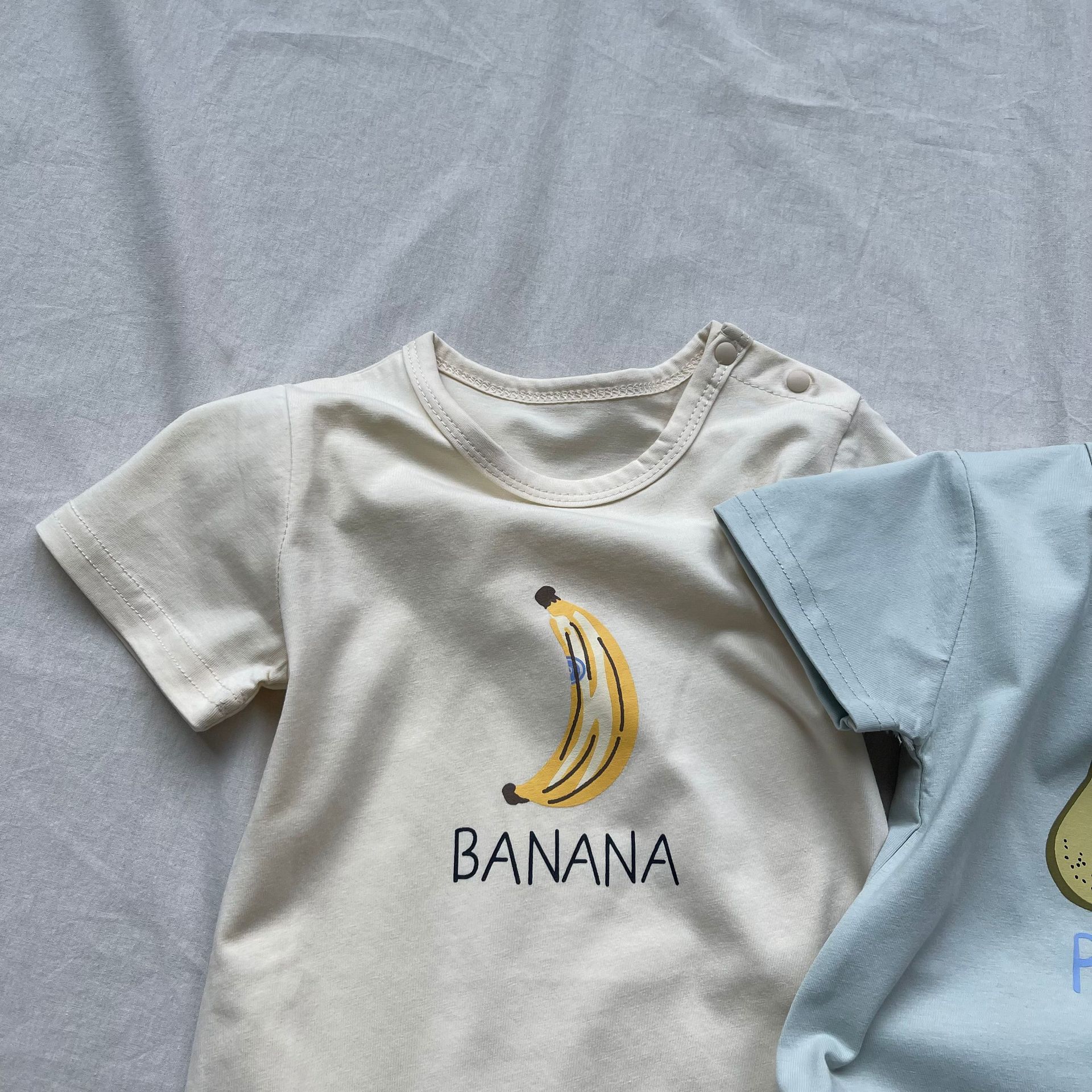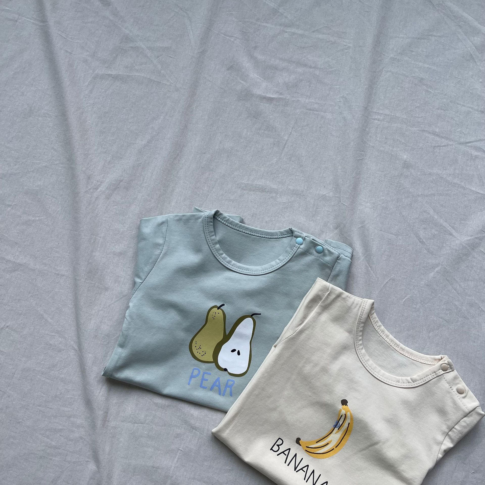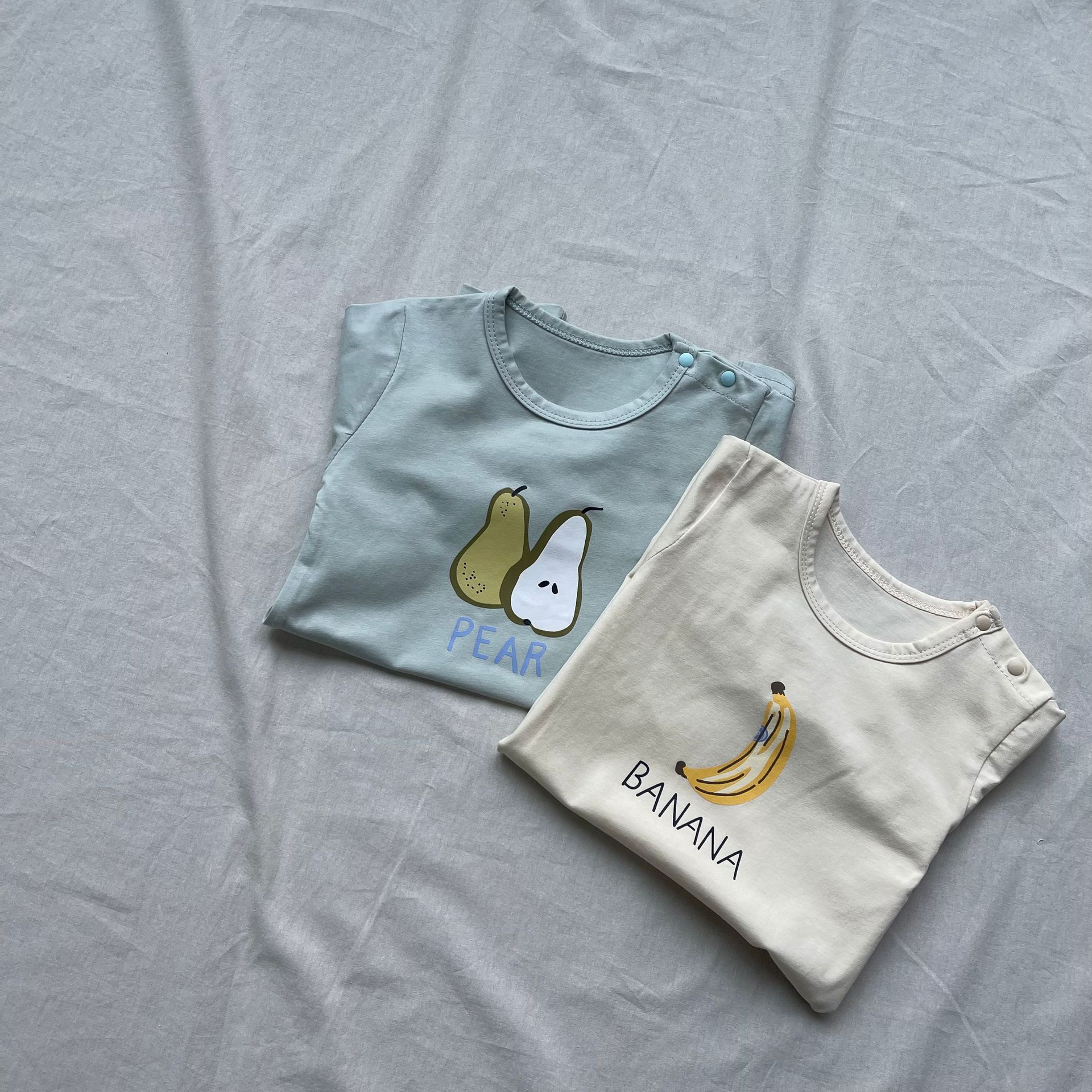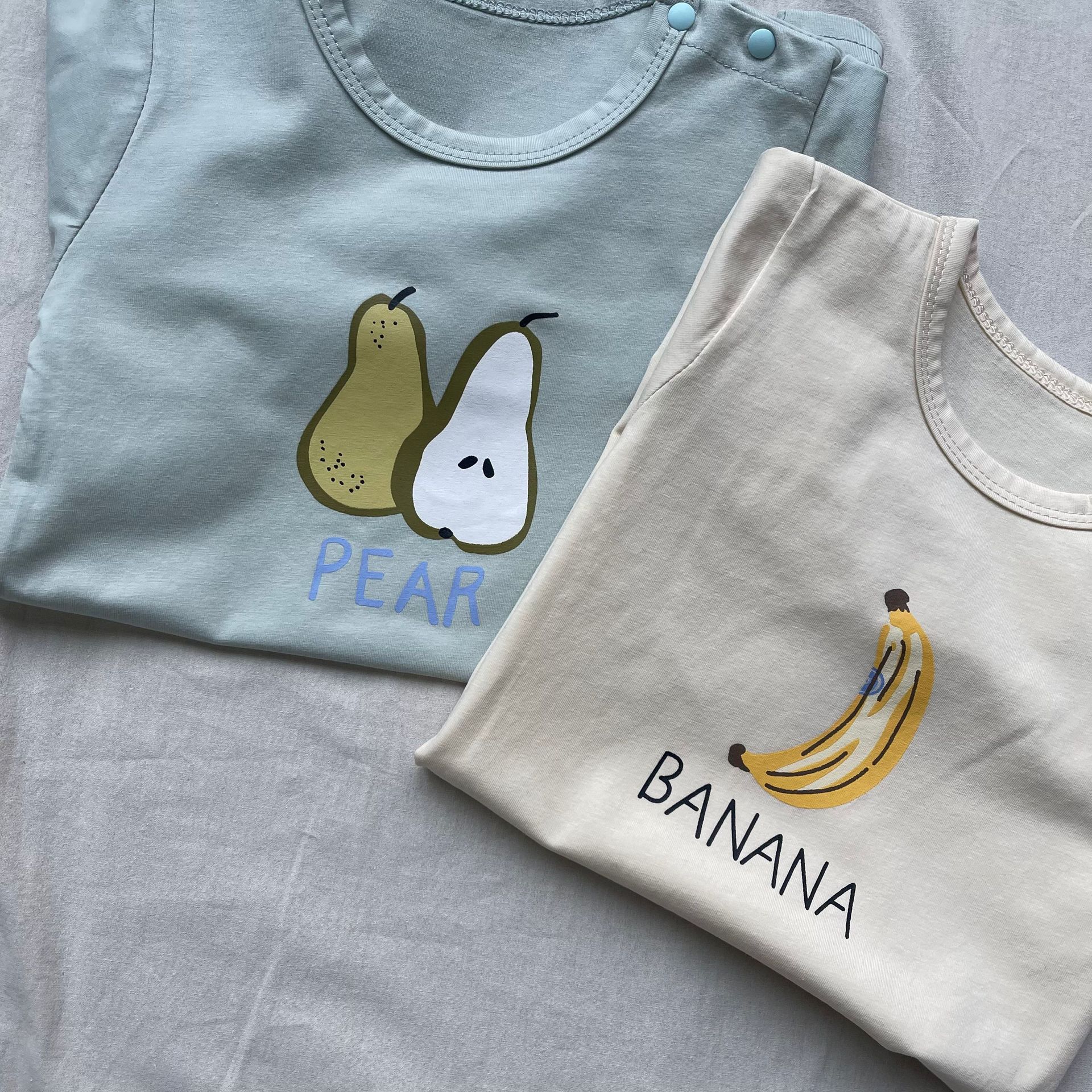ベビーロンパース 梨/バナナプリント半袖ボディスーツ【mh0009169】