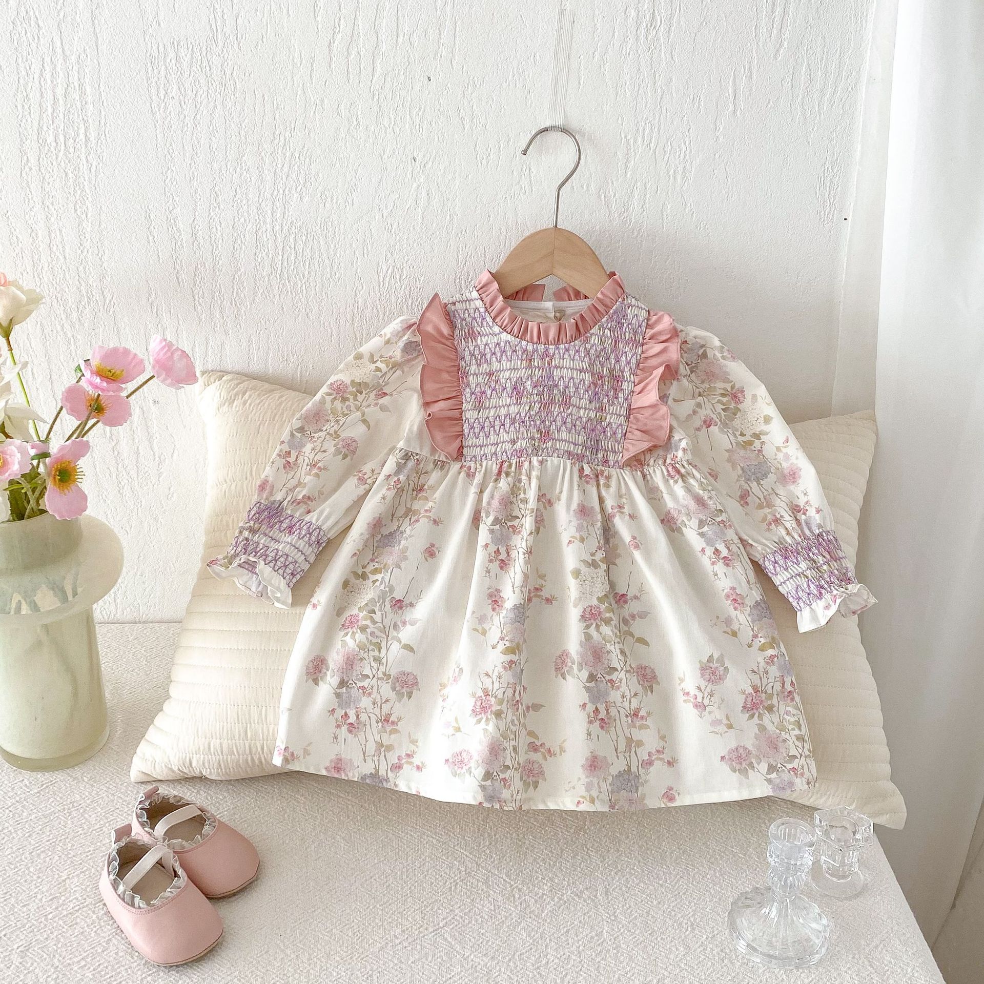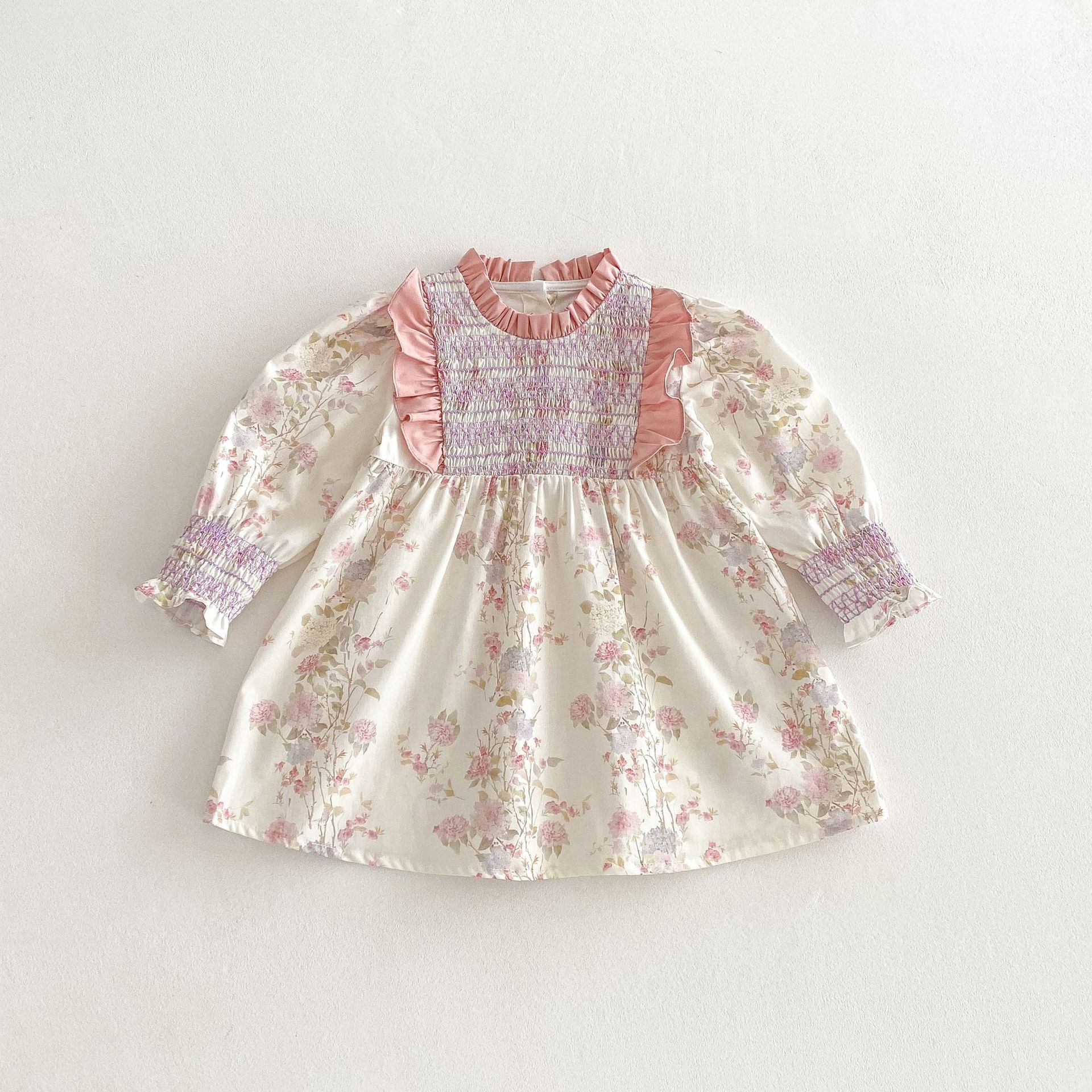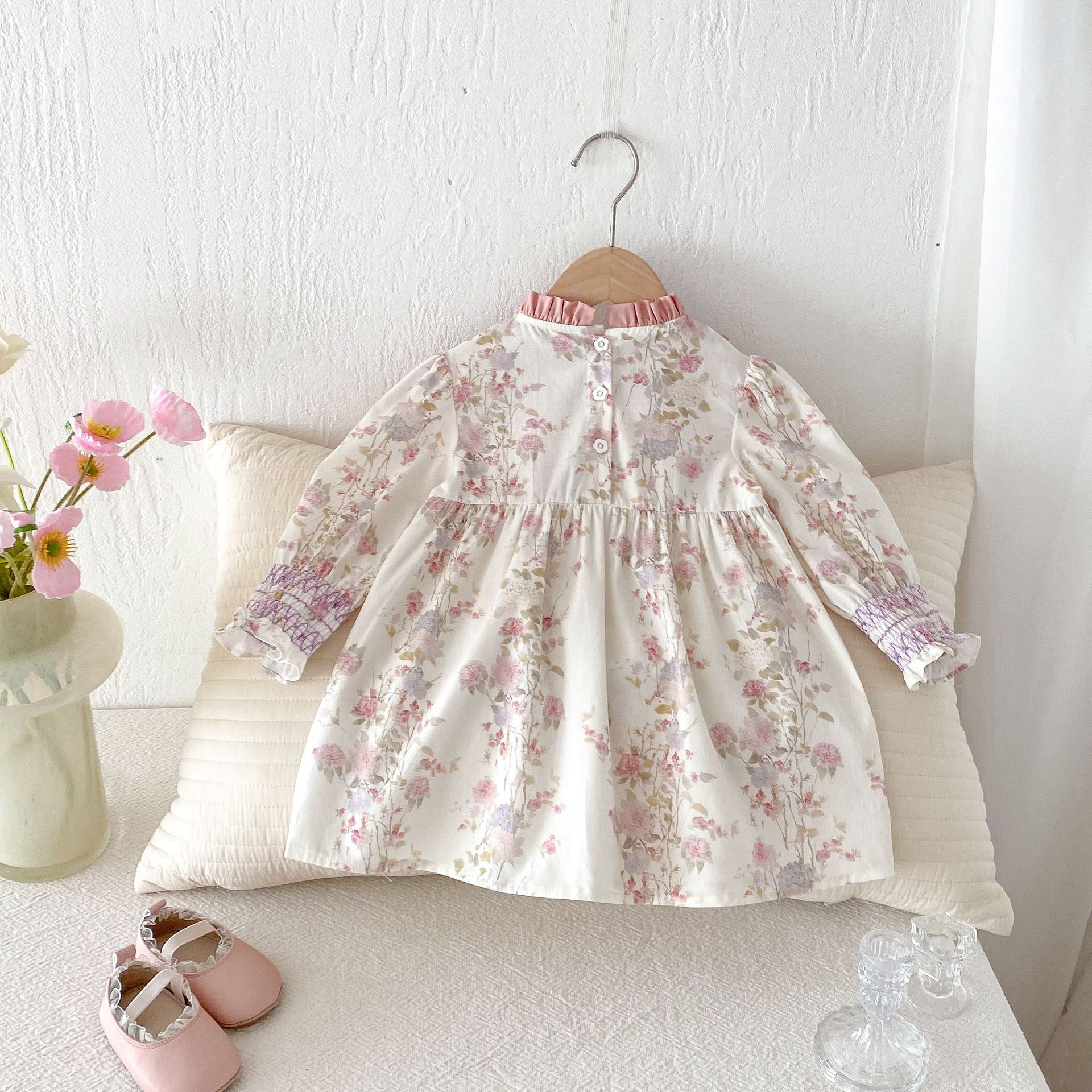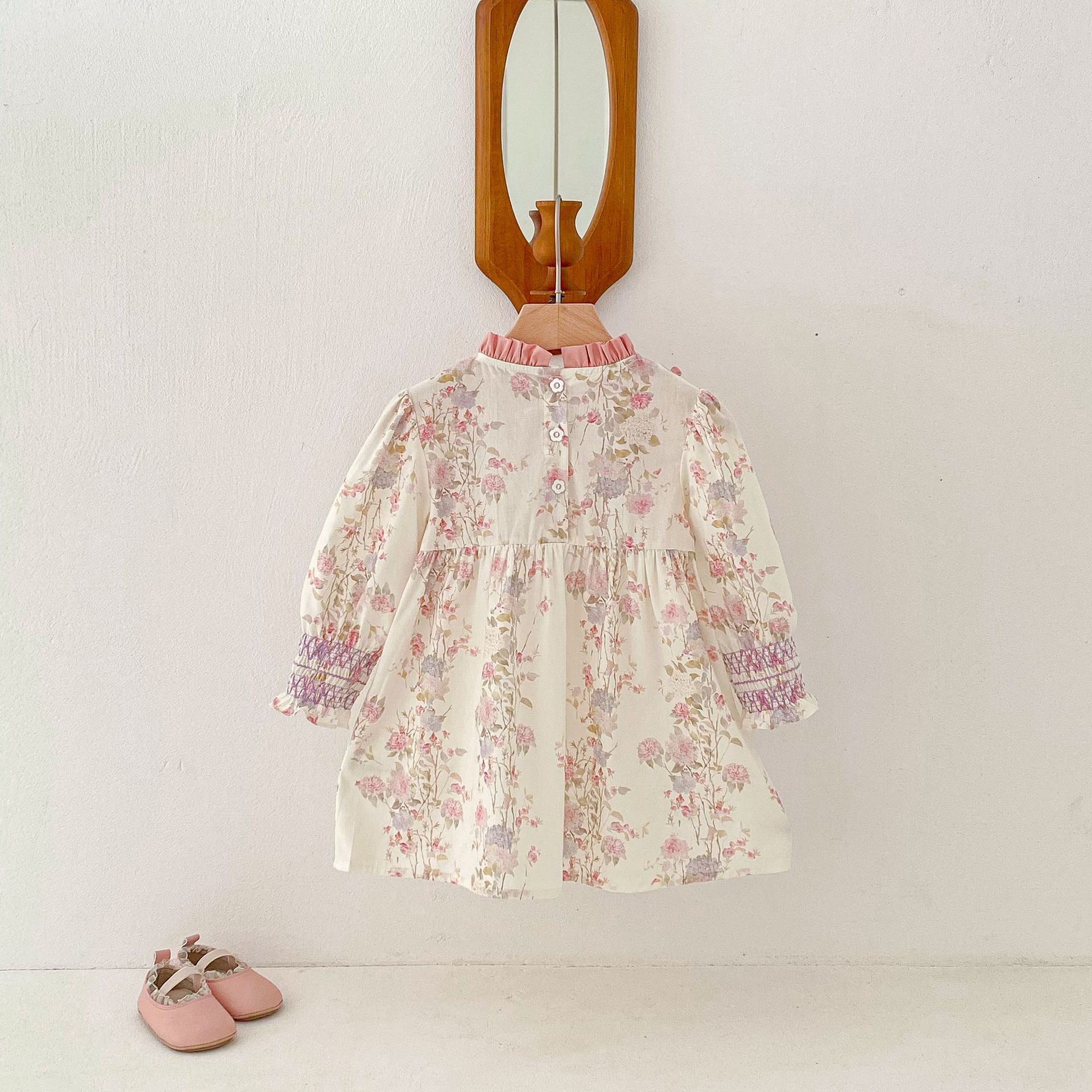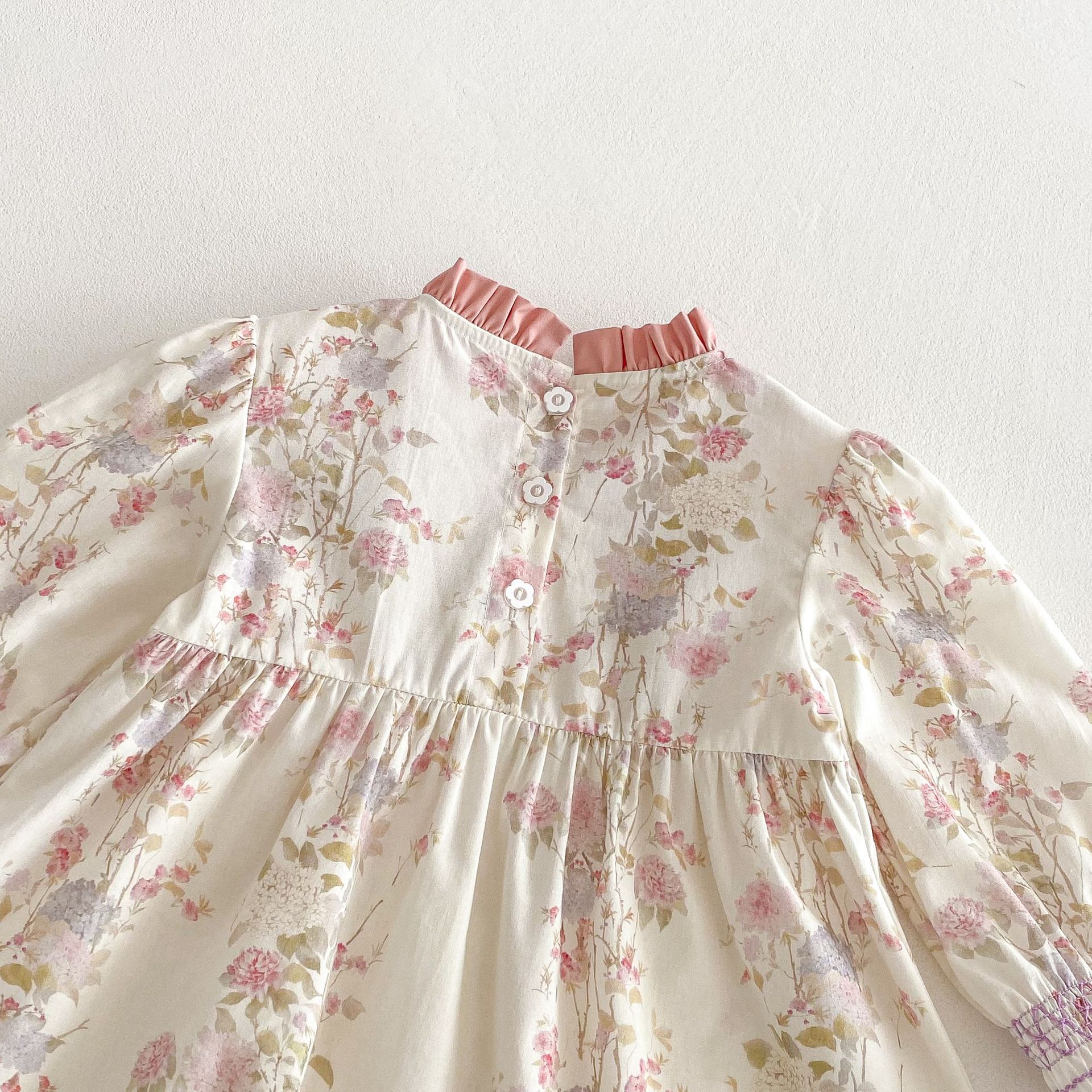 #キッズワンピース #フレンチスタンドカラー #花柄ワンピース #レースデザイン #プリンセスワンピース #子供服
