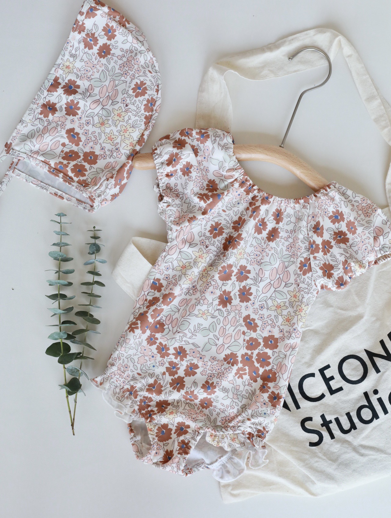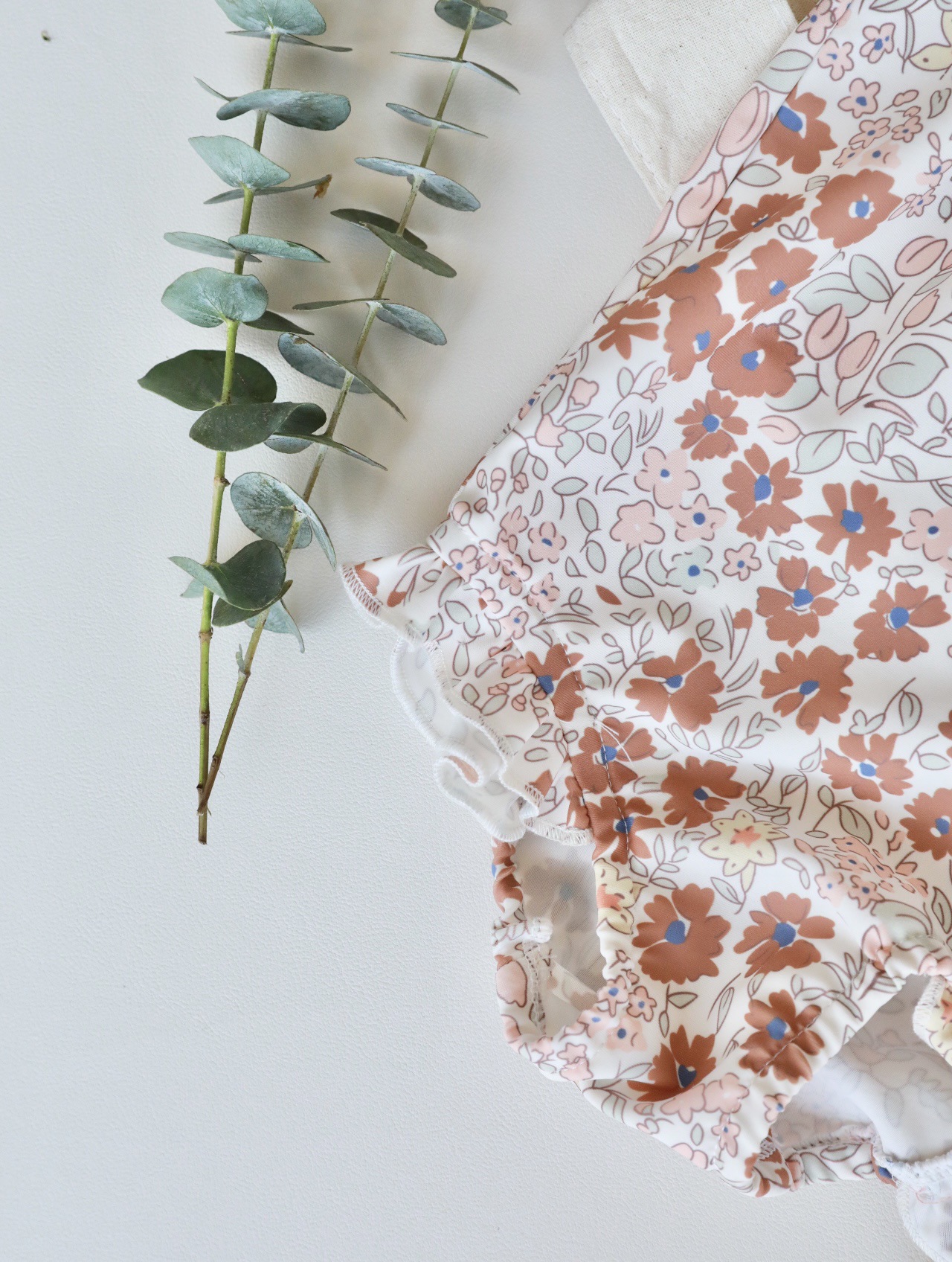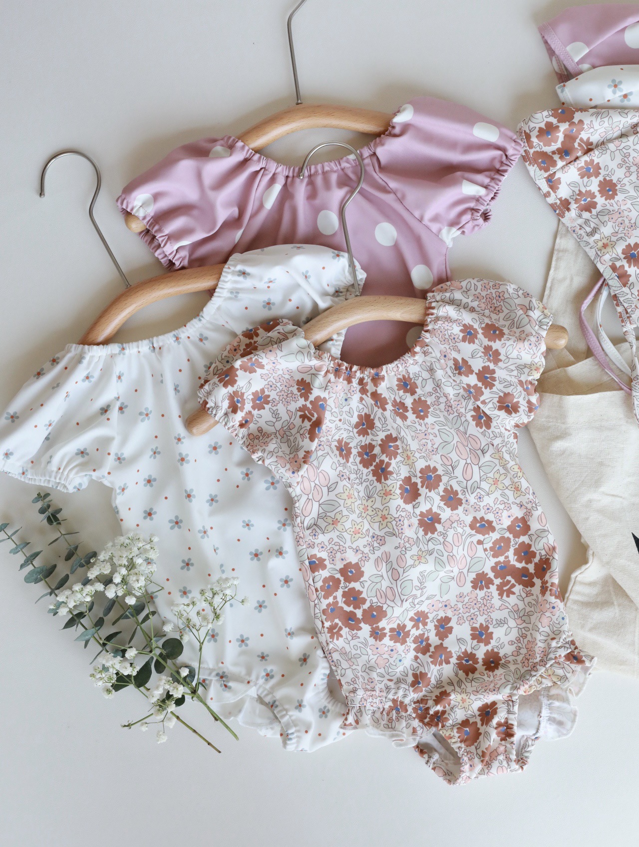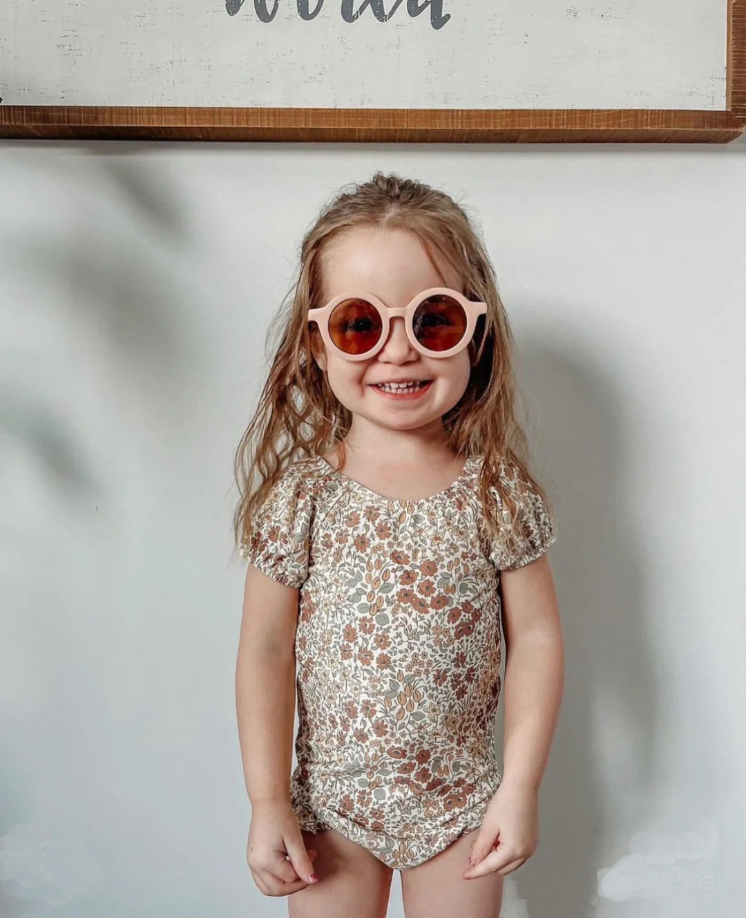 ガールズ水着 半袖パフスリーブワンピーススイムウェア ラッシュガード【mh0009287】