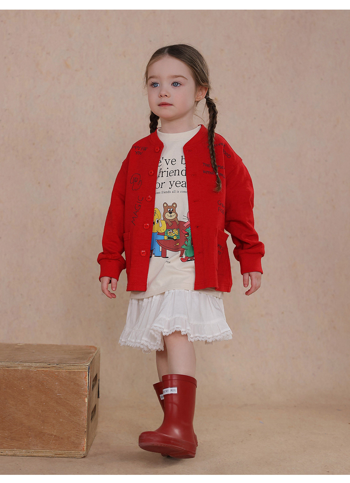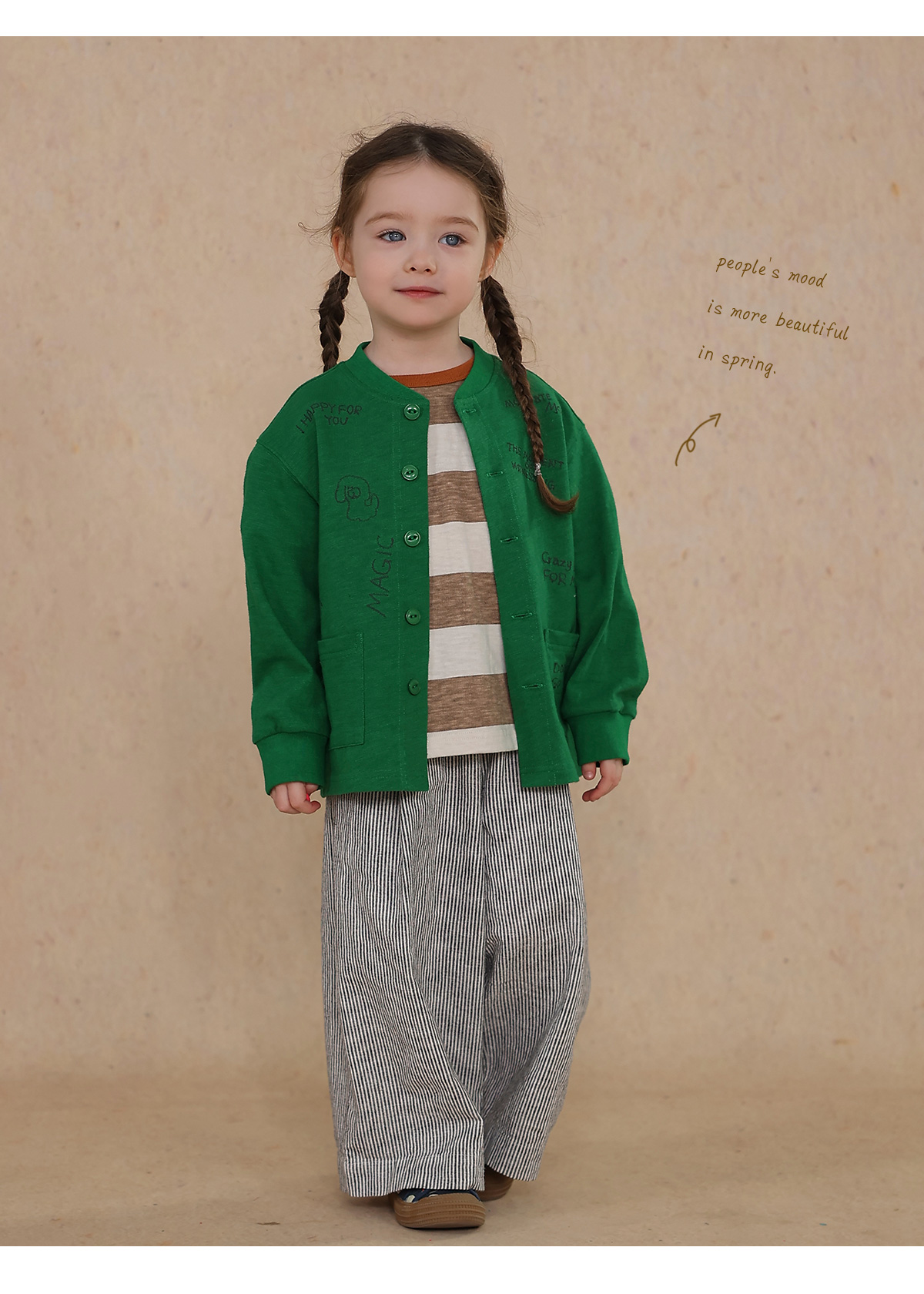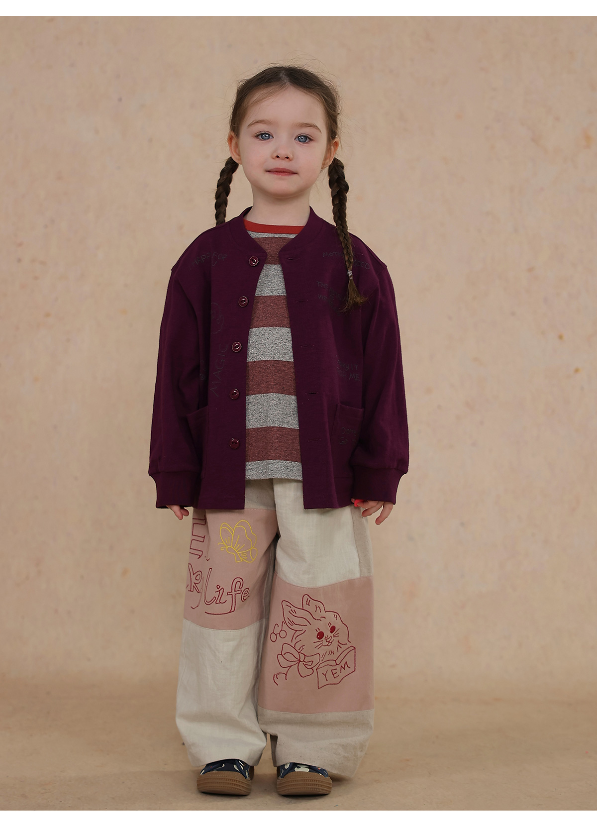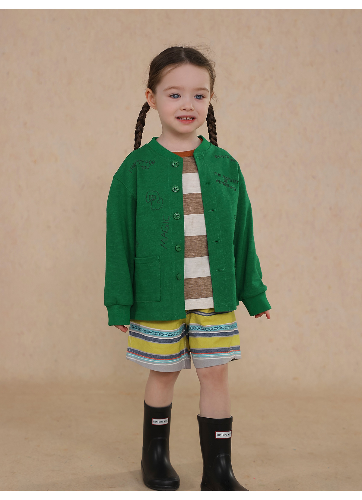 手描き風の刺繍が目を引く、薄手のガールズ用サマーカーディガンです。軽やかな素材感で通気性に優れ、冷房対策や日よけとしても活躍する一枚。フロントはボタン開きで着脱しやすく、羽織るだけでコーディネートに華やかさをプラスできます。袖口や裾に施された繊細なディテールが上品な印象を与え、ワンピースやパンツスタイルなど幅広いスタイルに合わせやすいのも魅力。外出時や屋内での温度調整に便利なアイテムです。