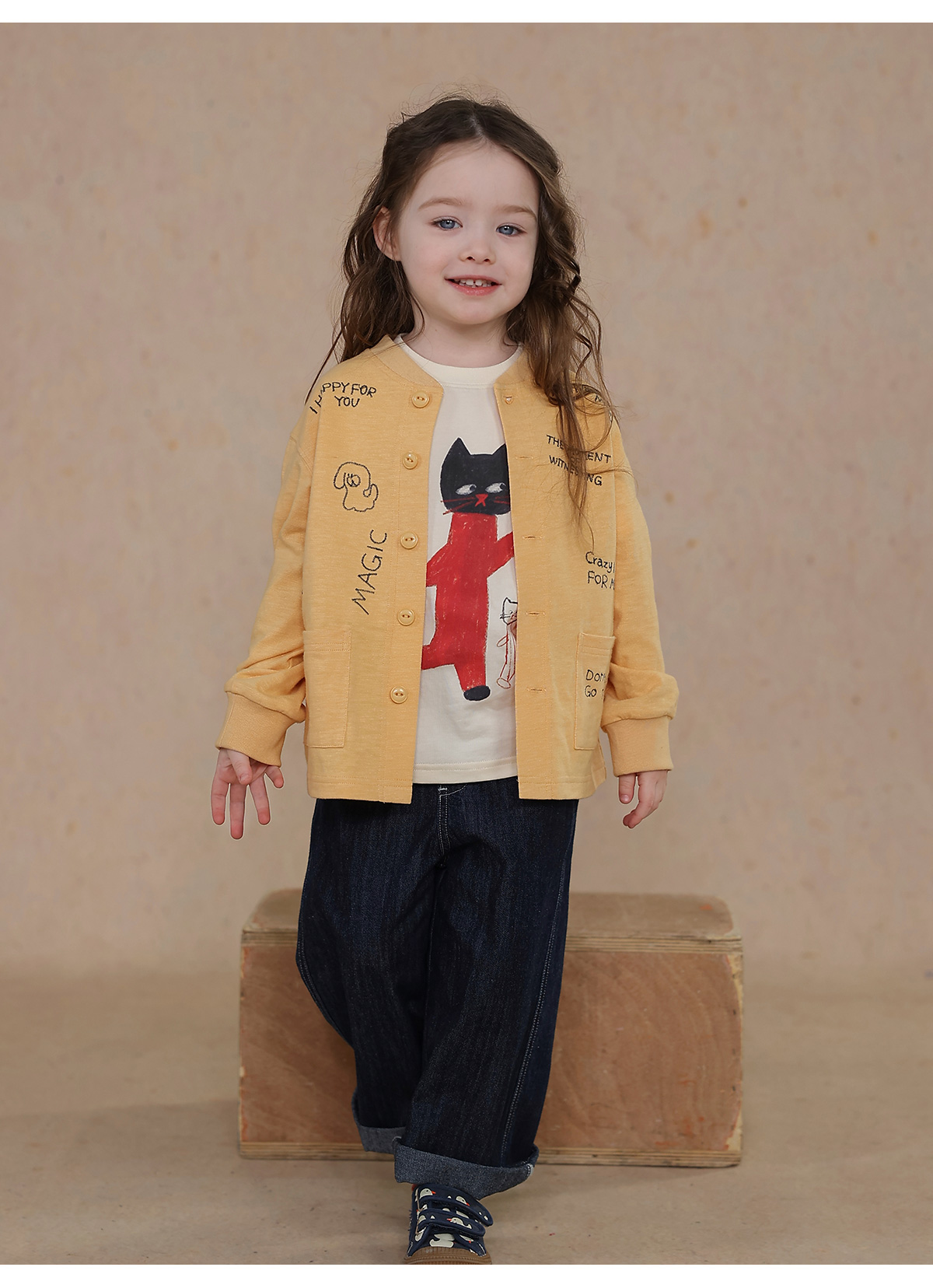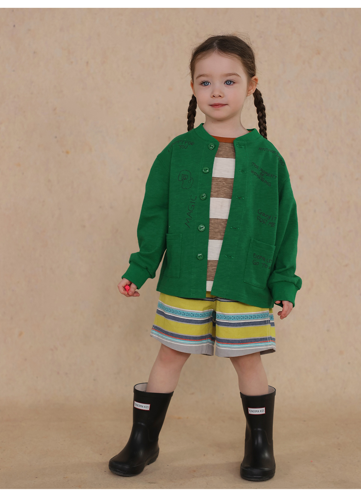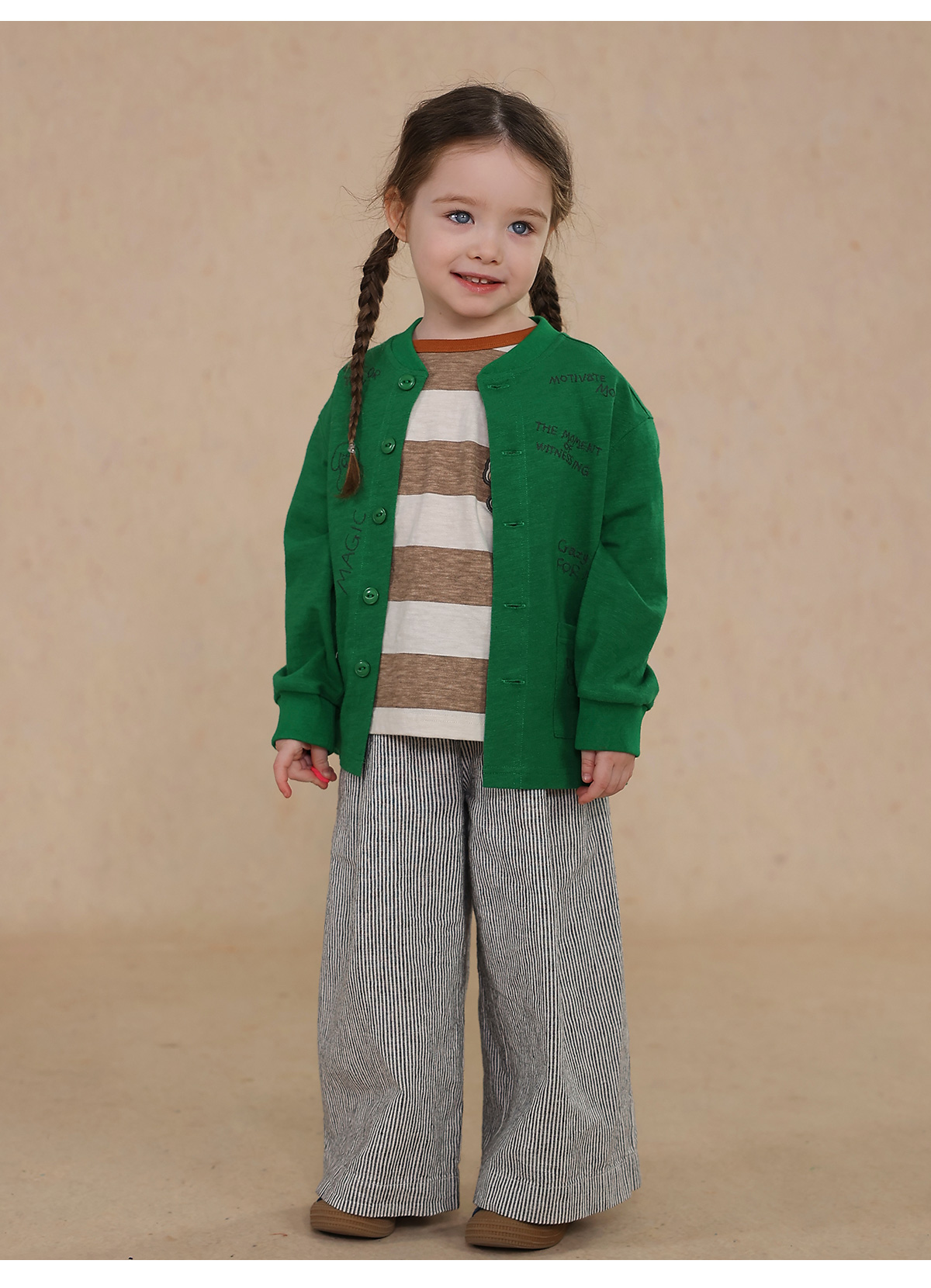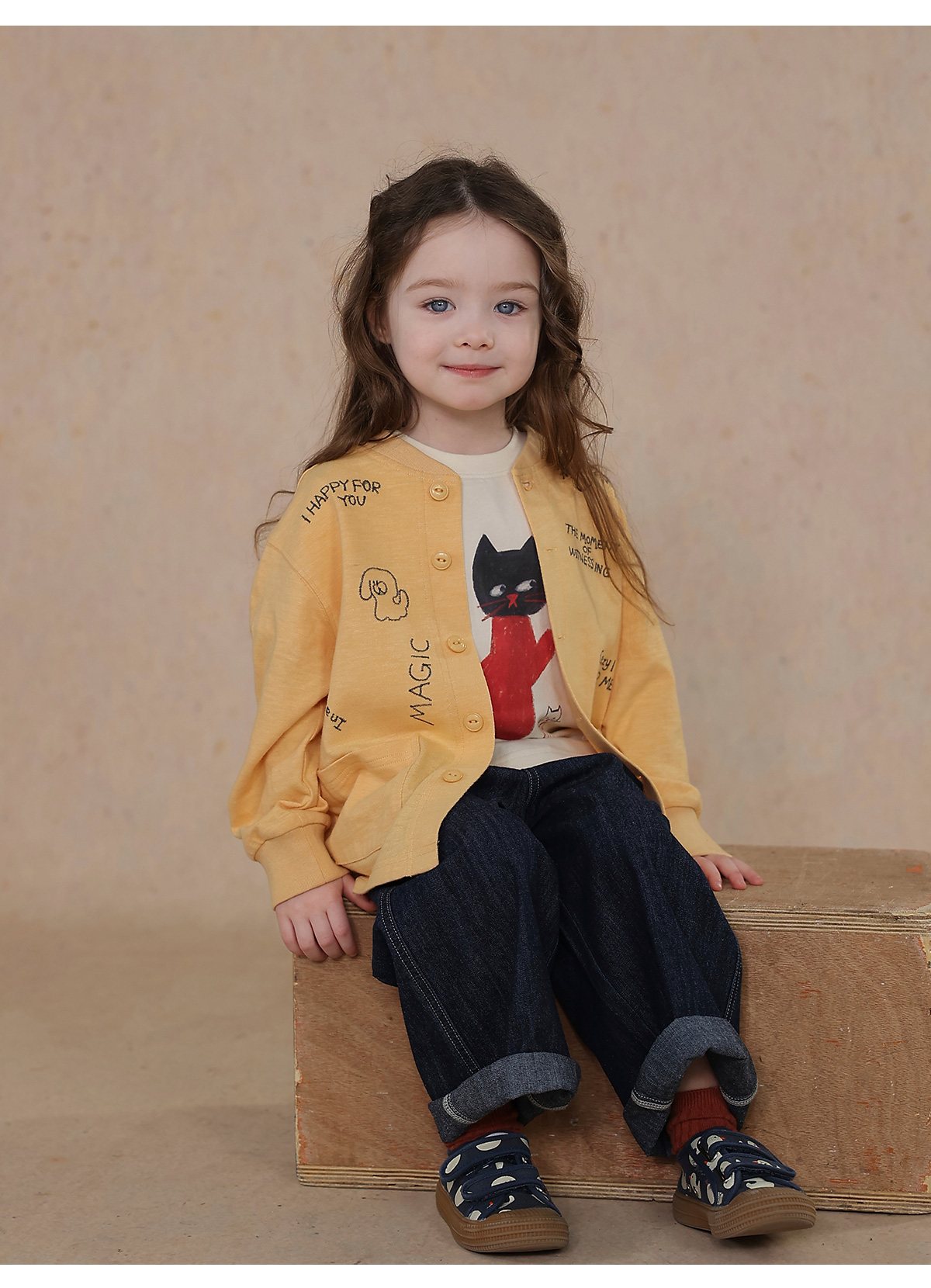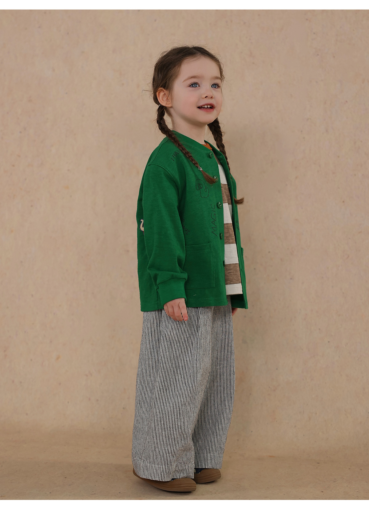 手描き風の刺繍が目を引く、薄手のガールズ用サマーカーディガンです。軽やかな素材感で通気性に優れ、冷房対策や日よけとしても活躍する一枚。フロントはボタン開きで着脱しやすく、羽織るだけでコーディネートに華やかさをプラスできます。袖口や裾に施された繊細なディテールが上品な印象を与え、ワンピースやパンツスタイルなど幅広いスタイルに合わせやすいのも魅力。外出時や屋内での温度調整に便利なアイテムです。