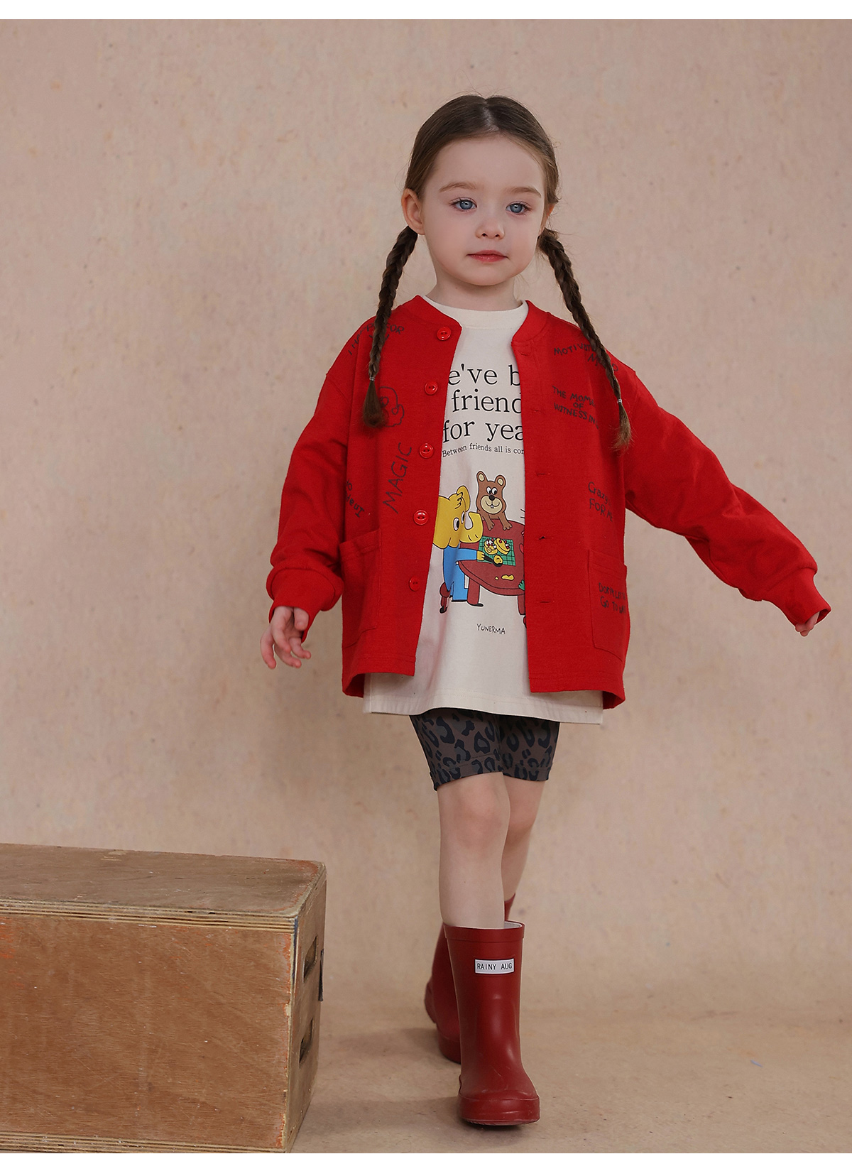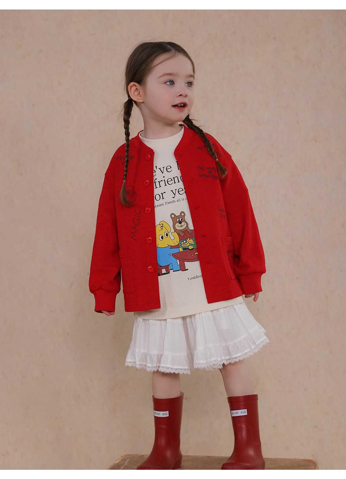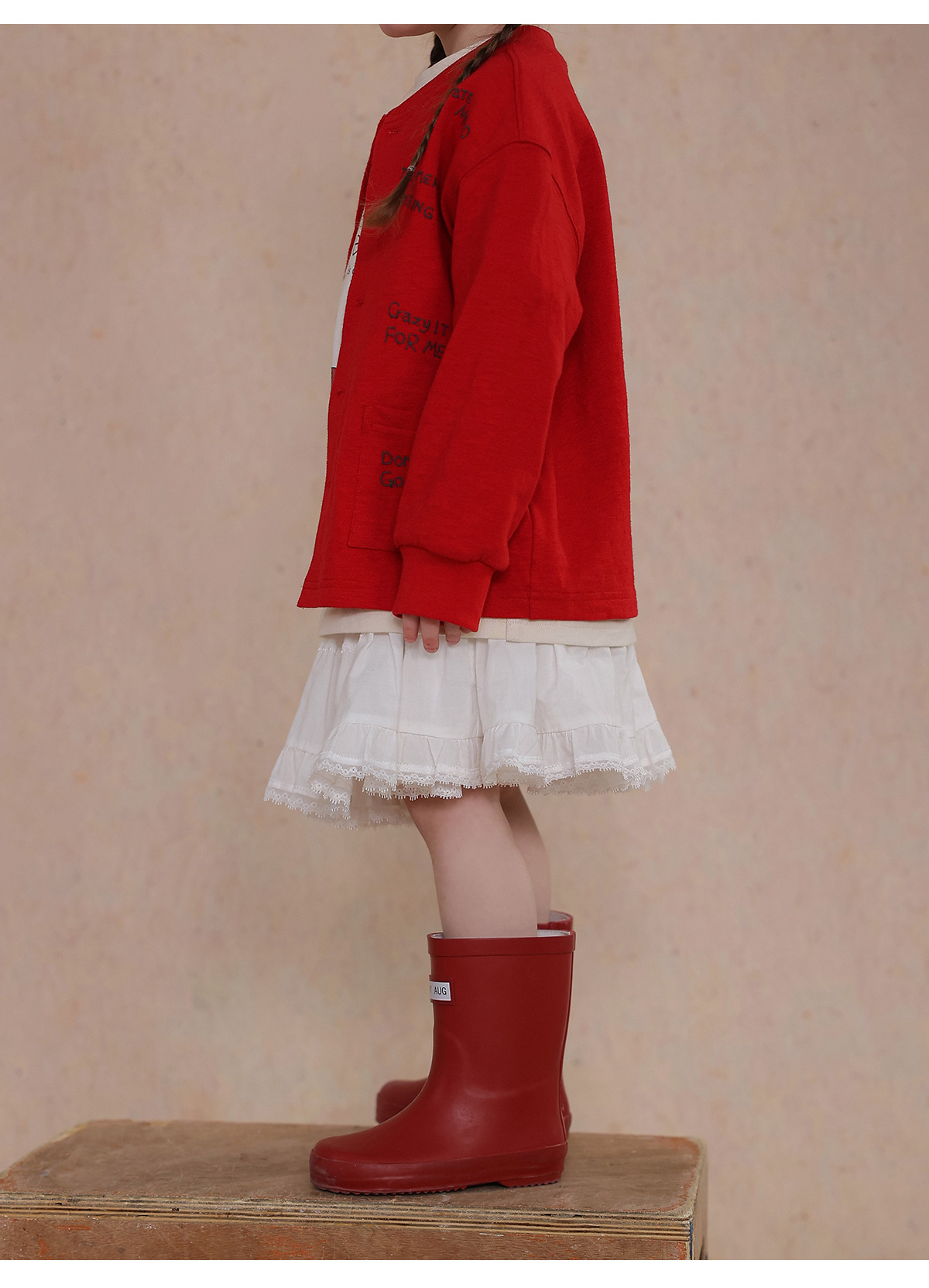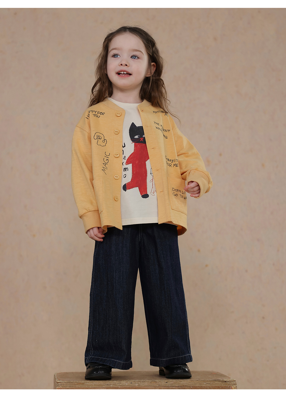 手描き風の刺繍が目を引く、薄手のガールズ用サマーカーディガンです。軽やかな素材感で通気性に優れ、冷房対策や日よけとしても活躍する一枚。フロントはボタン開きで着脱しやすく、羽織るだけでコーディネートに華やかさをプラスできます。袖口や裾に施された繊細なディテールが上品な印象を与え、ワンピースやパンツスタイルなど幅広いスタイルに合わせやすいのも魅力。外出時や屋内での温度調整に便利なアイテムです。