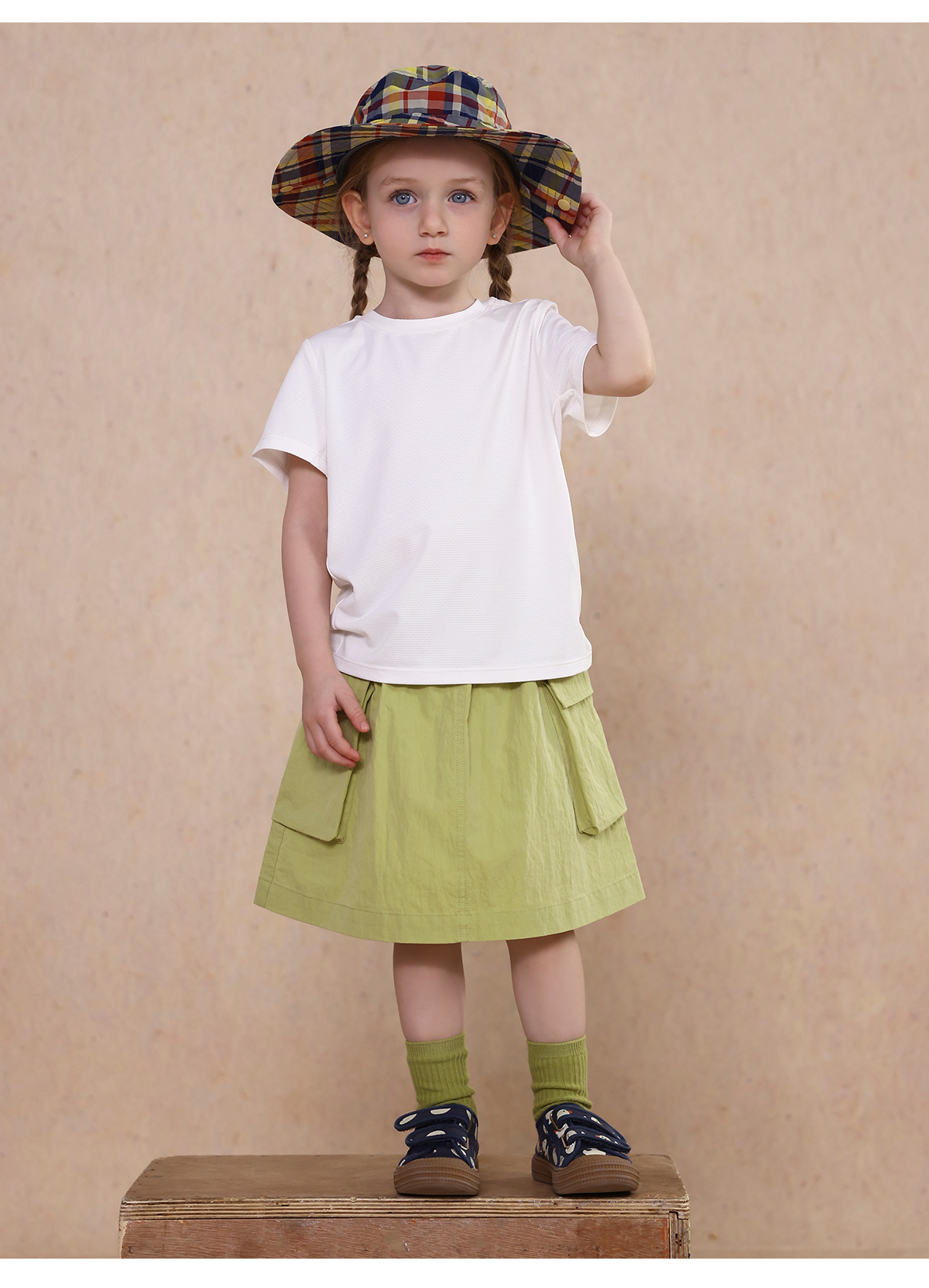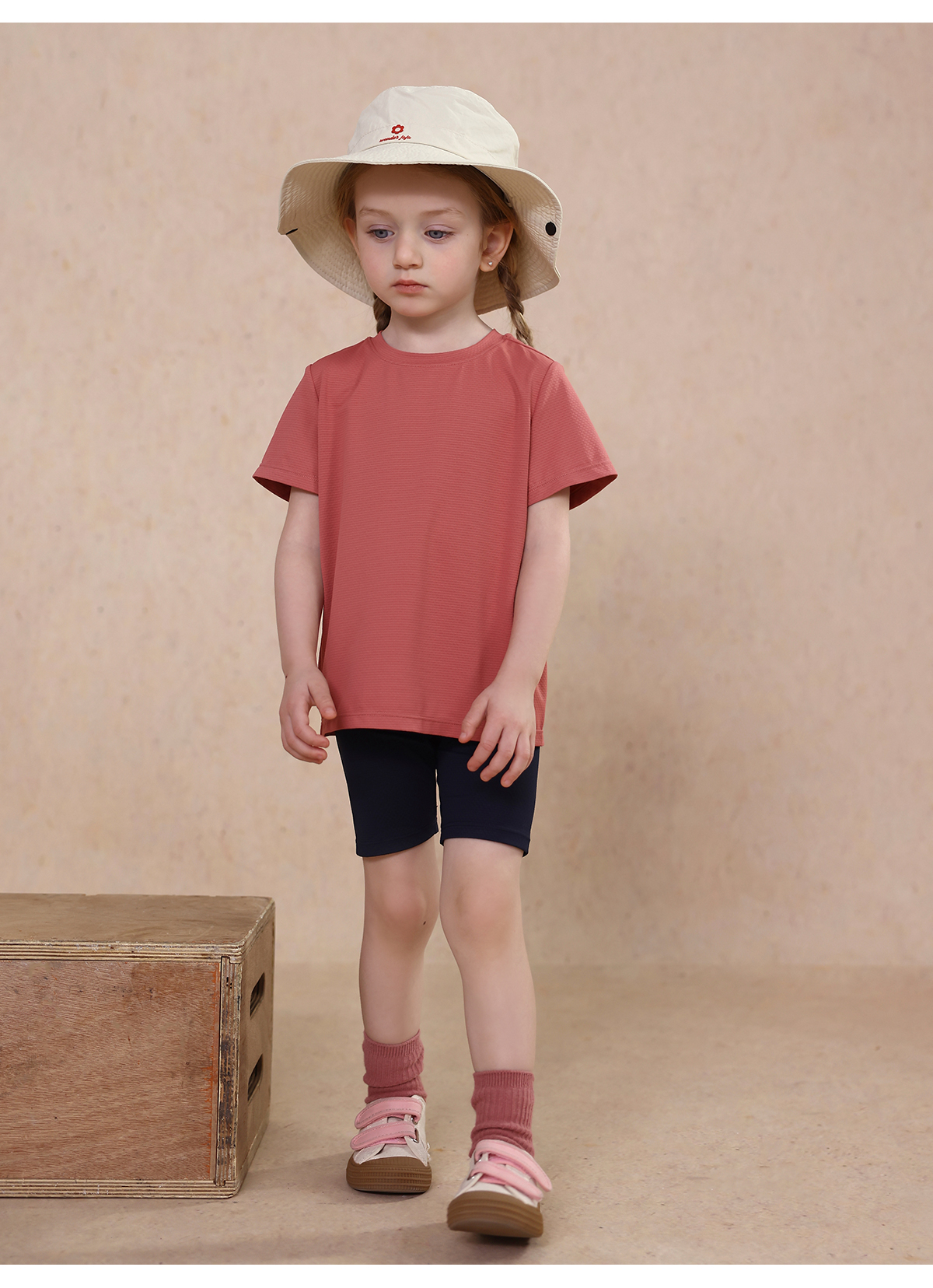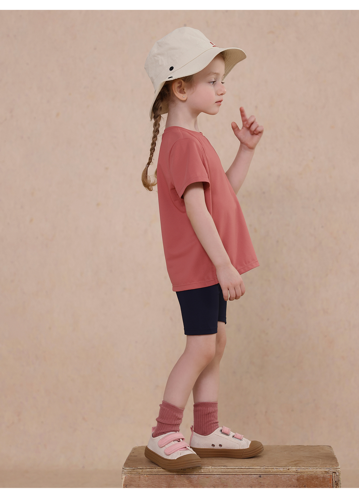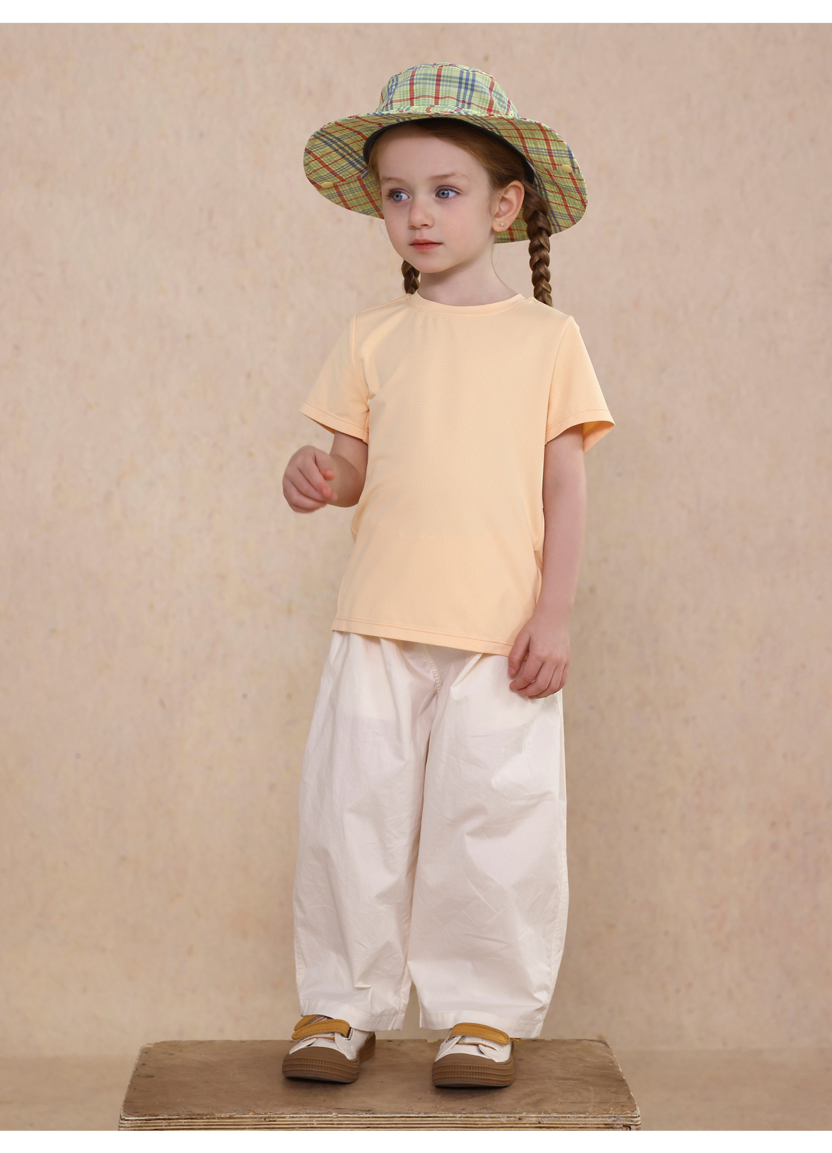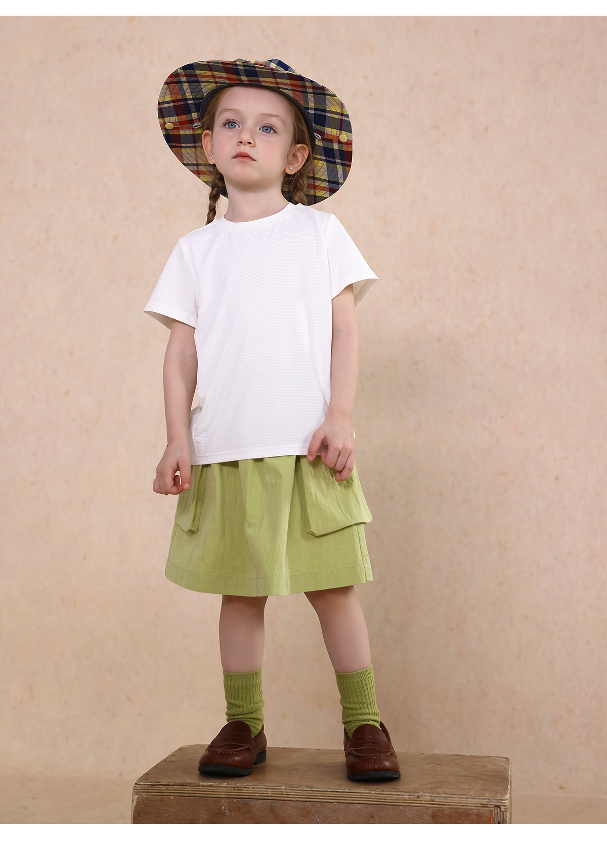 通気性と軽さを兼ね備えた、女の子向けの夏用サンスクリーンTシャツです。UPF50+の紫外線カット効果で、外遊びやお出かけ時のUV対策にしっかり対応。速乾性のあるメッシュ風素材は汗ばむ季節でも快適な着心地を保ち、さらりとした肌触りが特徴です。デザインは海外テイストを取り入れた洗練された印象で、シンプルながらコーディネートのアクセントにもなる一枚です。