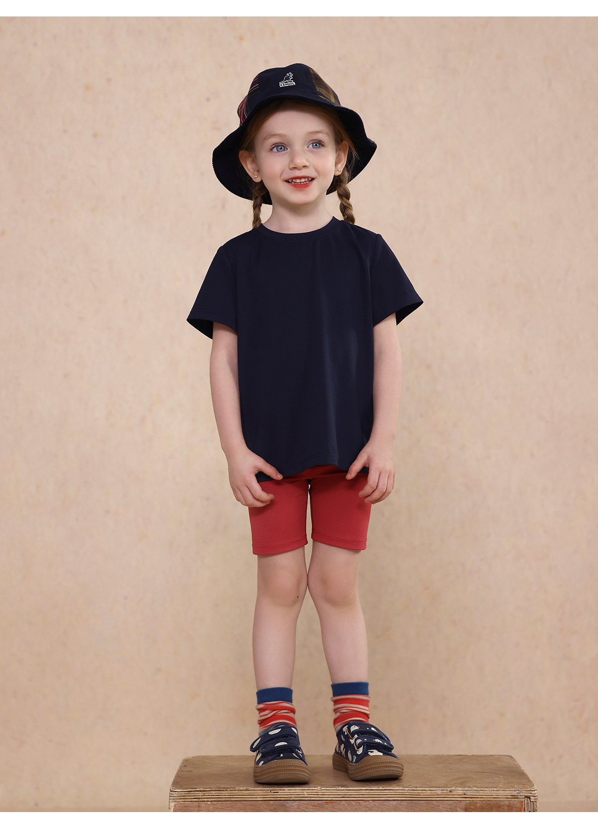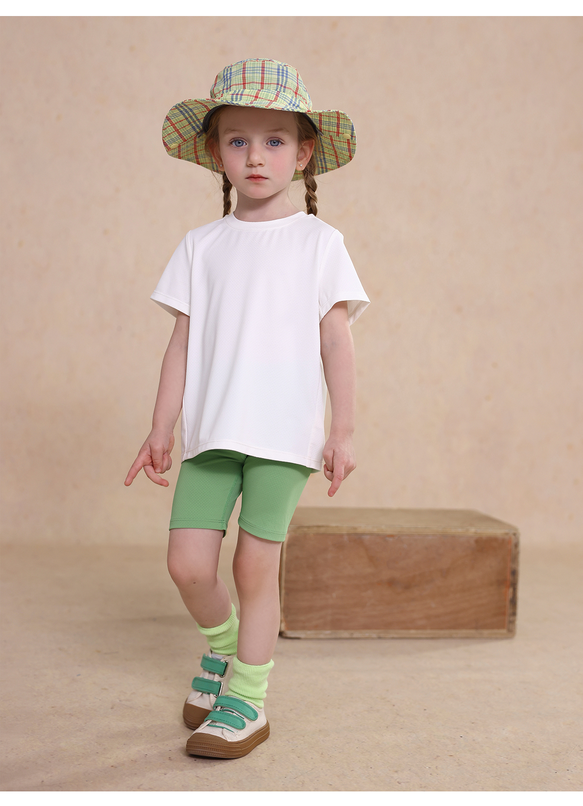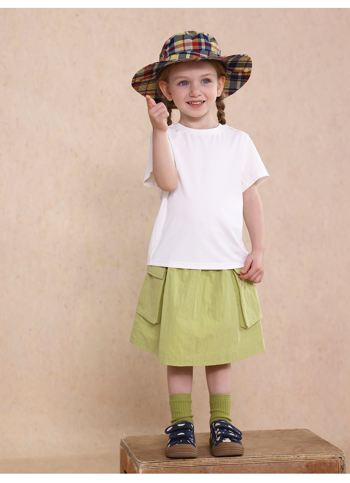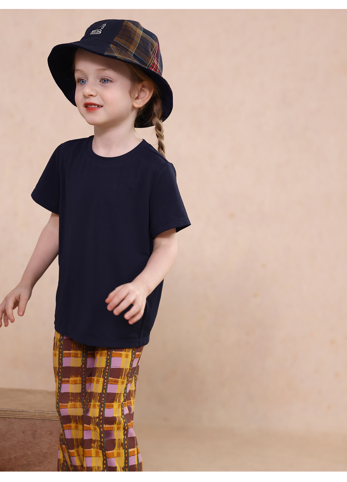 通気性と軽さを兼ね備えた、女の子向けの夏用サンスクリーンTシャツです。UPF50+の紫外線カット効果で、外遊びやお出かけ時のUV対策にしっかり対応。速乾性のあるメッシュ風素材は汗ばむ季節でも快適な着心地を保ち、さらりとした肌触りが特徴です。デザインは海外テイストを取り入れた洗練された印象で、シンプルながらコーディネートのアクセントにもなる一枚です。