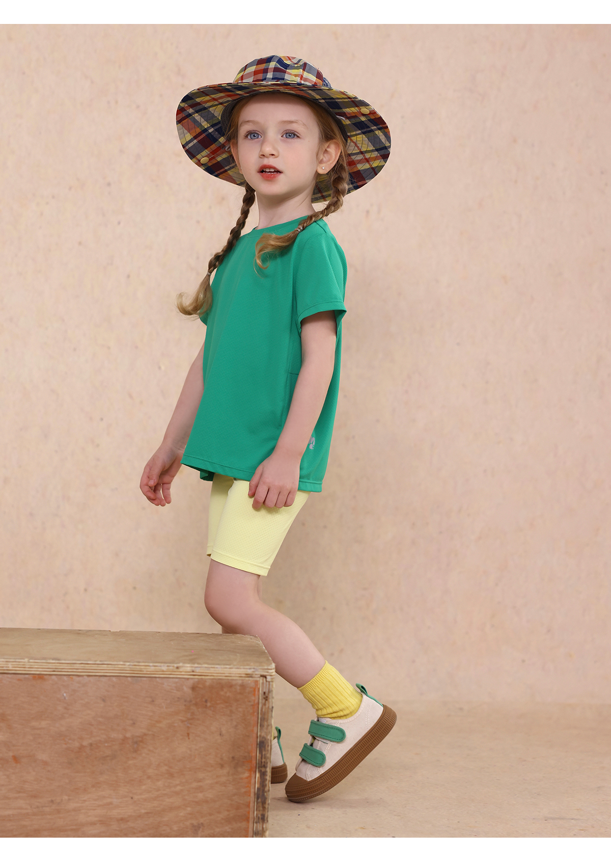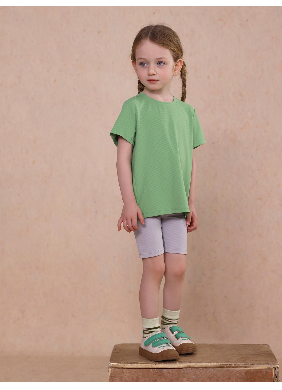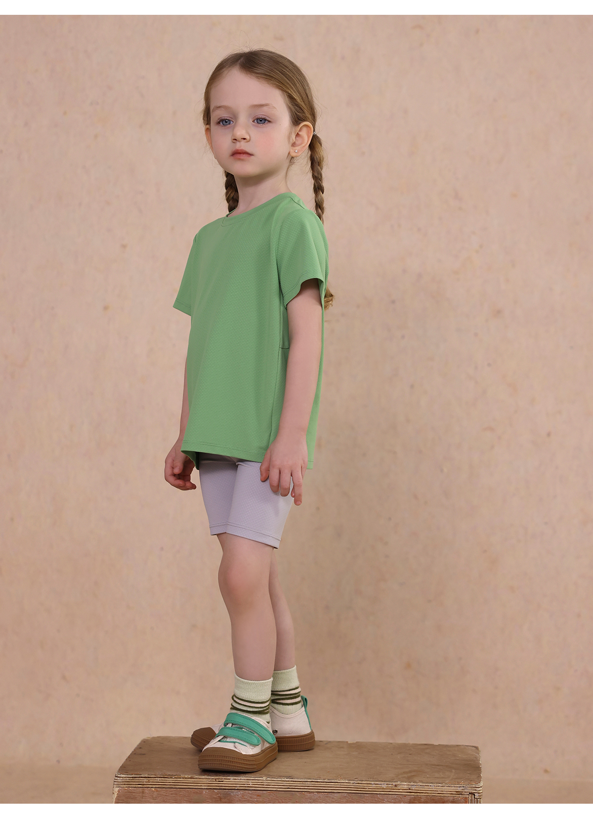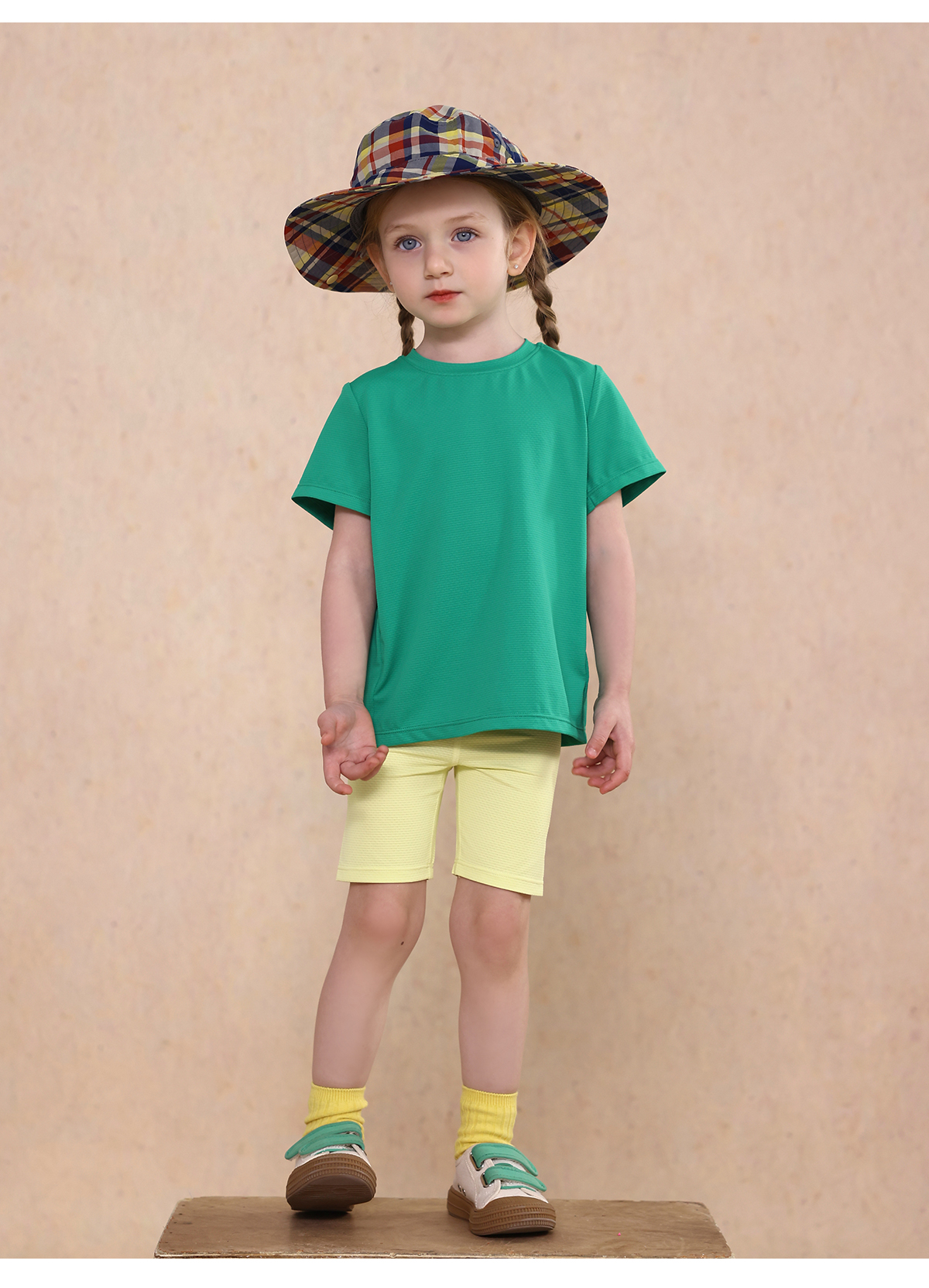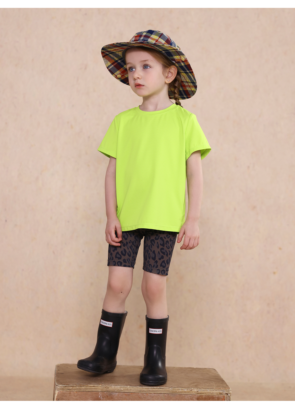 通気性と軽さを兼ね備えた、女の子向けの夏用サンスクリーンTシャツです。UPF50+の紫外線カット効果で、外遊びやお出かけ時のUV対策にしっかり対応。速乾性のあるメッシュ風素材は汗ばむ季節でも快適な着心地を保ち、さらりとした肌触りが特徴です。デザインは海外テイストを取り入れた洗練された印象で、シンプルながらコーディネートのアクセントにもなる一枚です。