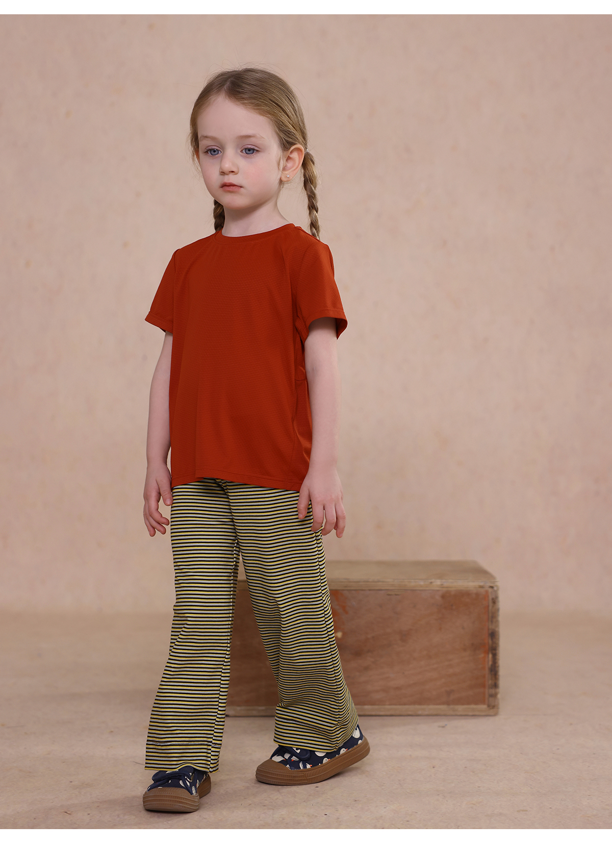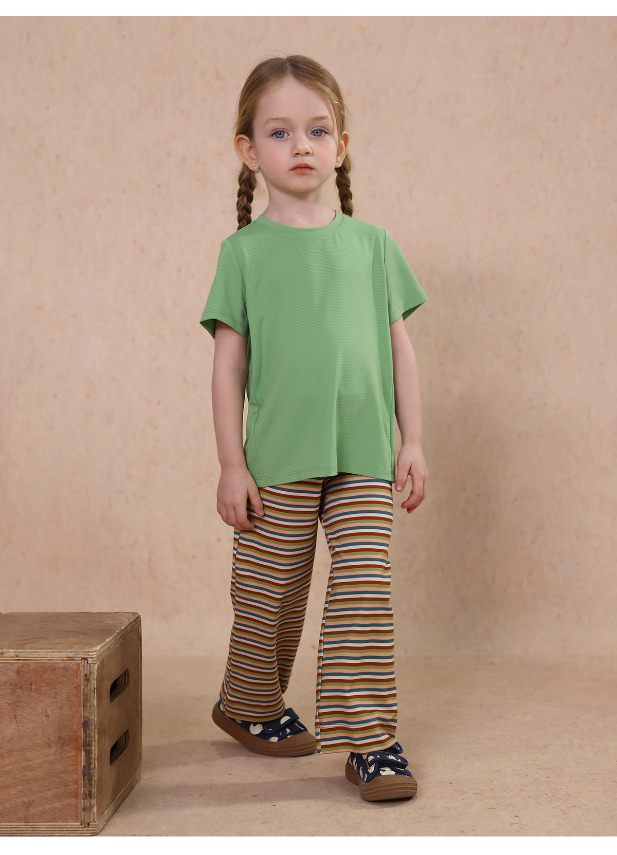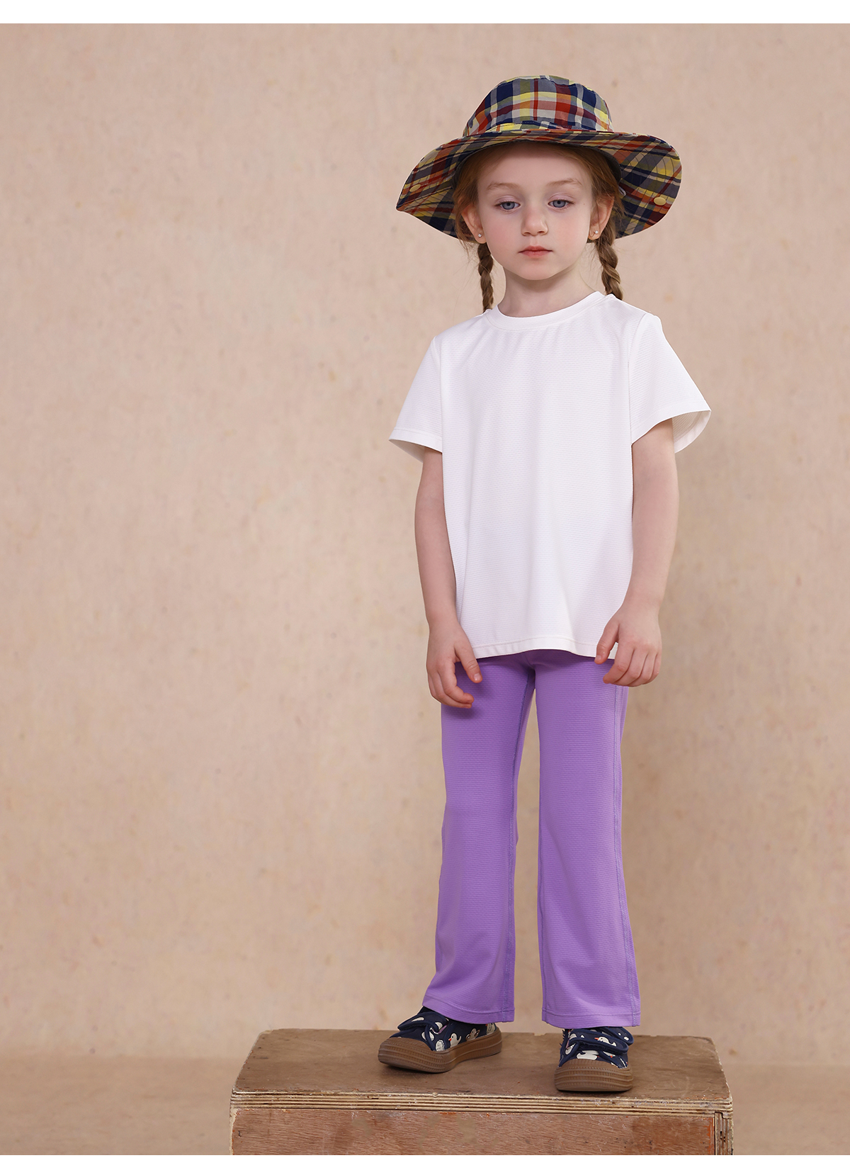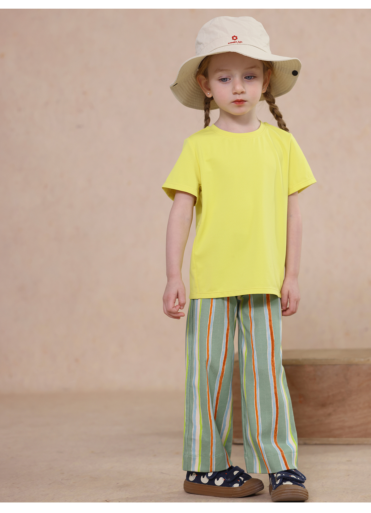 通気性と軽さを兼ね備えた、女の子向けの夏用サンスクリーンTシャツです。UPF50+の紫外線カット効果で、外遊びやお出かけ時のUV対策にしっかり対応。速乾性のあるメッシュ風素材は汗ばむ季節でも快適な着心地を保ち、さらりとした肌触りが特徴です。デザインは海外テイストを取り入れた洗練された印象で、シンプルながらコーディネートのアクセントにもなる一枚です。