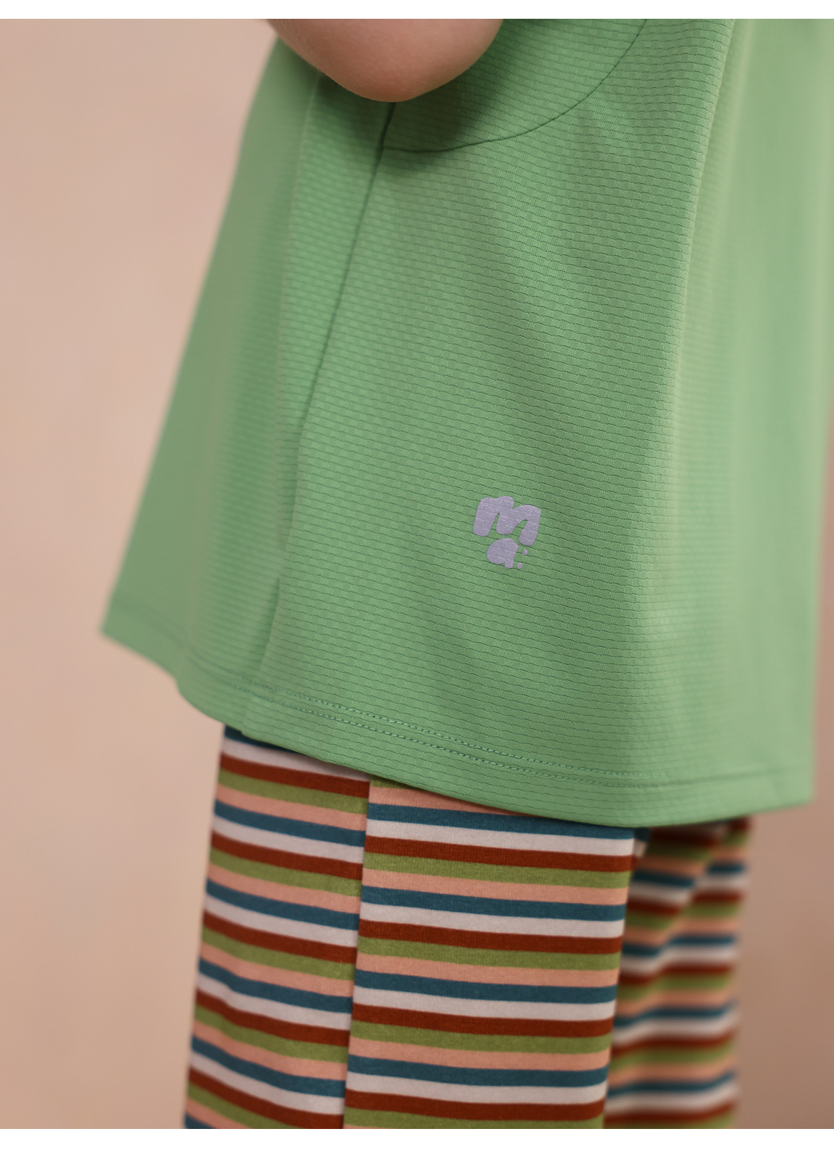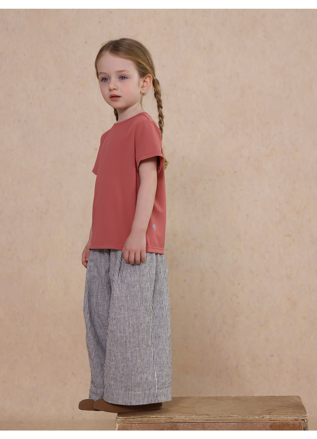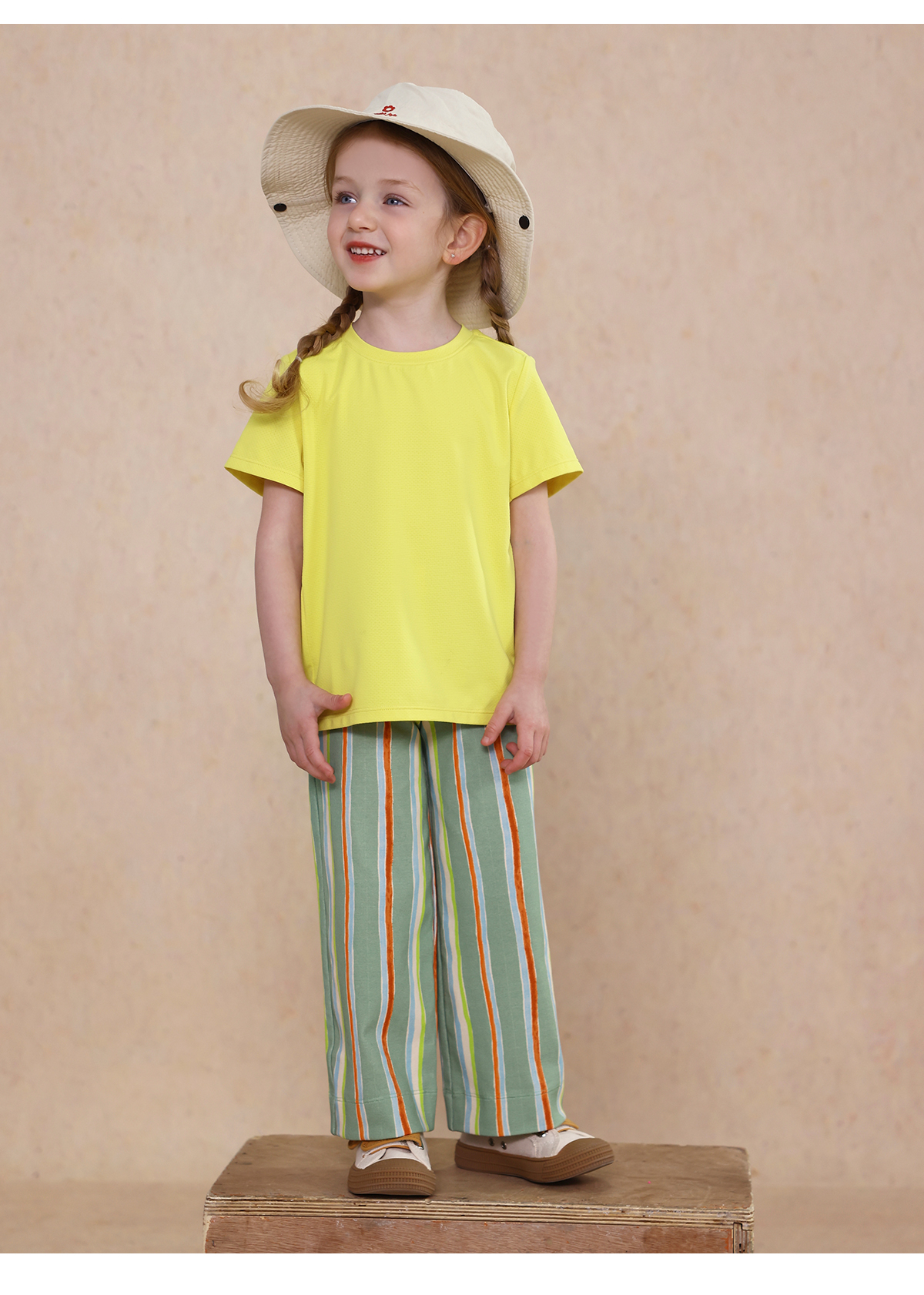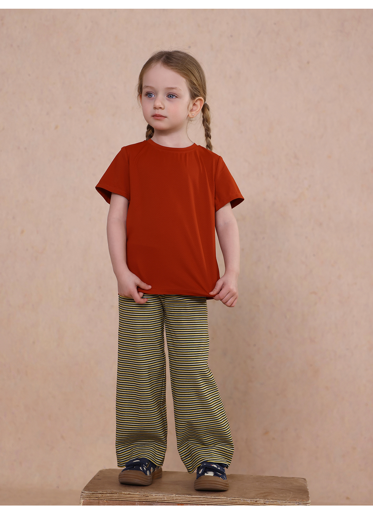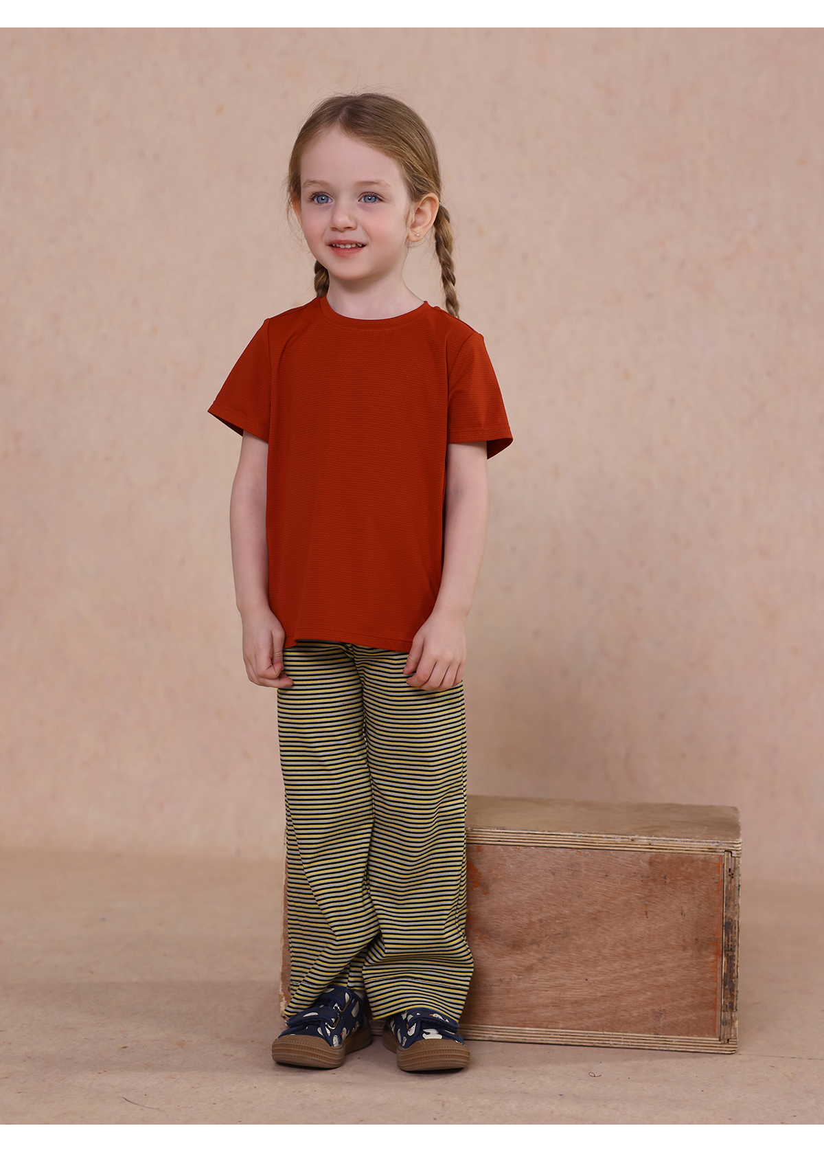 通気性と軽さを兼ね備えた、女の子向けの夏用サンスクリーンTシャツです。UPF50+の紫外線カット効果で、外遊びやお出かけ時のUV対策にしっかり対応。速乾性のあるメッシュ風素材は汗ばむ季節でも快適な着心地を保ち、さらりとした肌触りが特徴です。デザインは海外テイストを取り入れた洗練された印象で、シンプルながらコーディネートのアクセントにもなる一枚です。