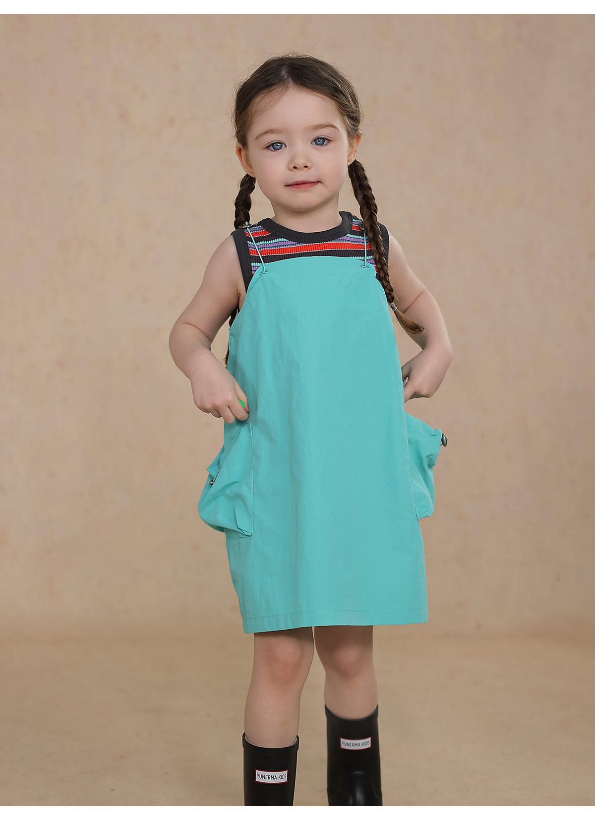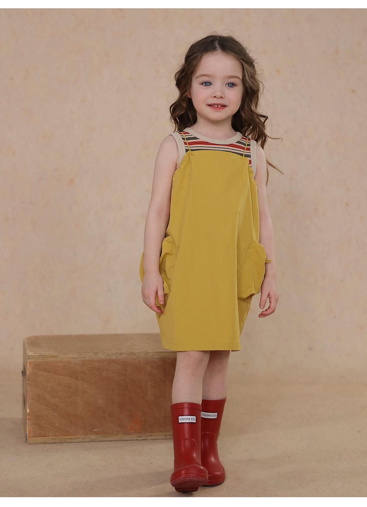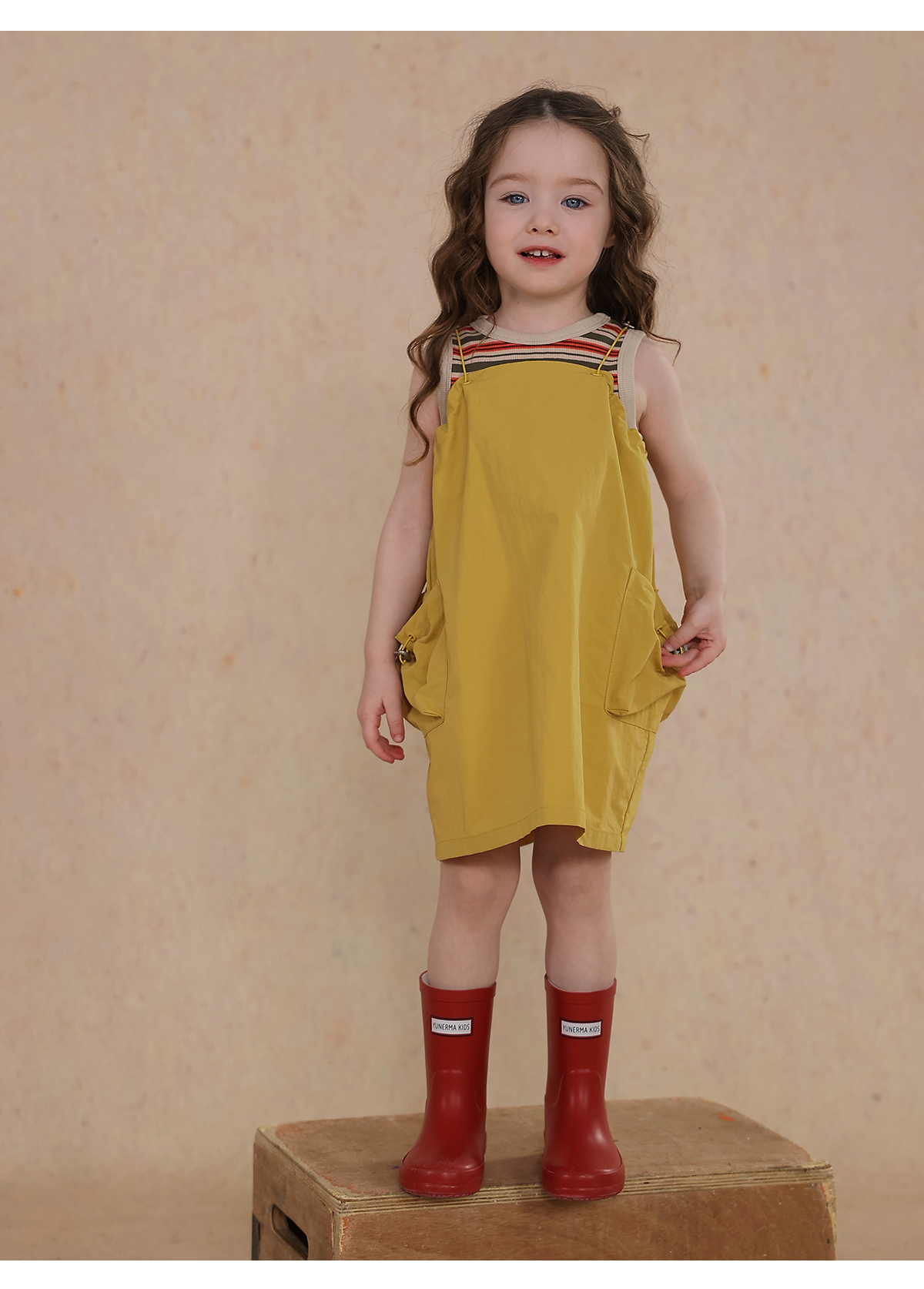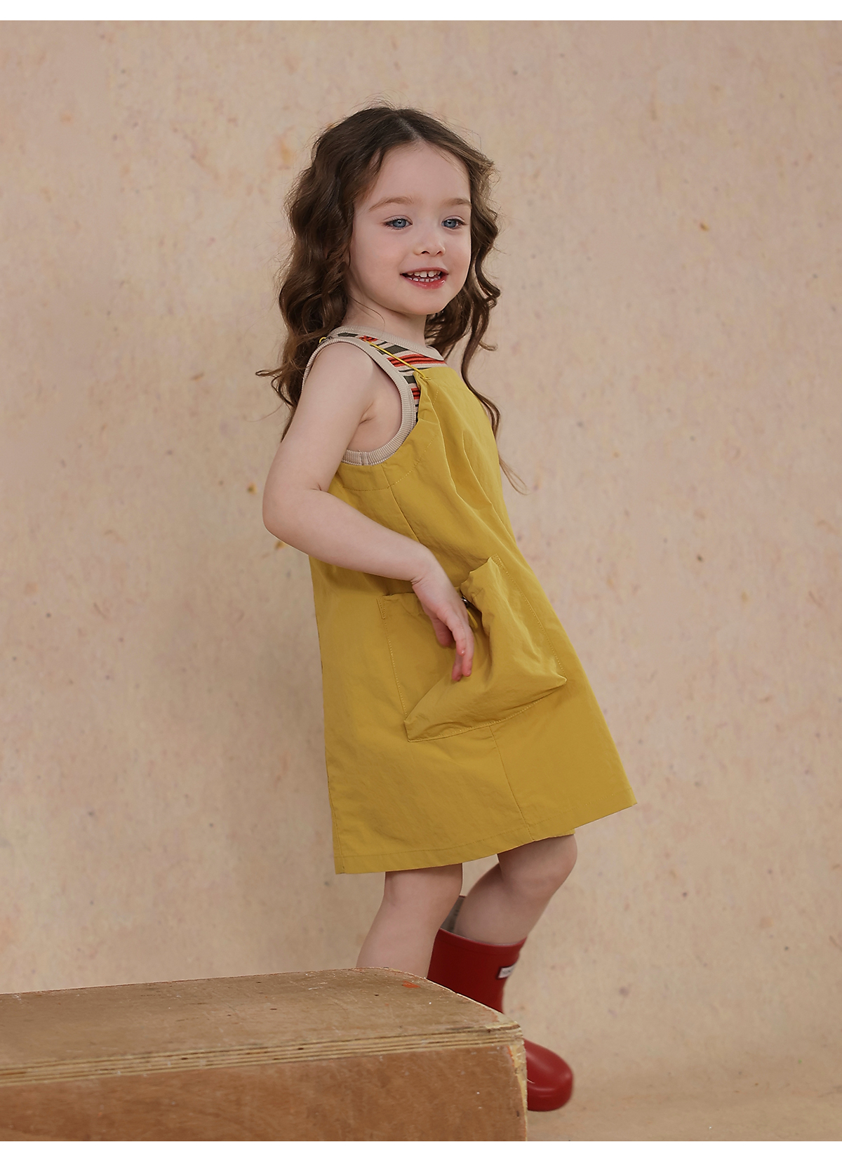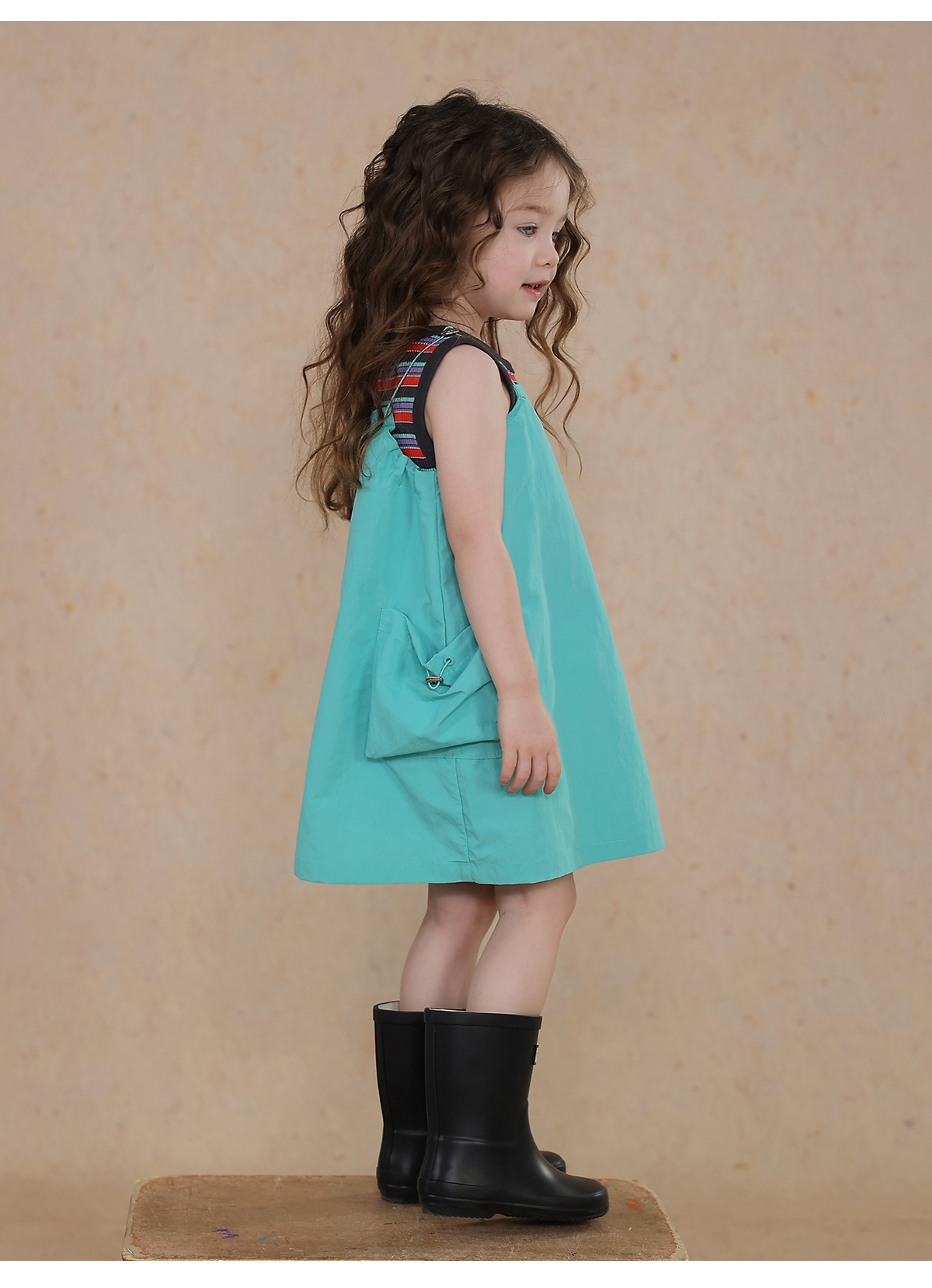 肩紐とポケットのドローストリングがアクセントになった、女の子用のサマーワンピースです。軽やかな素材感で涼しく過ごせる仕様となっており、休日のお出かけやちょっとしたお呼ばれにも使いやすい一枚。ギャザーが生み出す自然なふんわり感が魅力で、ベビーらしい可愛さを引き立てます。単品でもレイヤードでもコーディネートがしやすく、着回しの幅が広がるアイテムです。