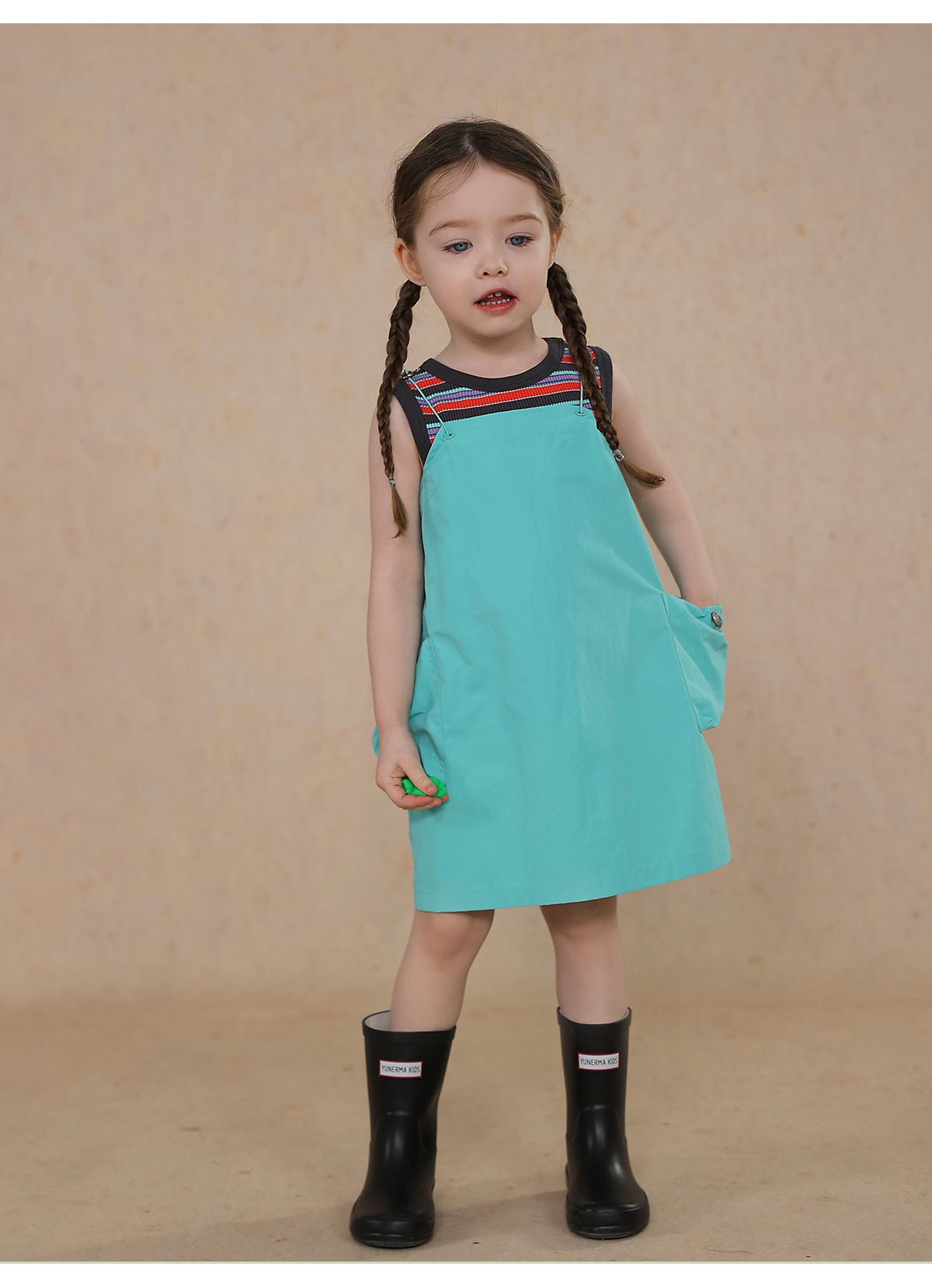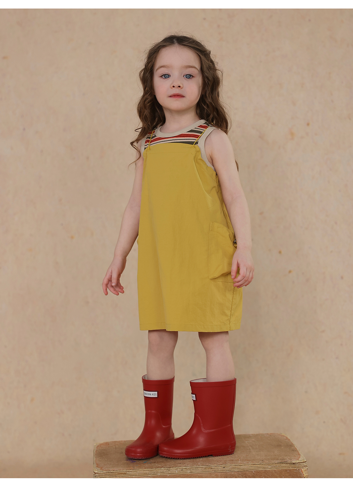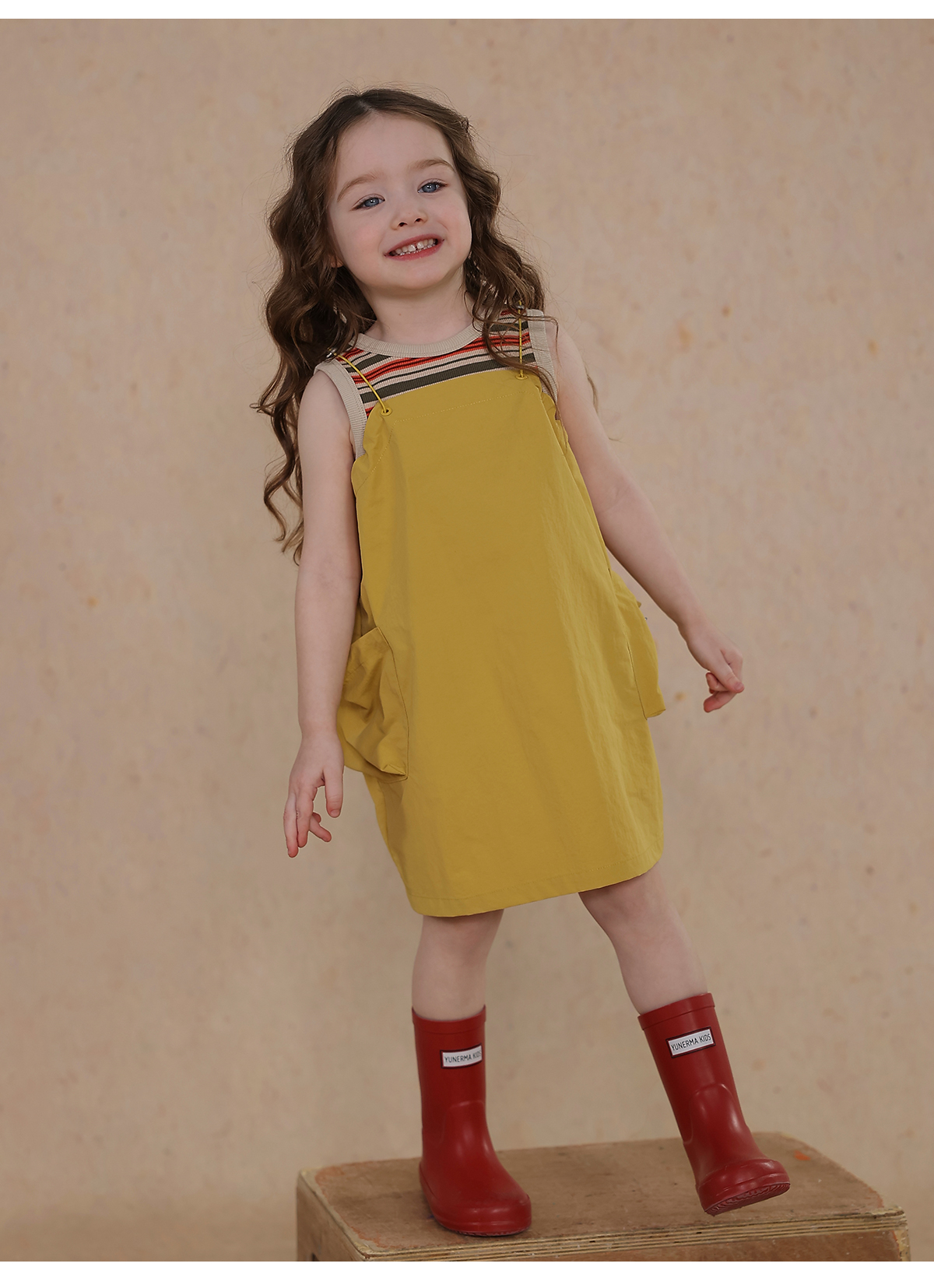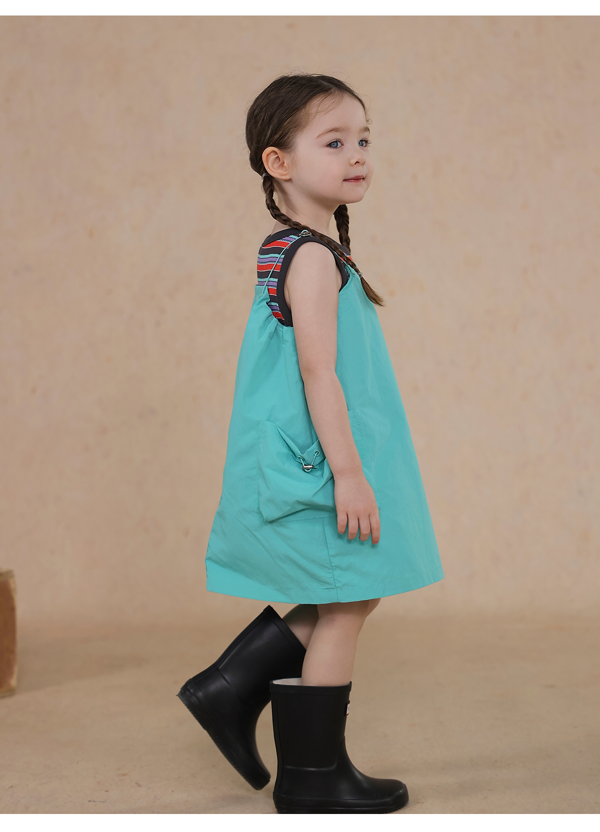 肩紐とポケットのドローストリングがアクセントになった、女の子用のサマーワンピースです。軽やかな素材感で涼しく過ごせる仕様となっており、休日のお出かけやちょっとしたお呼ばれにも使いやすい一枚。ギャザーが生み出す自然なふんわり感が魅力で、ベビーらしい可愛さを引き立てます。単品でもレイヤードでもコーディネートがしやすく、着回しの幅が広がるアイテムです。