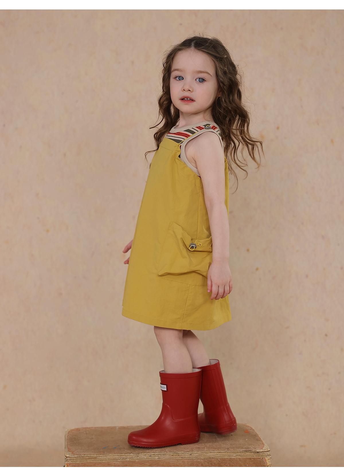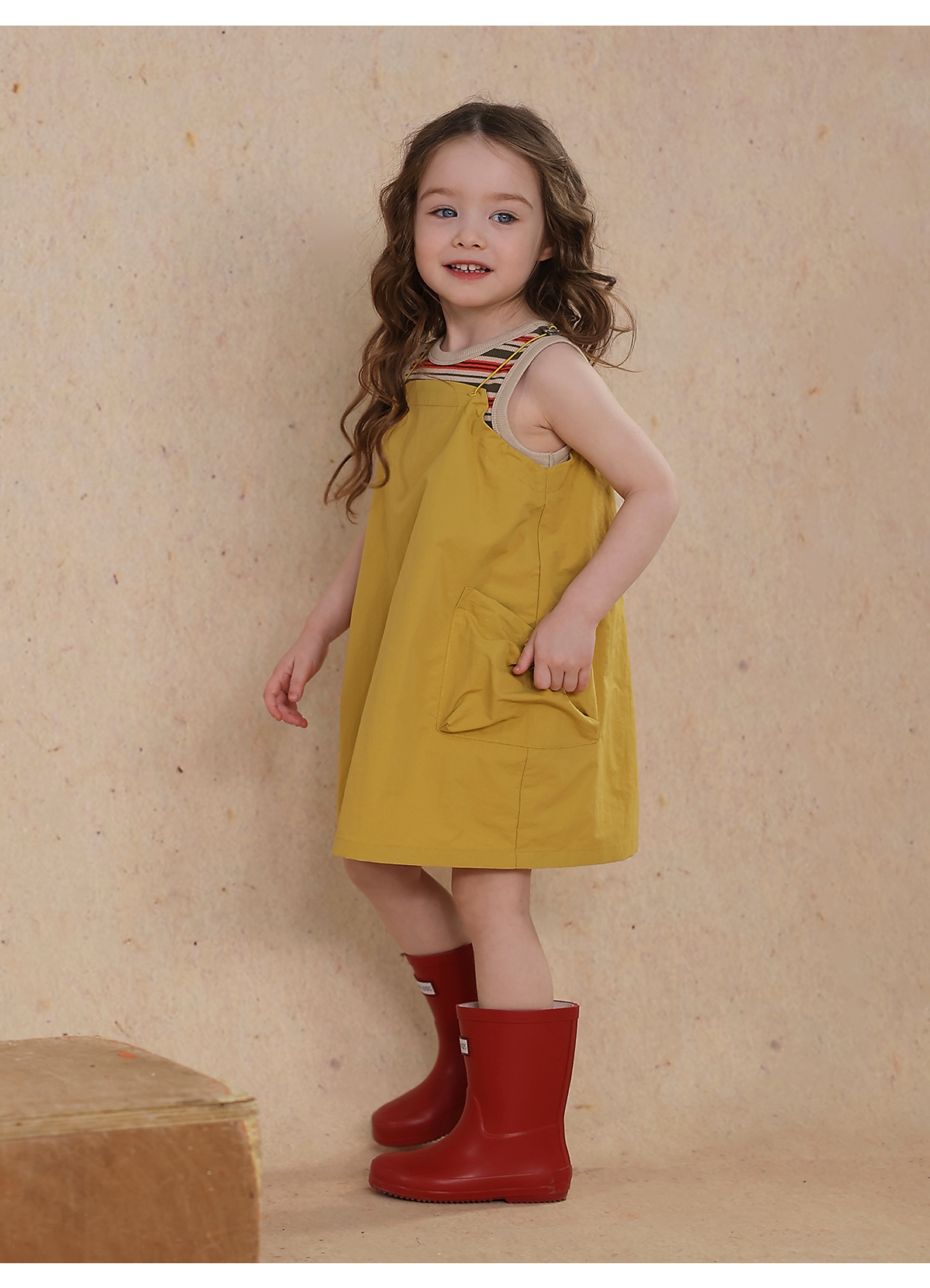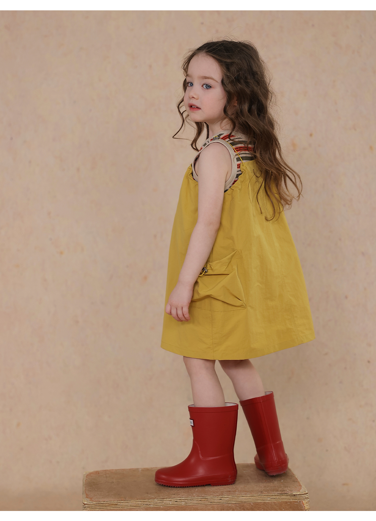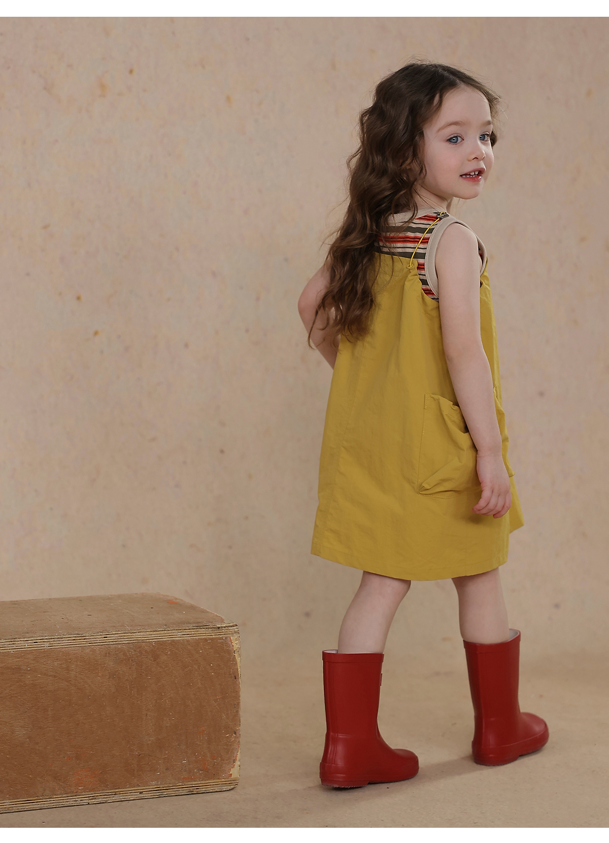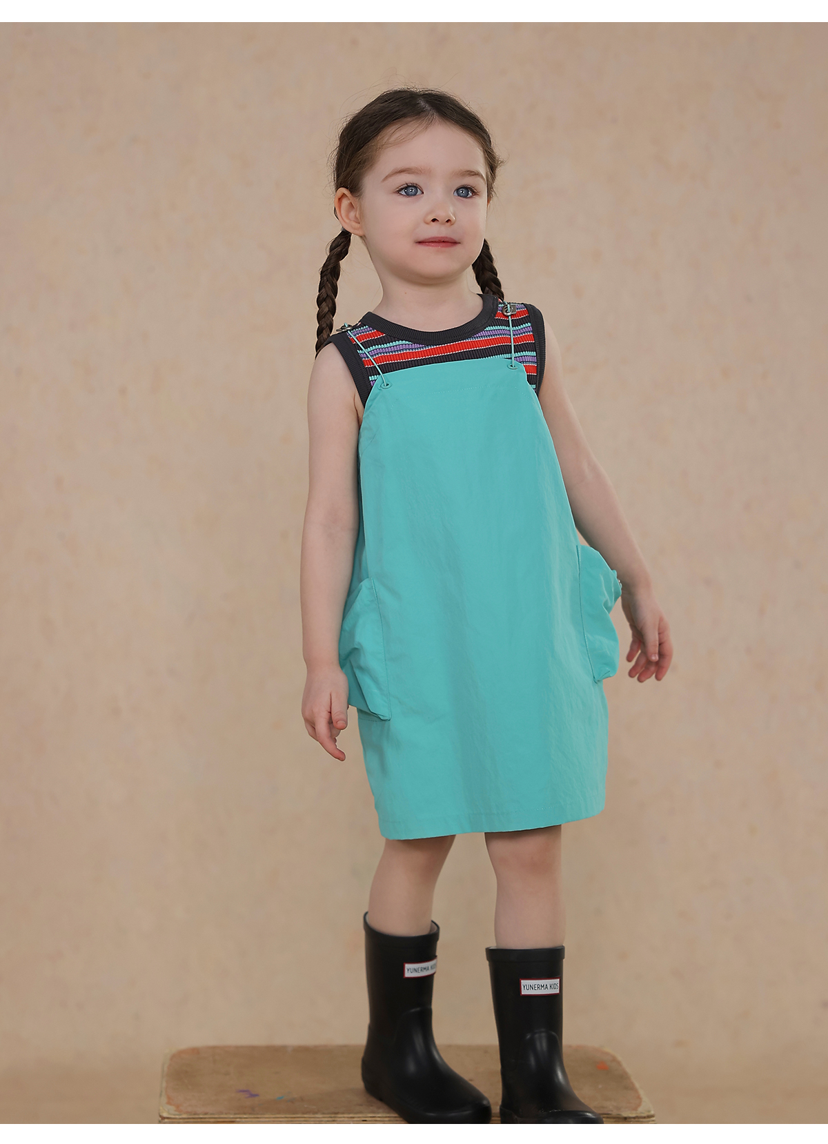肩紐とポケットのドローストリングがアクセントになった、女の子用のサマーワンピースです。軽やかな素材感で涼しく過ごせる仕様となっており、休日のお出かけやちょっとしたお呼ばれにも使いやすい一枚。ギャザーが生み出す自然なふんわり感が魅力で、ベビーらしい可愛さを引き立てます。単品でもレイヤードでもコーディネートがしやすく、着回しの幅が広がるアイテムです。