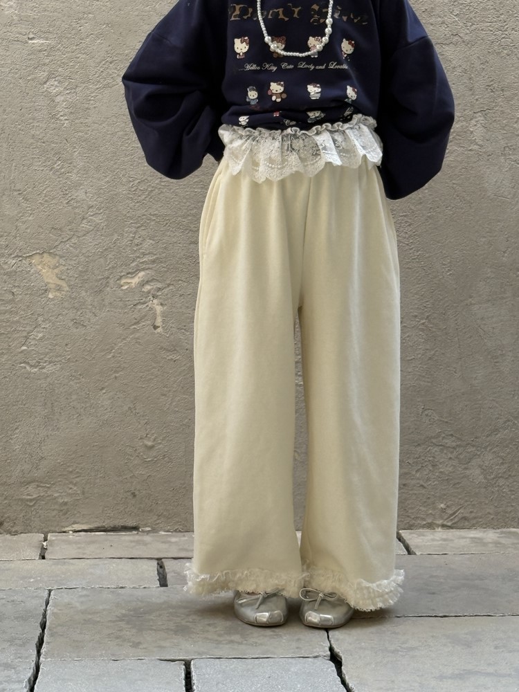 裾レースフリルワイドルーズパンツ【mh0009694】