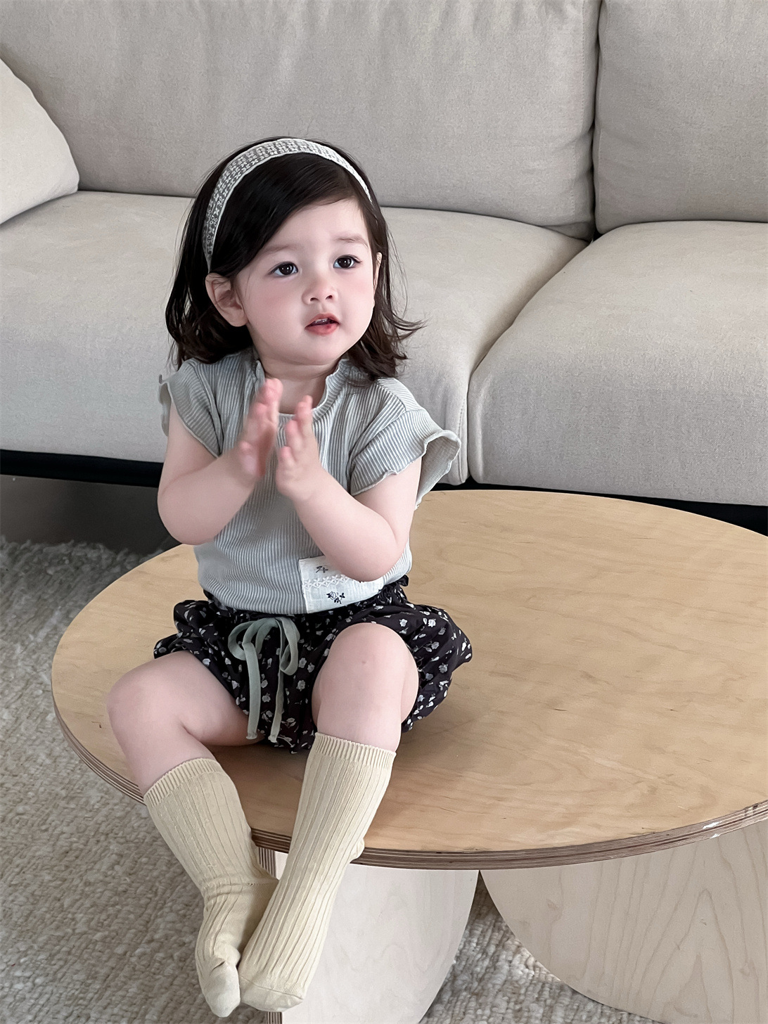 #キッズセットアップ #子供服 #半袖Tシャツ #ショートパンツ #パッチワーク #フラワープリント #女の子服
