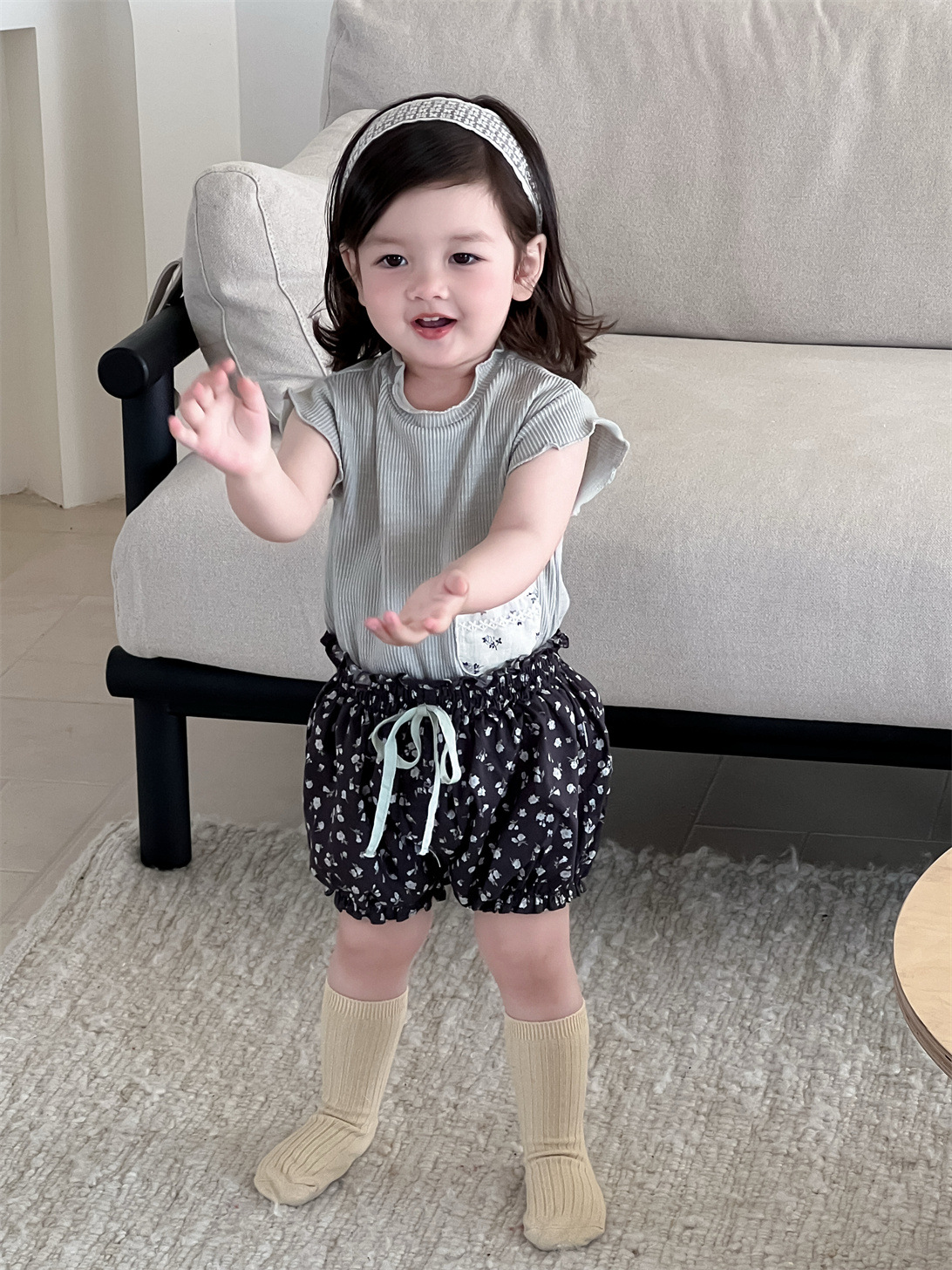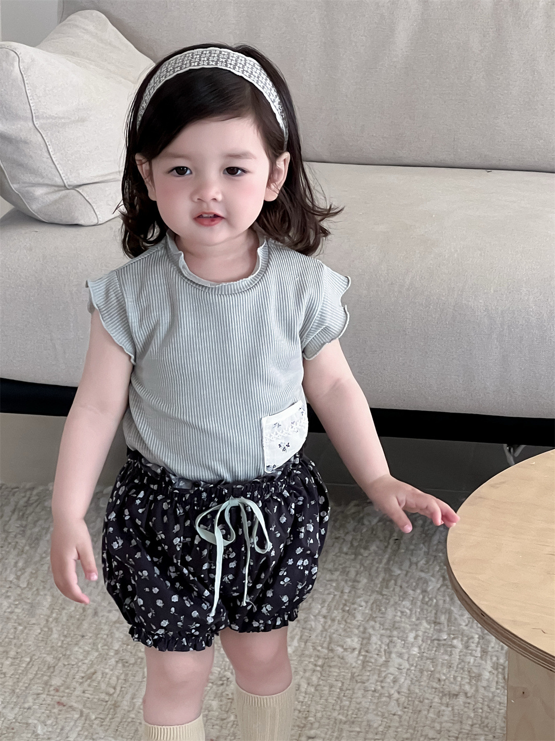 どちらも薄手の素材を使用しているため、暑い時期の着用に適しています。ゆったりとしたシルエットで、お子様の動きを妨げにくく、普段使いからお出かけまで幅広く活躍します。女の子向けのカジュアルなセットアップとして、夏の装いを可愛らしく彩るアイテムです。