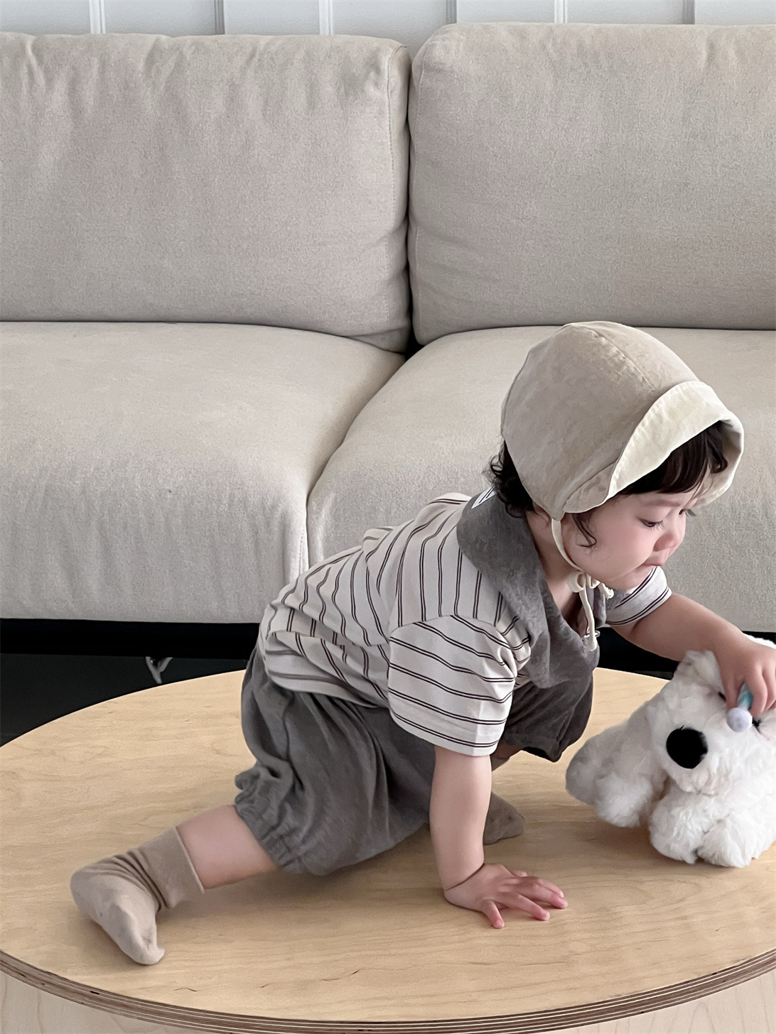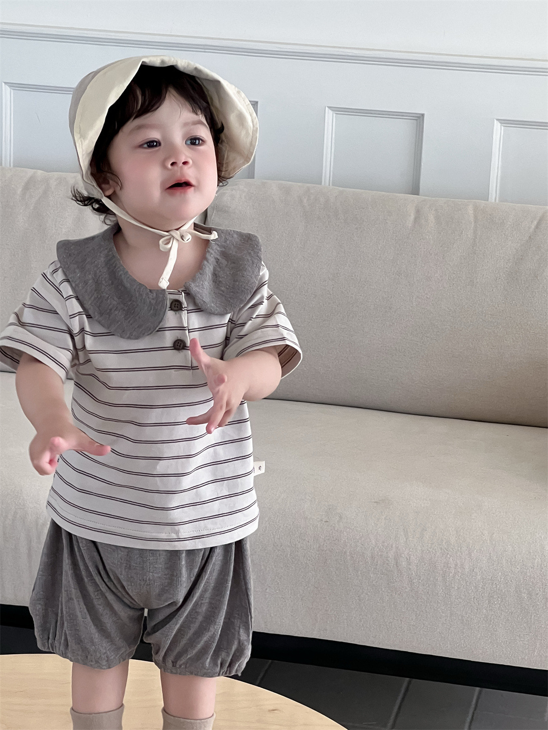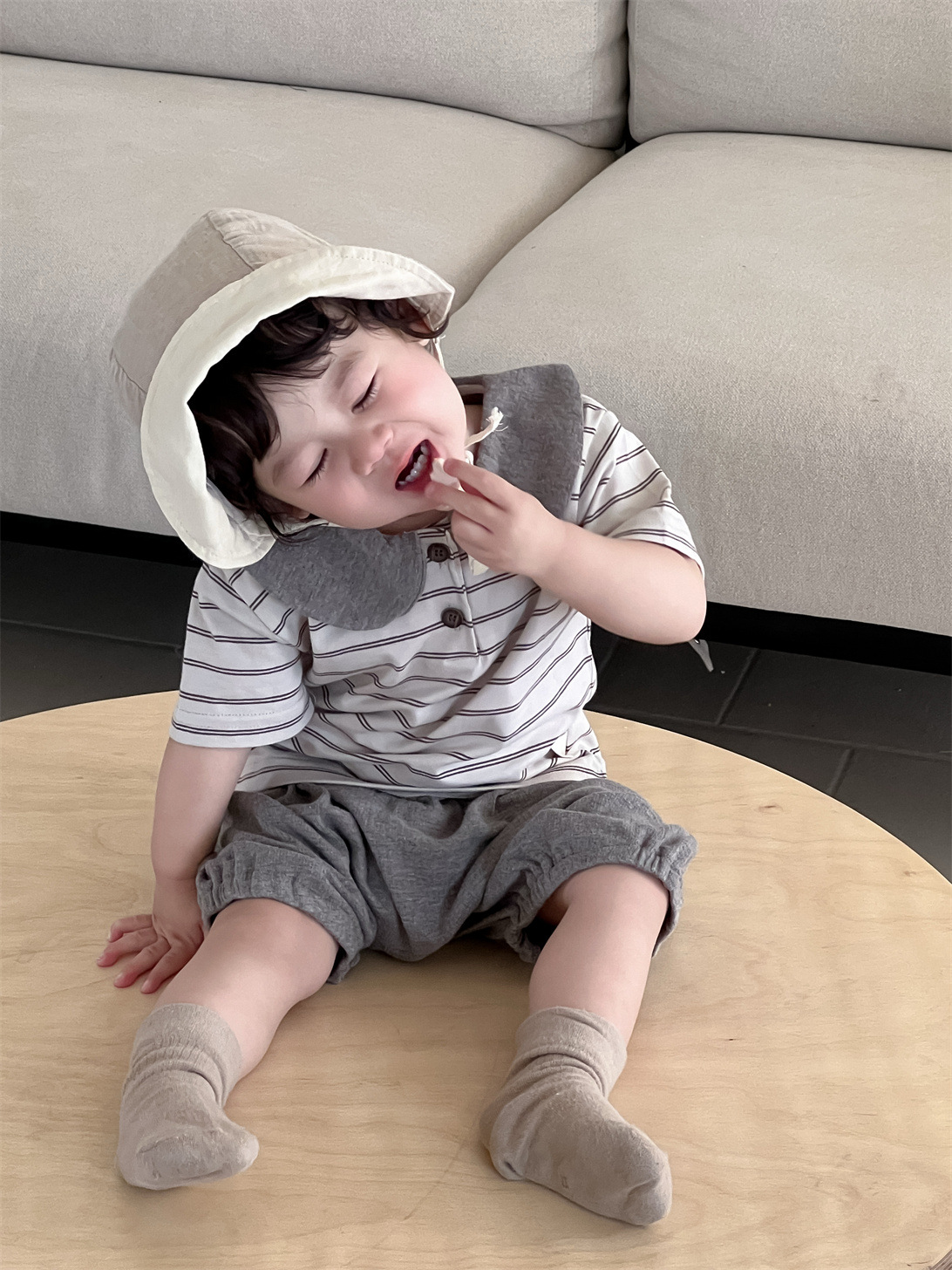 #キッズセットアップ #子供服 #ポロシャツ #ハーフパンツ #ボーダー柄 #丸襟 #男の子服