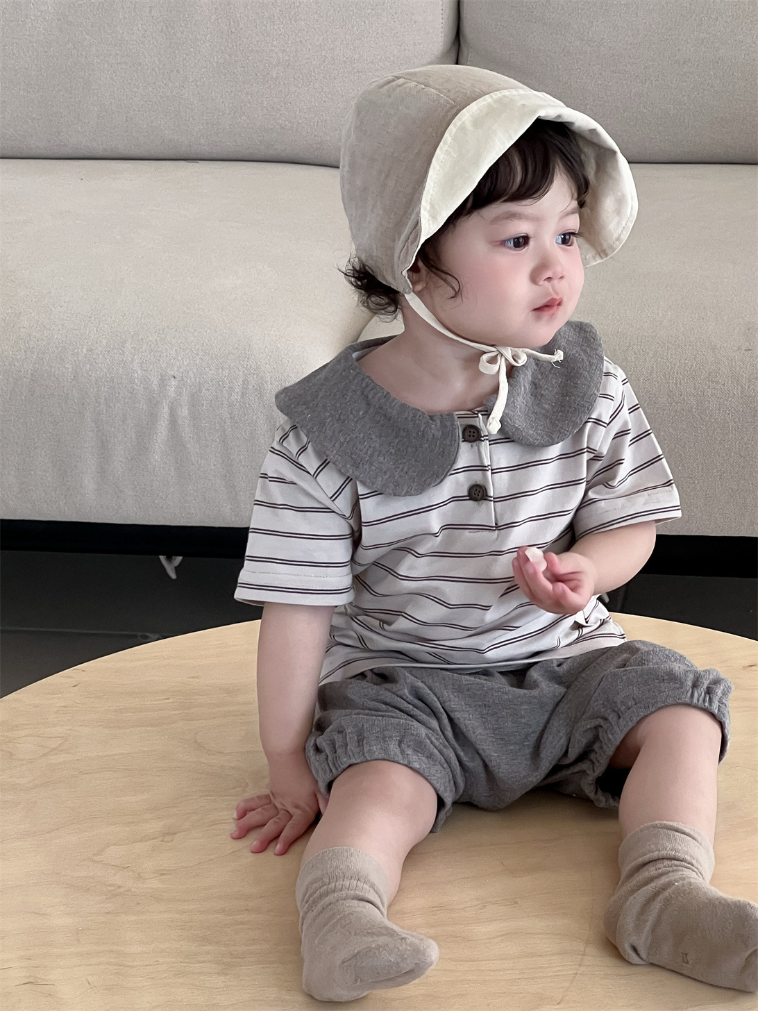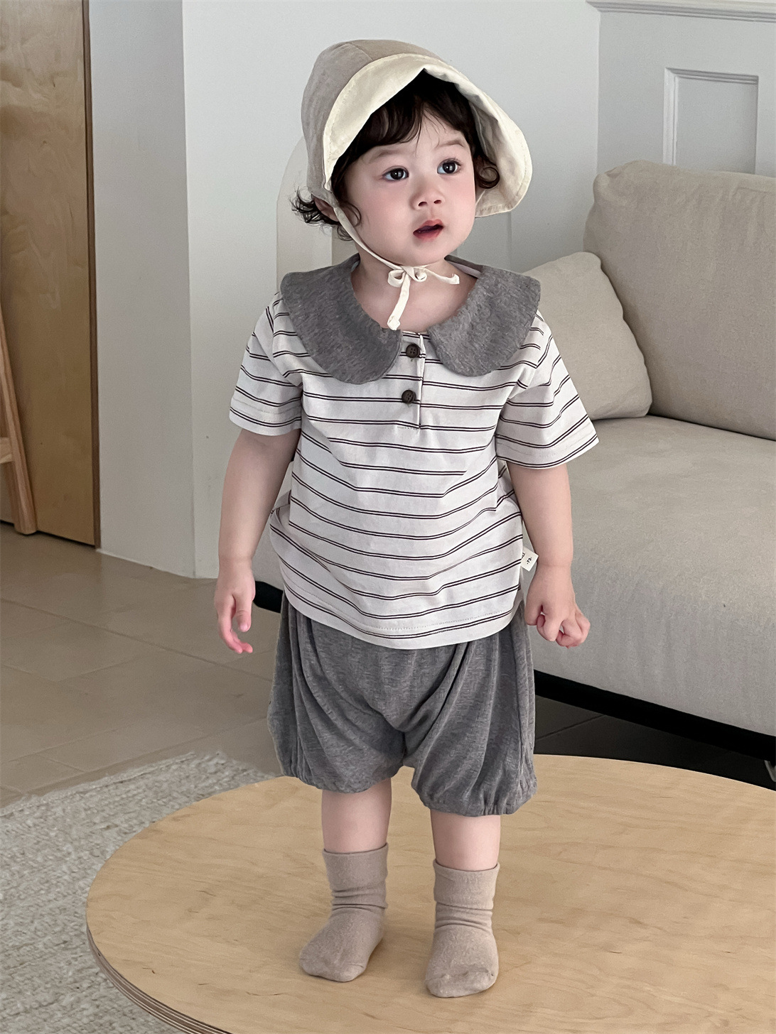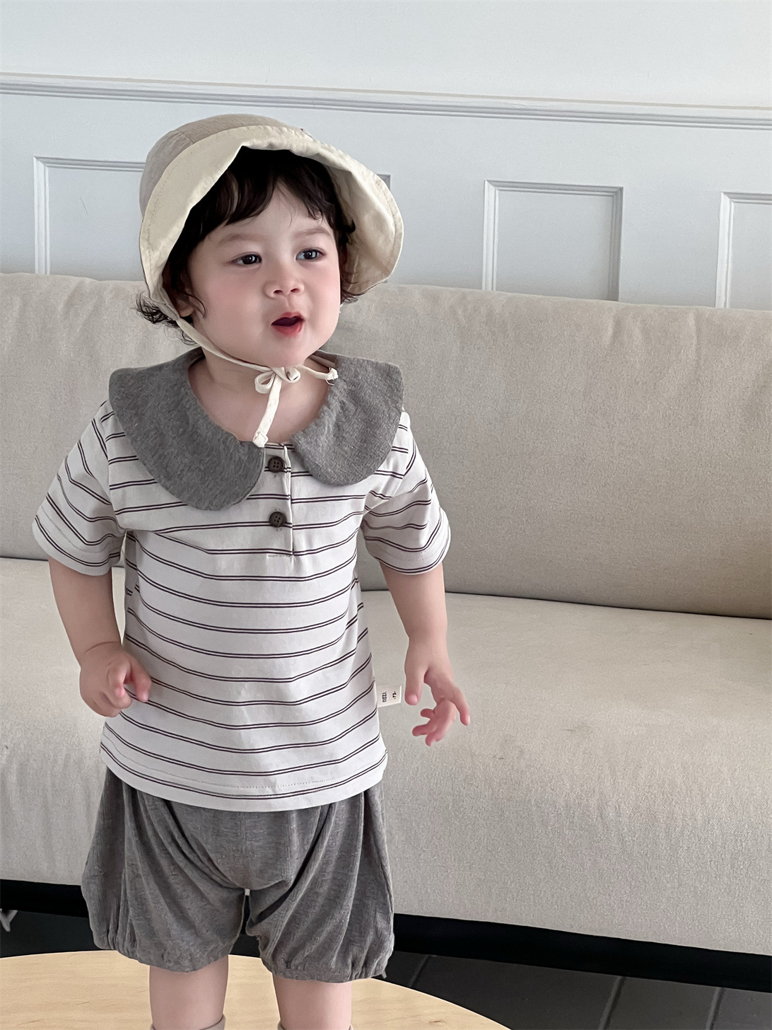 ボーダー丸襟ポロシャツ+ハーフパンツセットアップ 2点セット【mh0009898】