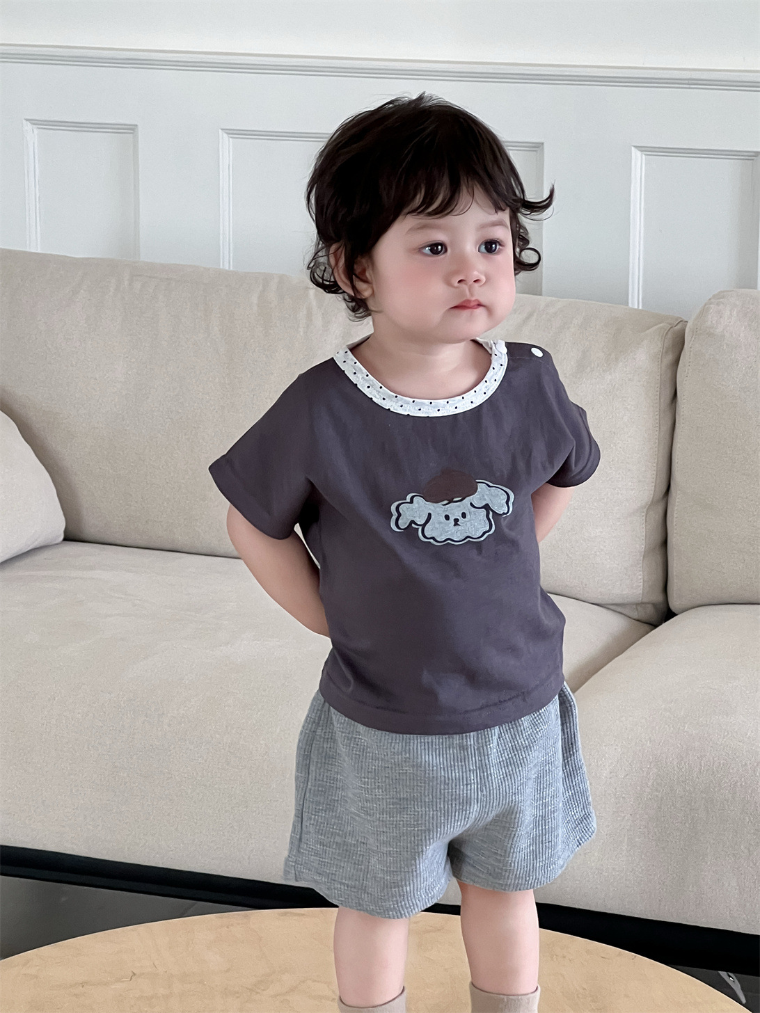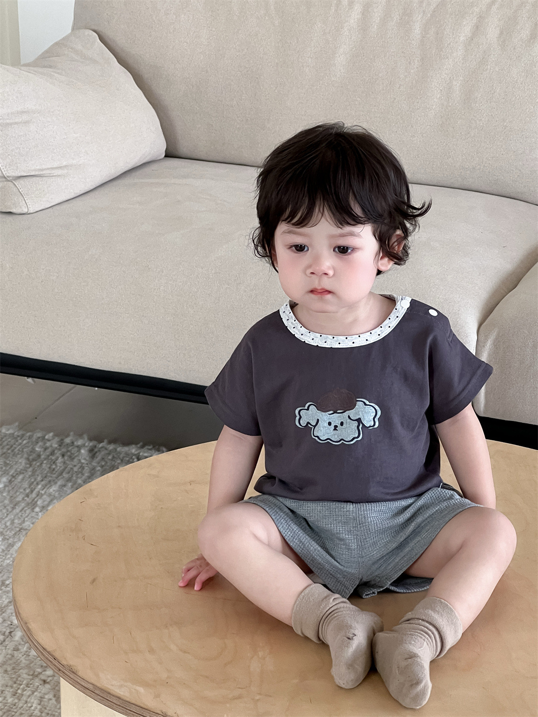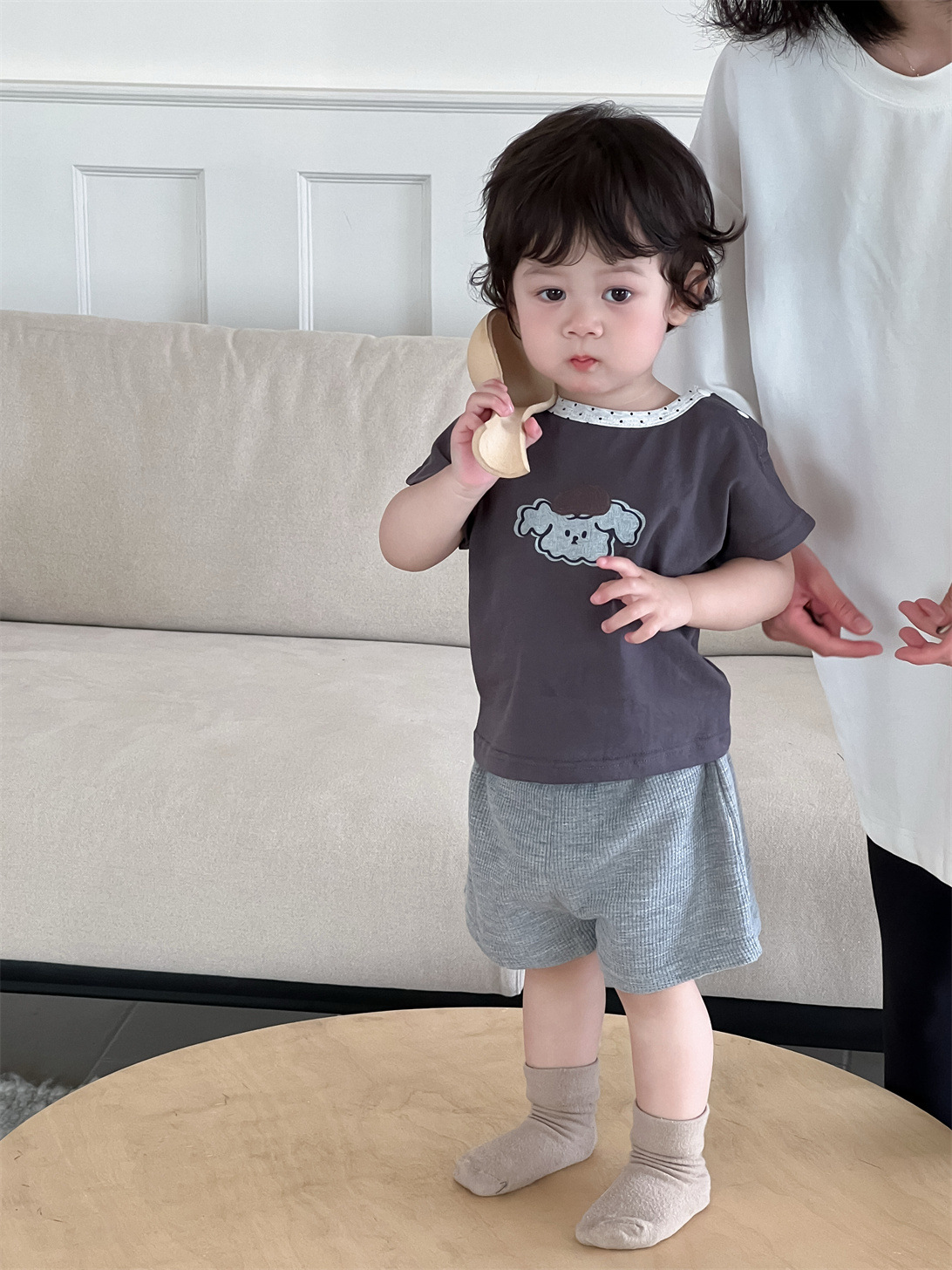 犬パピープリント半袖Tシャツ/ワッフルショートパンツ【mh0009901】