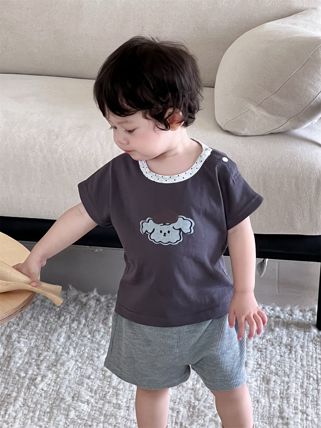 #キッズセットアップ #子供服 #犬プリント #半袖Tシャツ #ワッフル素材 #ショートパンツ #男の子服