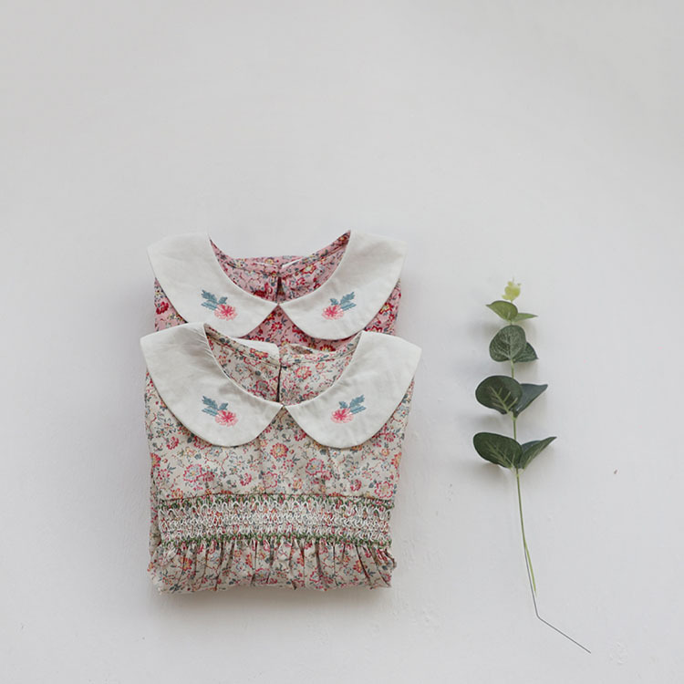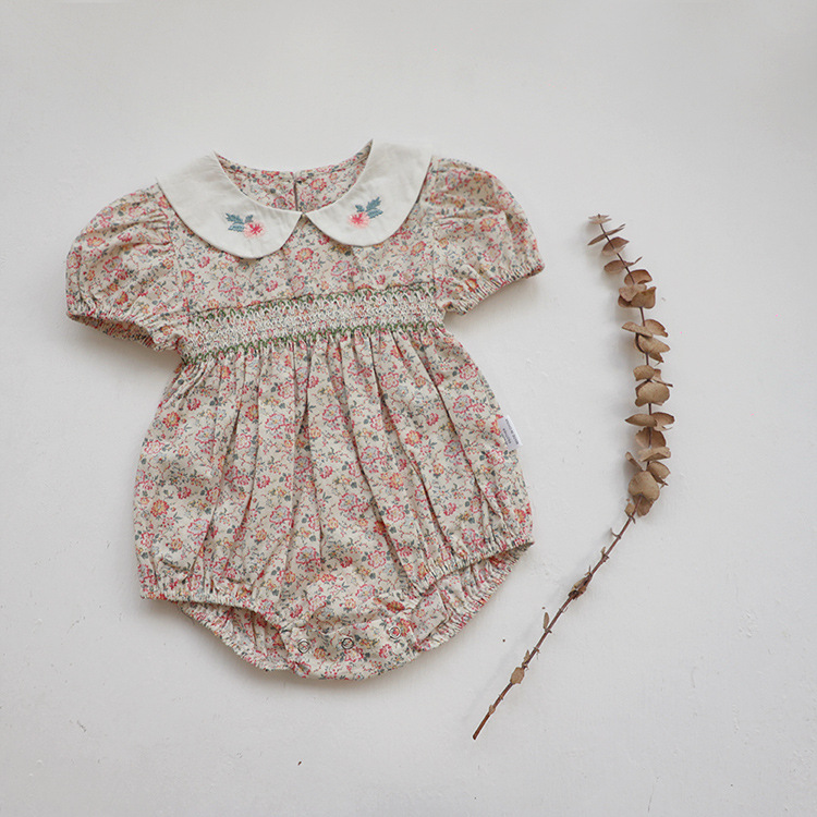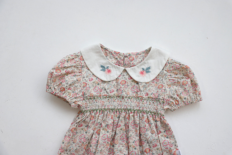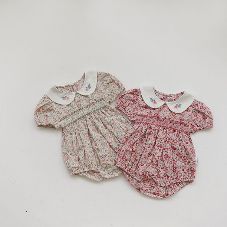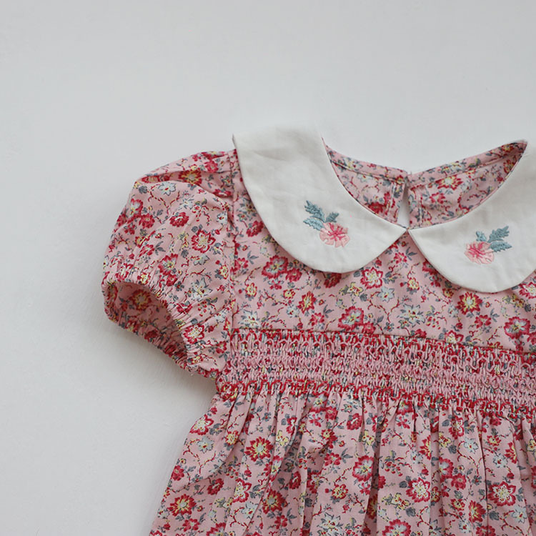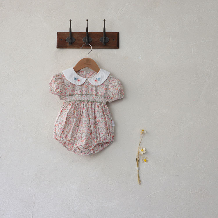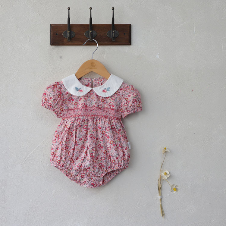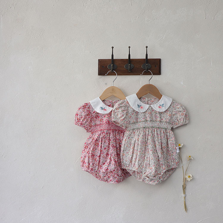 フラワー刺繍丸襟花柄プリント半袖ロンパース【mh0010003】