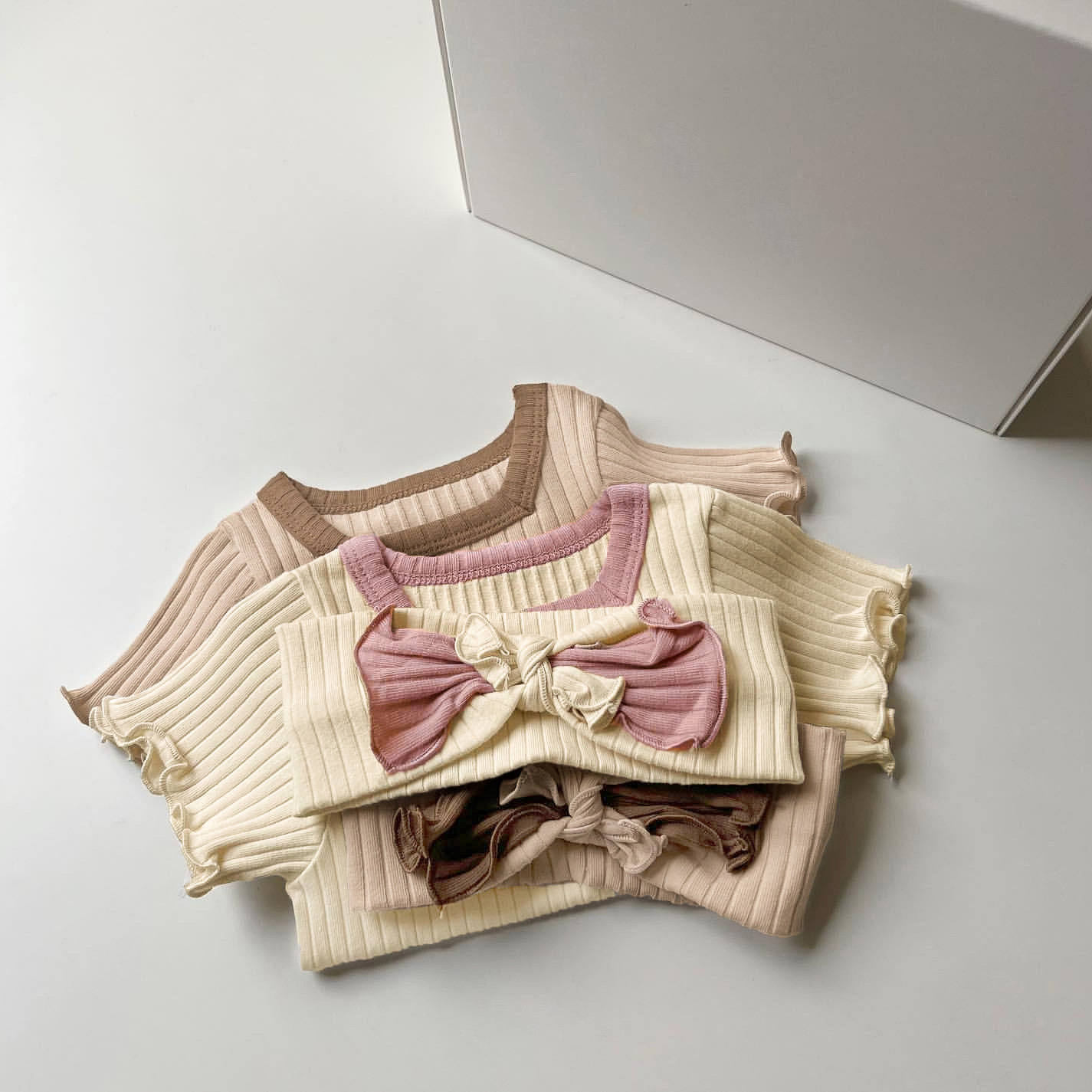 スクエアネック半袖Tシャツ+ブルマパンツ+リボンヘアバンドセットアップ 3点セット【mh0010007】