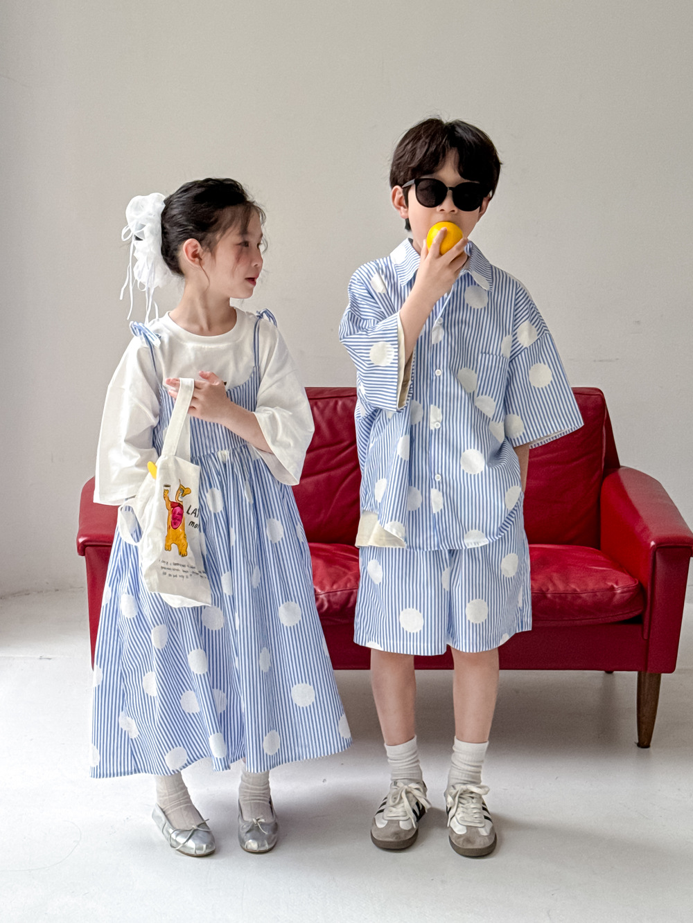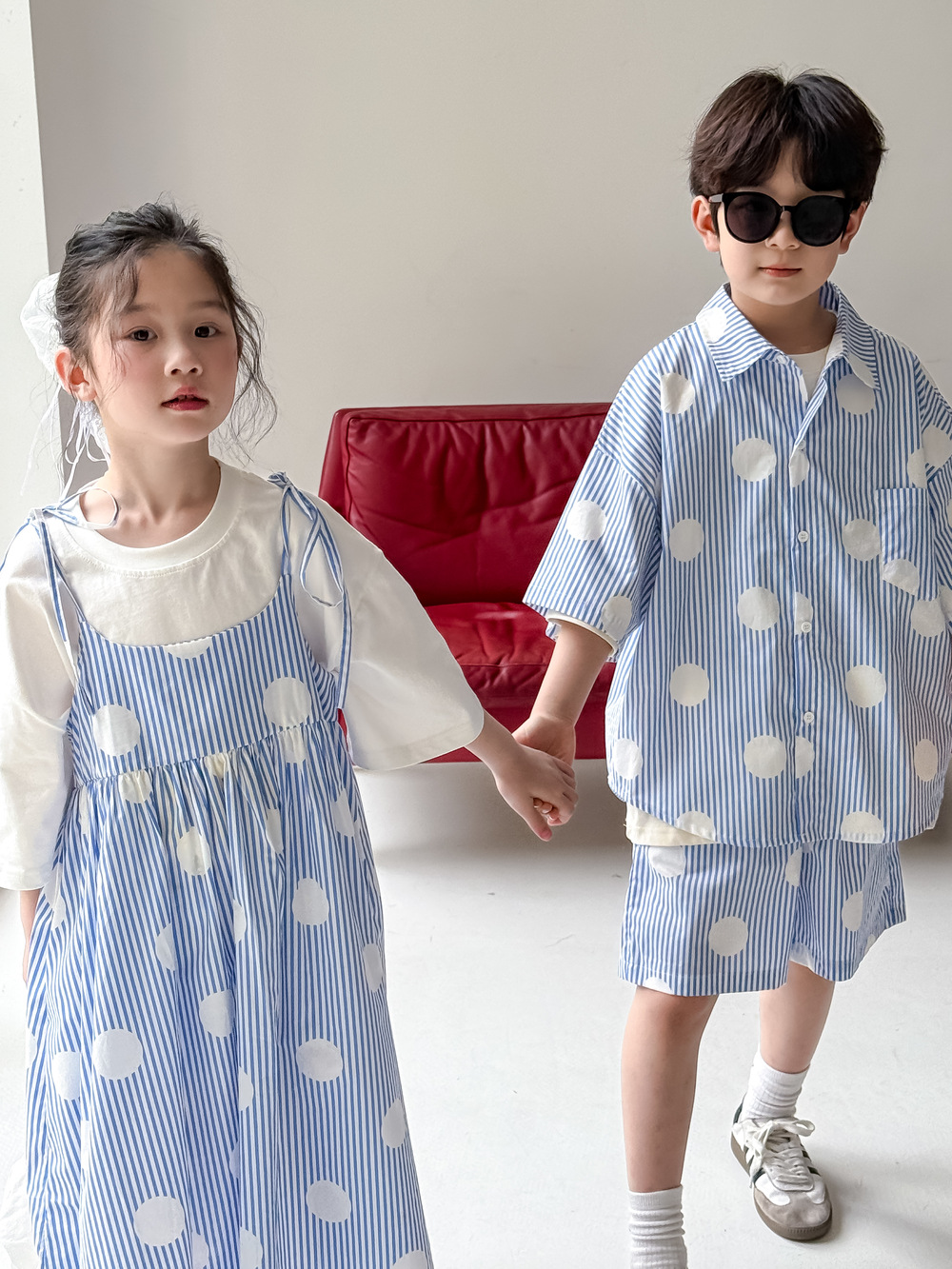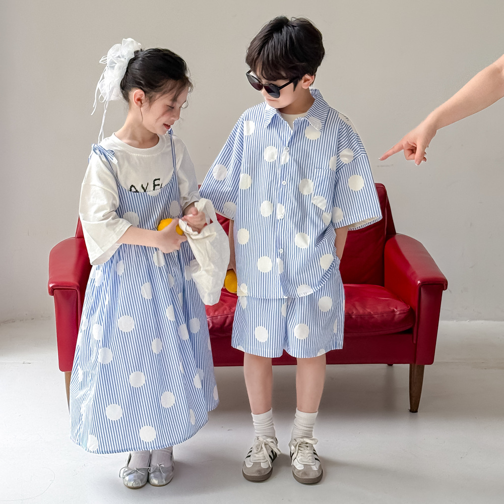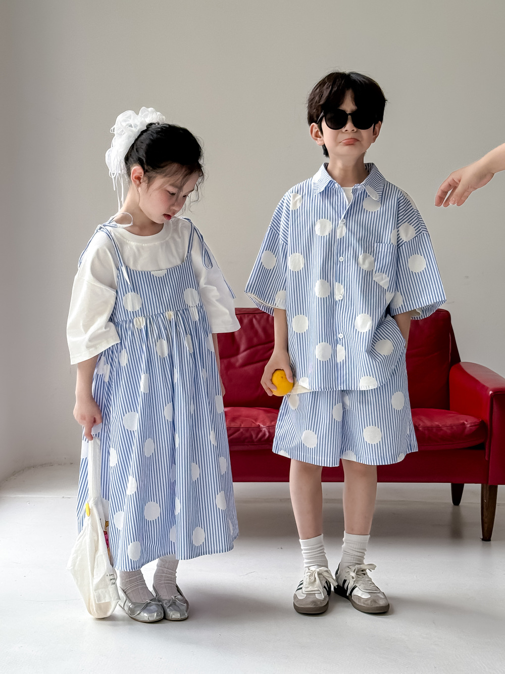 #キッズファッション #セットアップ #ワンピース #半袖シャツ #ショートパンツ #ポルカドット #ストライプ #韓国子供服 #夏服