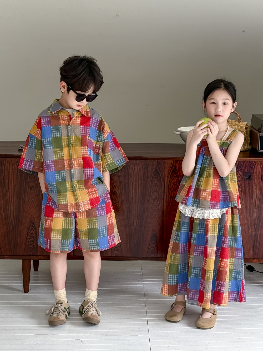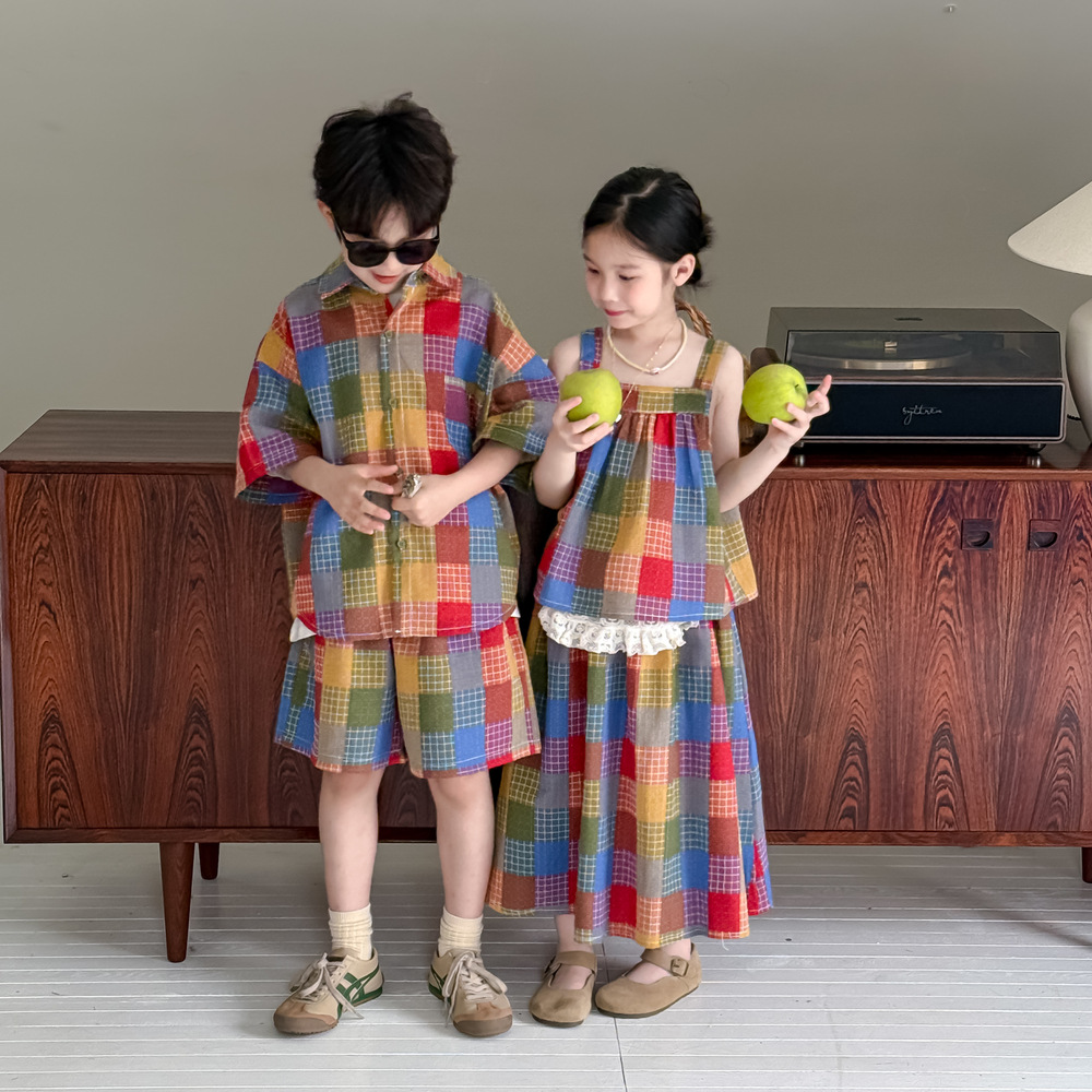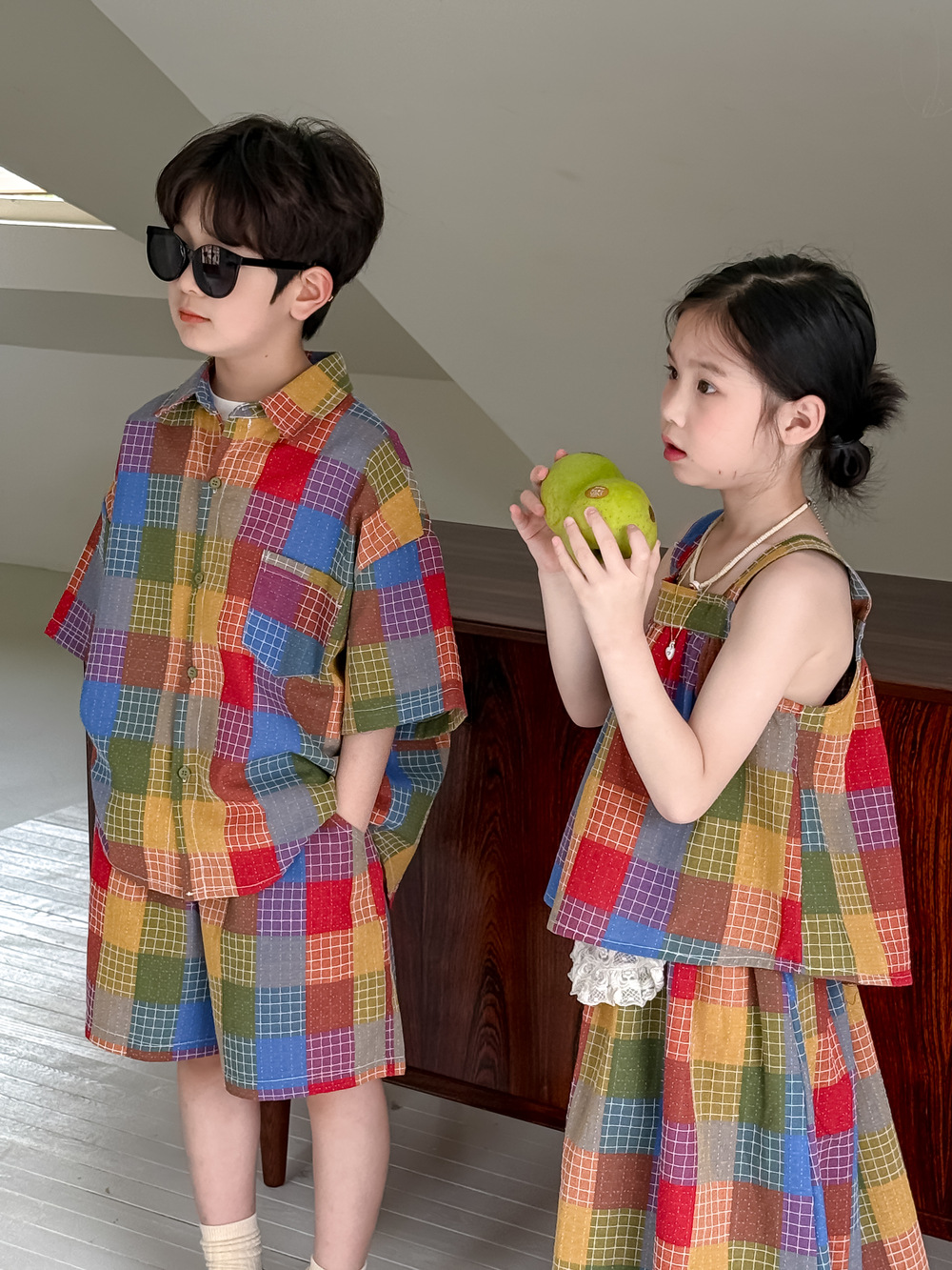 #キッズファッション #セットアップ #マドラスチェック #キャミソールブラウス #スカート #半袖シャツ #ショートパンツ #韓国子供服 #夏服