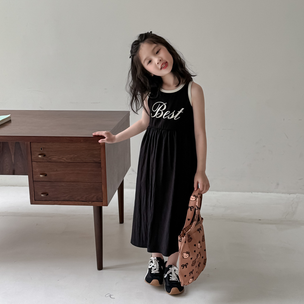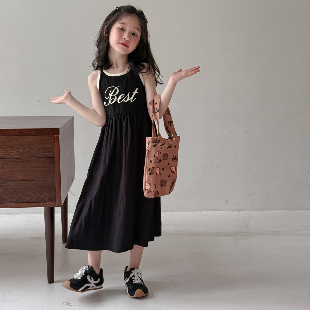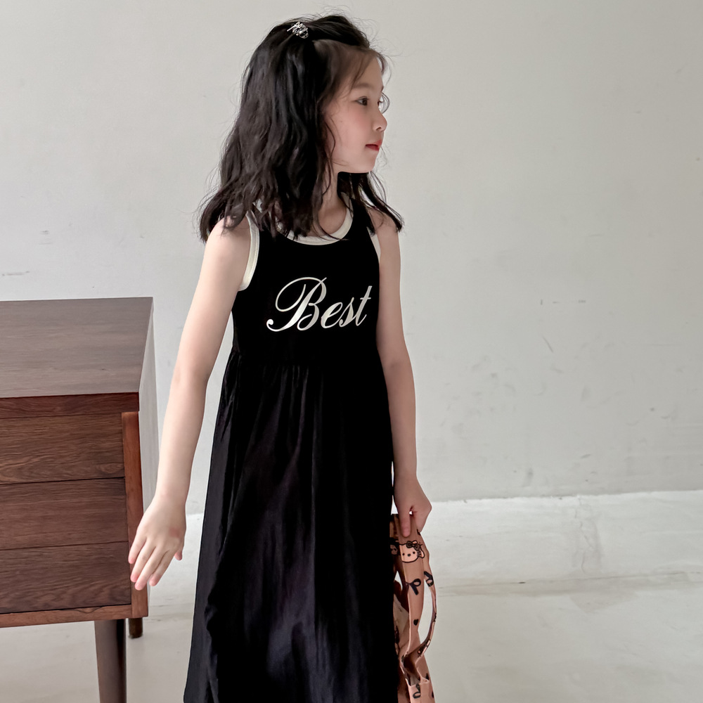 #キッズワンピース #キャミソールワンピース #ノースリーブワンピース #レターロゴ #夏服 #女の子ファッション #カジュアル
