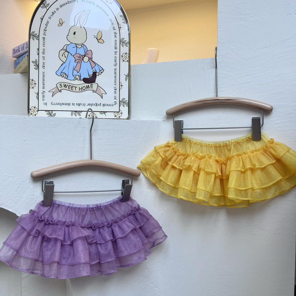 ふわふわのチュールとティアードフリルが可愛い、重ね着チュールティアードフリルエプロンスカートです。夏のベビー服に重ねるだけで、ぐっと華やかになる基本アイテム。