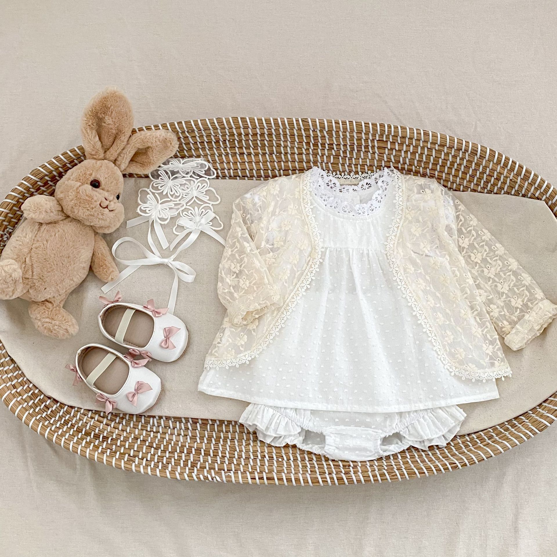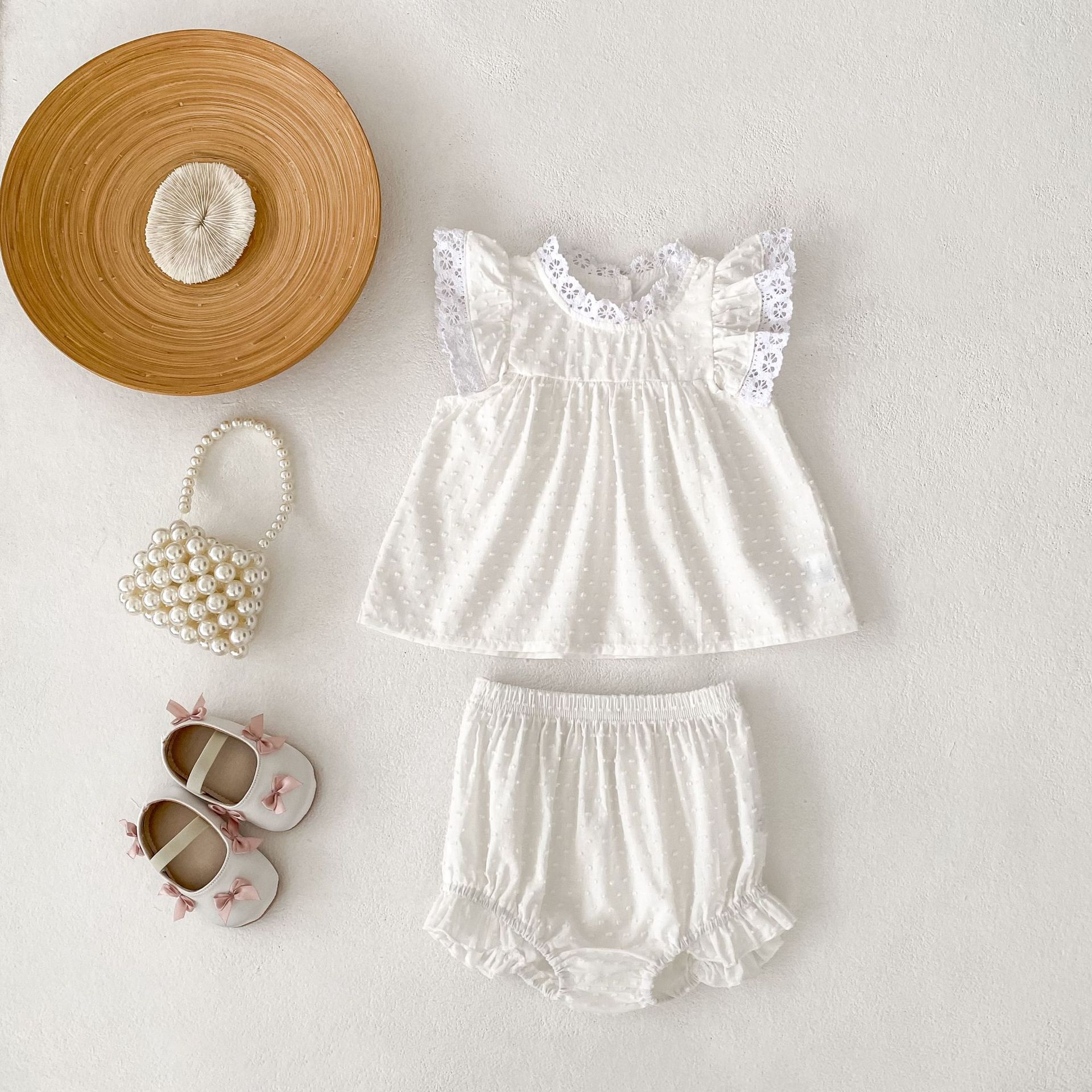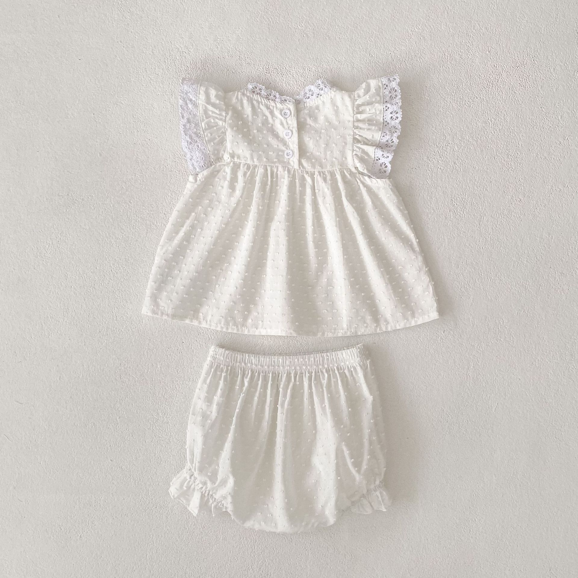 #ベビー服 #セットアップ #チュニックブラウス #ブルマパンツ #レース素材 #エンボスドット #夏物ベビー服 #女の子ベビー #韓国ベビー服