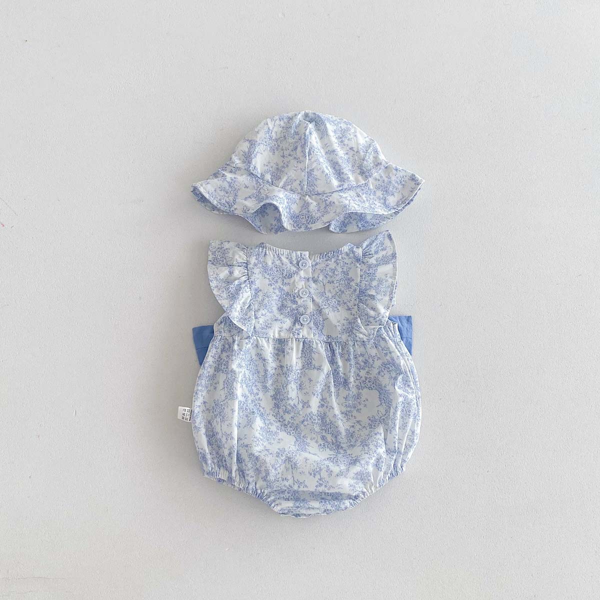 #ベビー服 #ロンパース #花柄 #フリル袖 #リボン #夏物ベビー服 #女の子ベビー #帽子セット