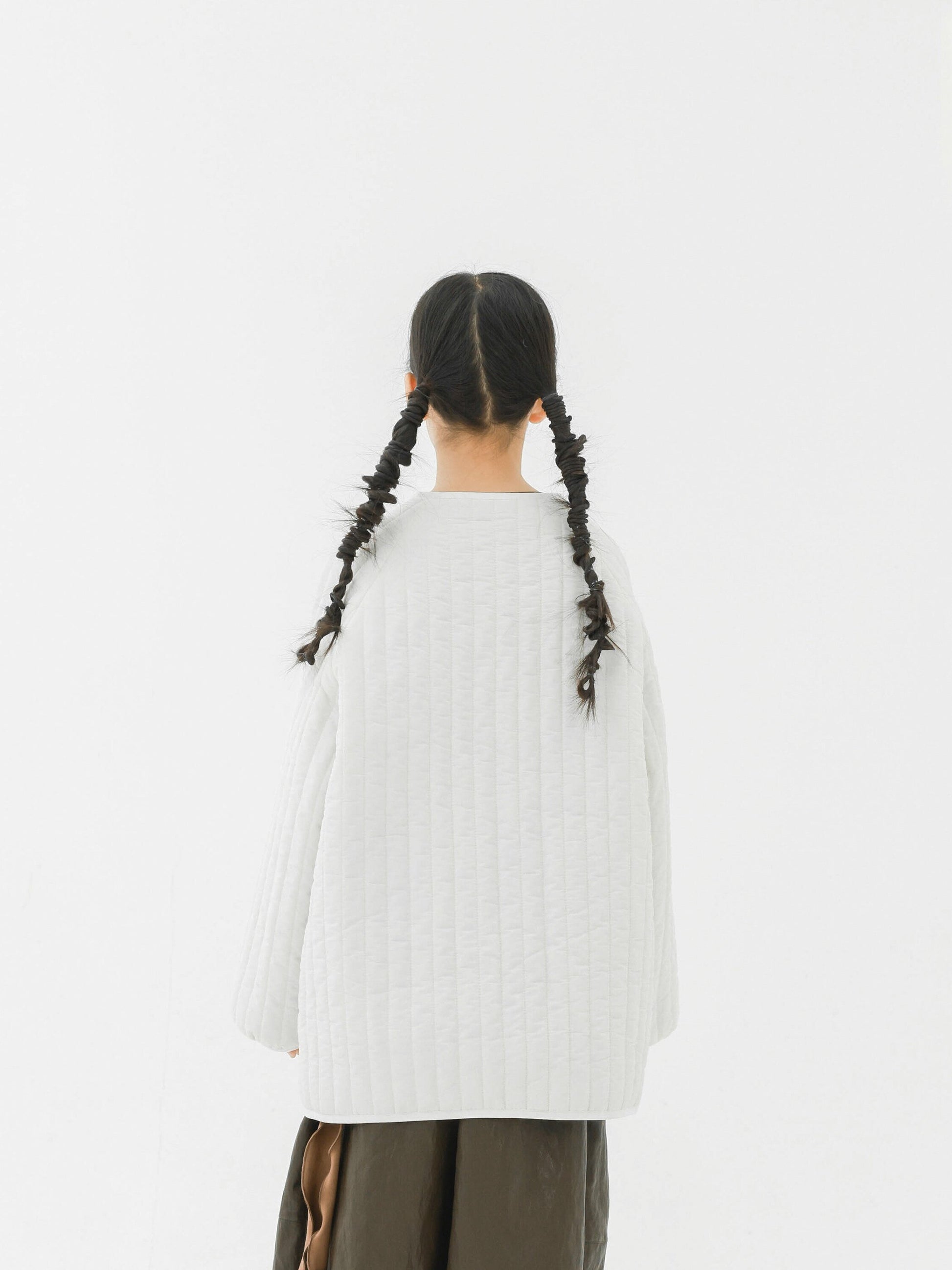 Pawpaw Liu | White Vertical Striped Quilted Jacket ホワイト ストライプ キルトジャケット【mh0020085】