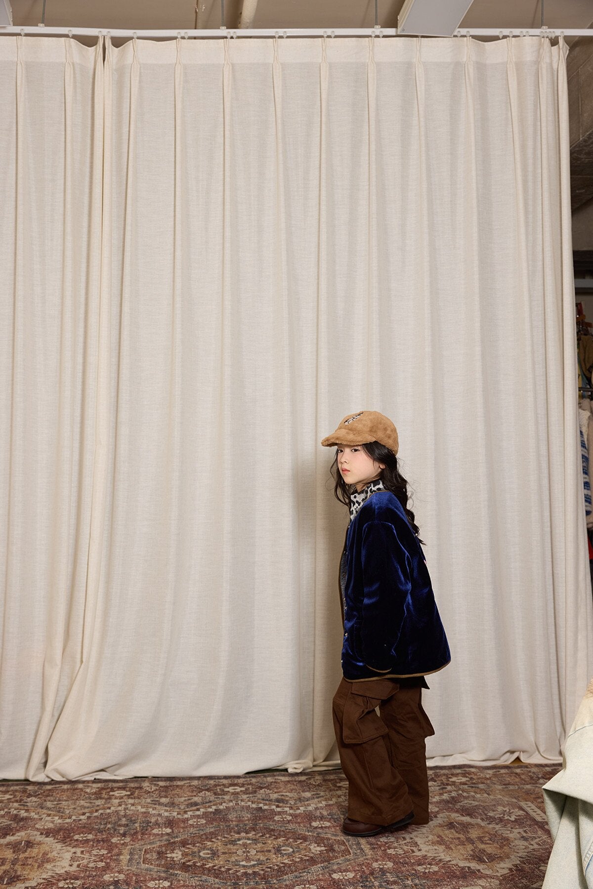 ベルベットの贅沢な光沢と中綿のぬくもりが包み込む、ヴィンテージな装い