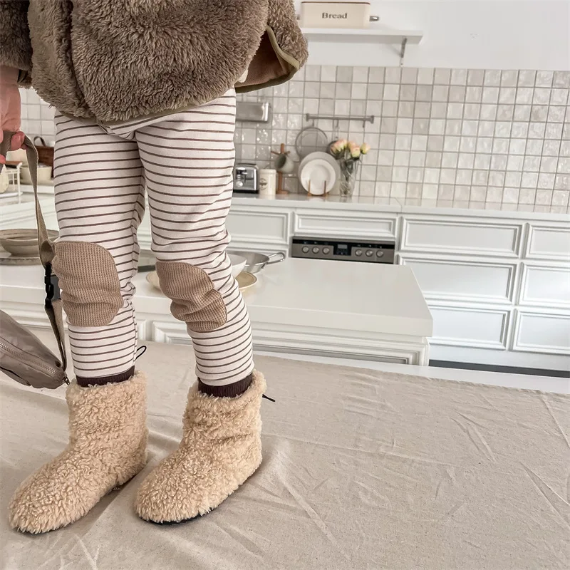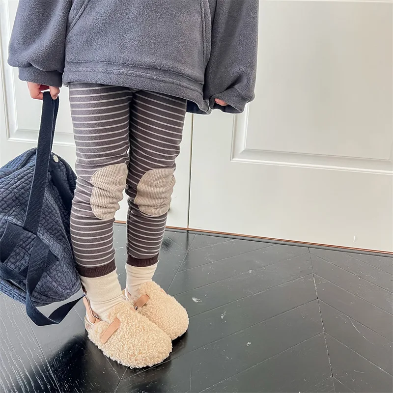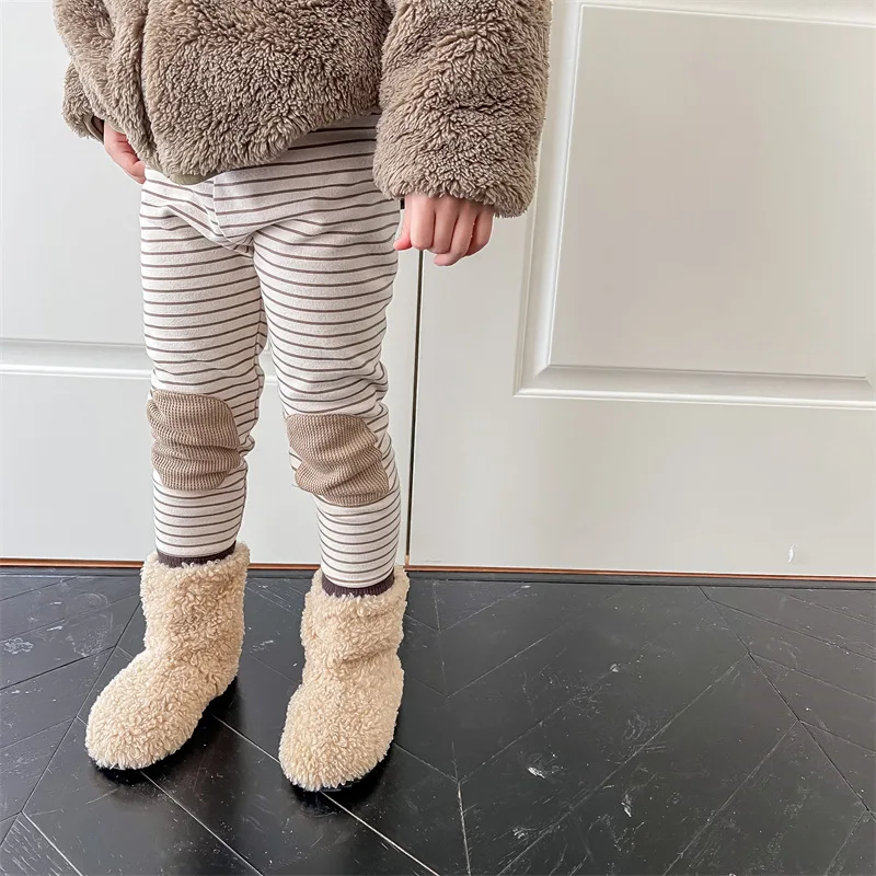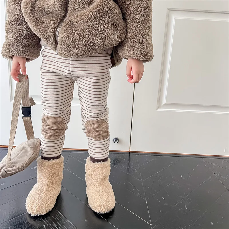 キッズ ボーダー膝パッチ裏起毛レギンス(レギパン)は、寒い季節に子供たちを温かく包み込み、おしゃれなスタイルを演出します。