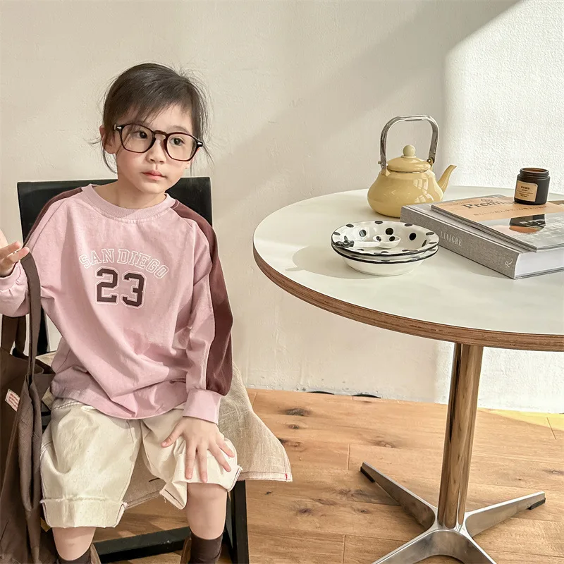 トレンディなデザインと快適な着心地が特徴の、キッズ向け長袖Tシャツが新登場。パッチワークとラグランスリーブがユニークな印象を与え、おしゃれな雰囲気を演出します。アプリコットとピンクの2カラーからお選びいただけます。普段使いにもぴったりで、幅広いシーンでお子様をおしゃれに演出します。