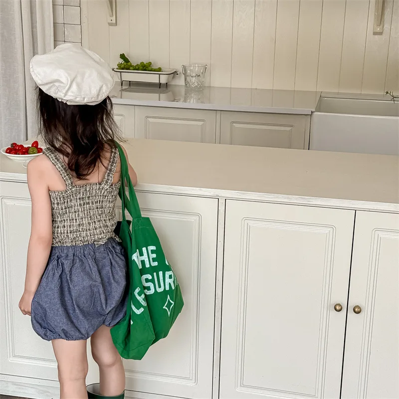 夏にぴったりな、キャミソールブラウスが登場しました。プリーツとシャーリングが施され、上品な印象を与える一方で、キャミソールデザインが涼しげな雰囲気を演出します。チェック柄がカジュアルさをプラスし、お子様の着こなしにアクセントを加えます。2カラーの展開で、お好みのスタイルをお選びいただけます。キッズ向けのおしゃれなトップスで、夏のお出かけをより楽しいものにしましょう。