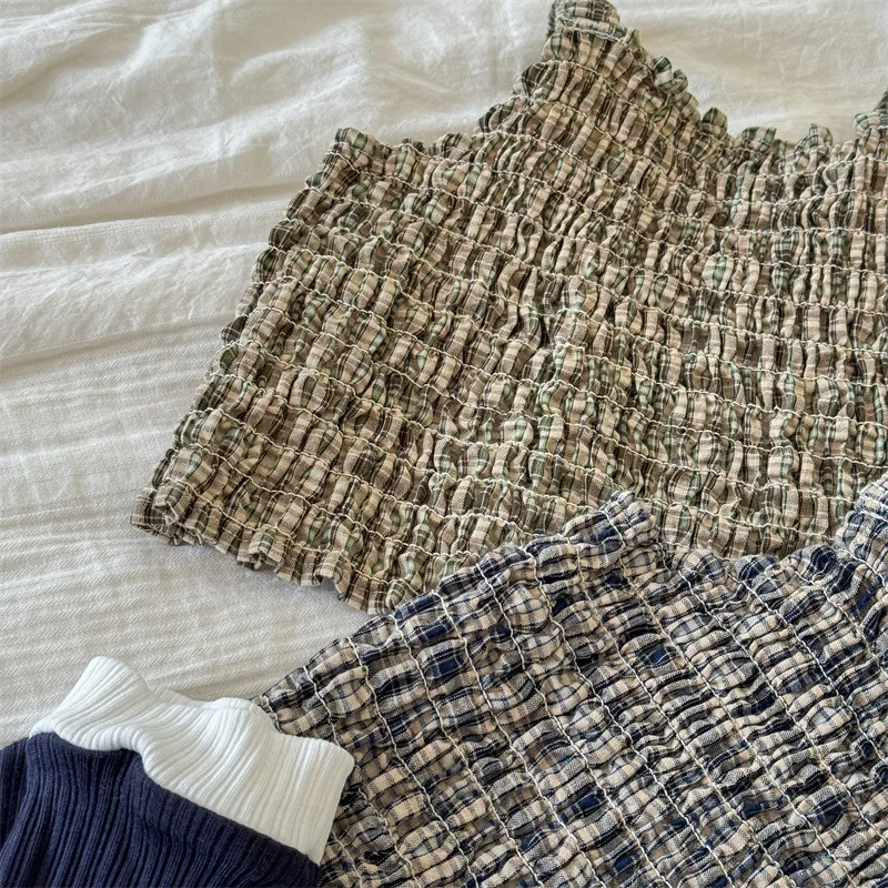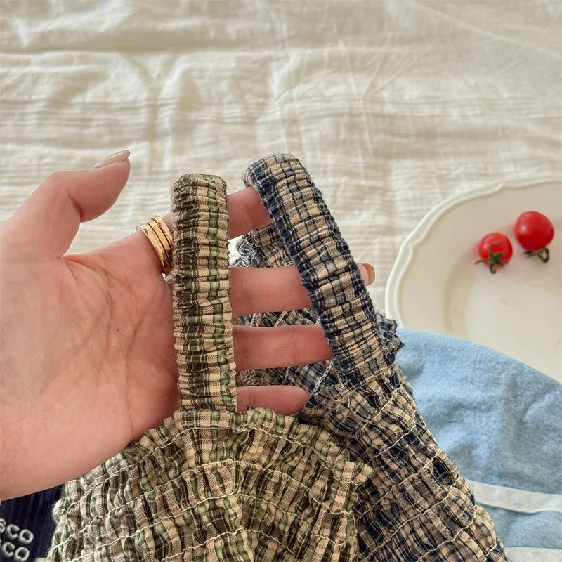 キッズトップス プリーツ シャーリング キャミソール ブラウス チェック 2カラー