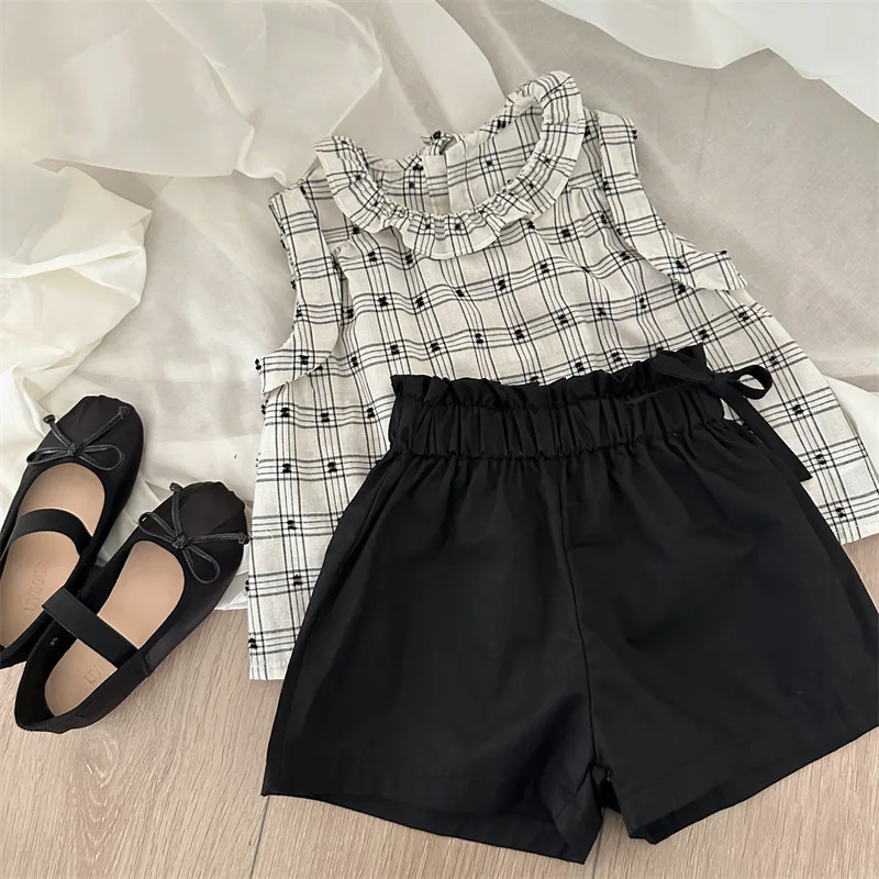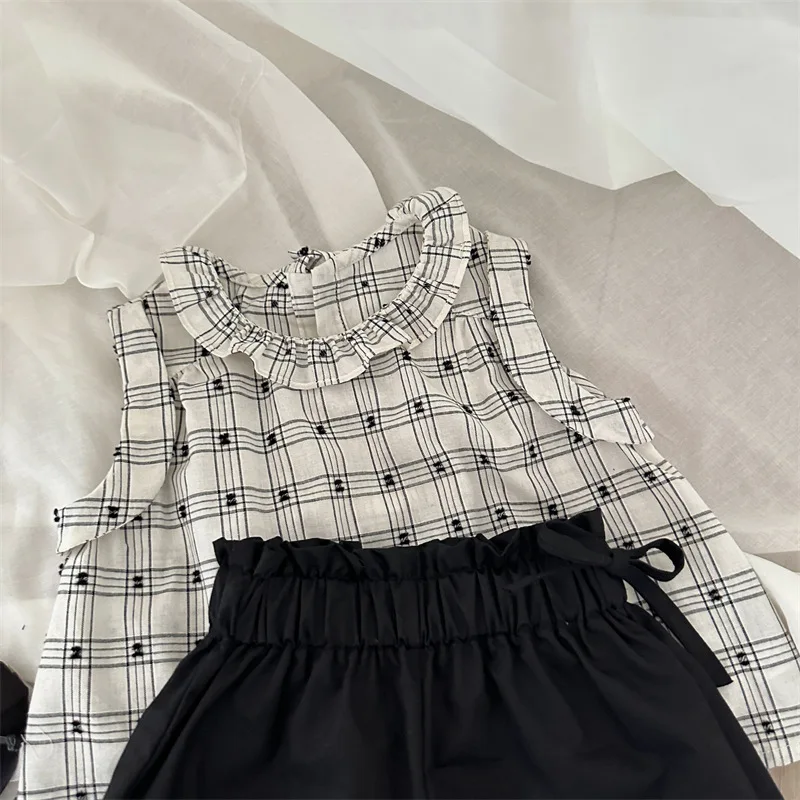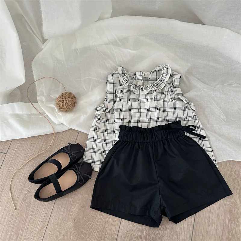 #夏ファッション #キッズスタイル #チェックトップス #フリル襟 #ノースリーブ #キュート