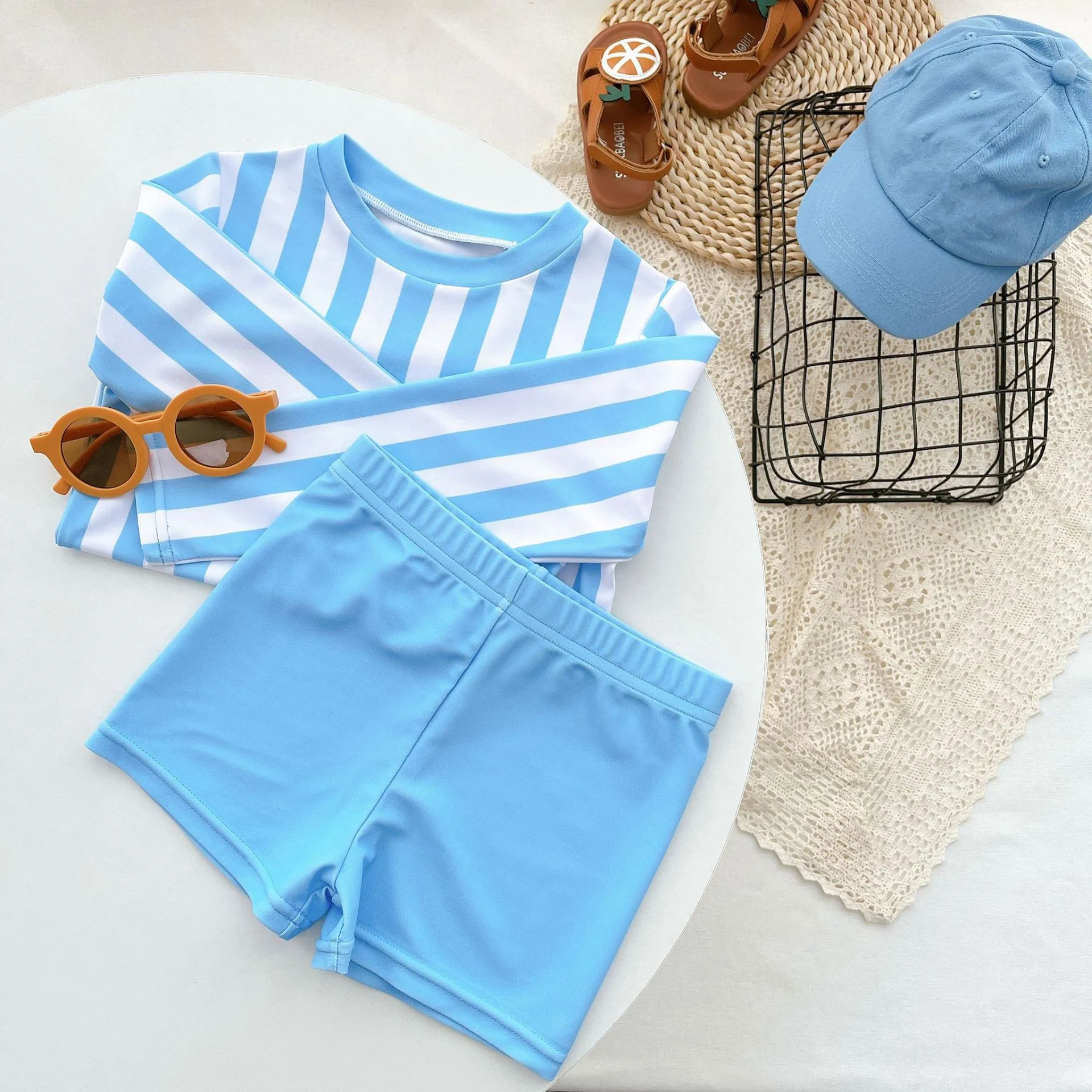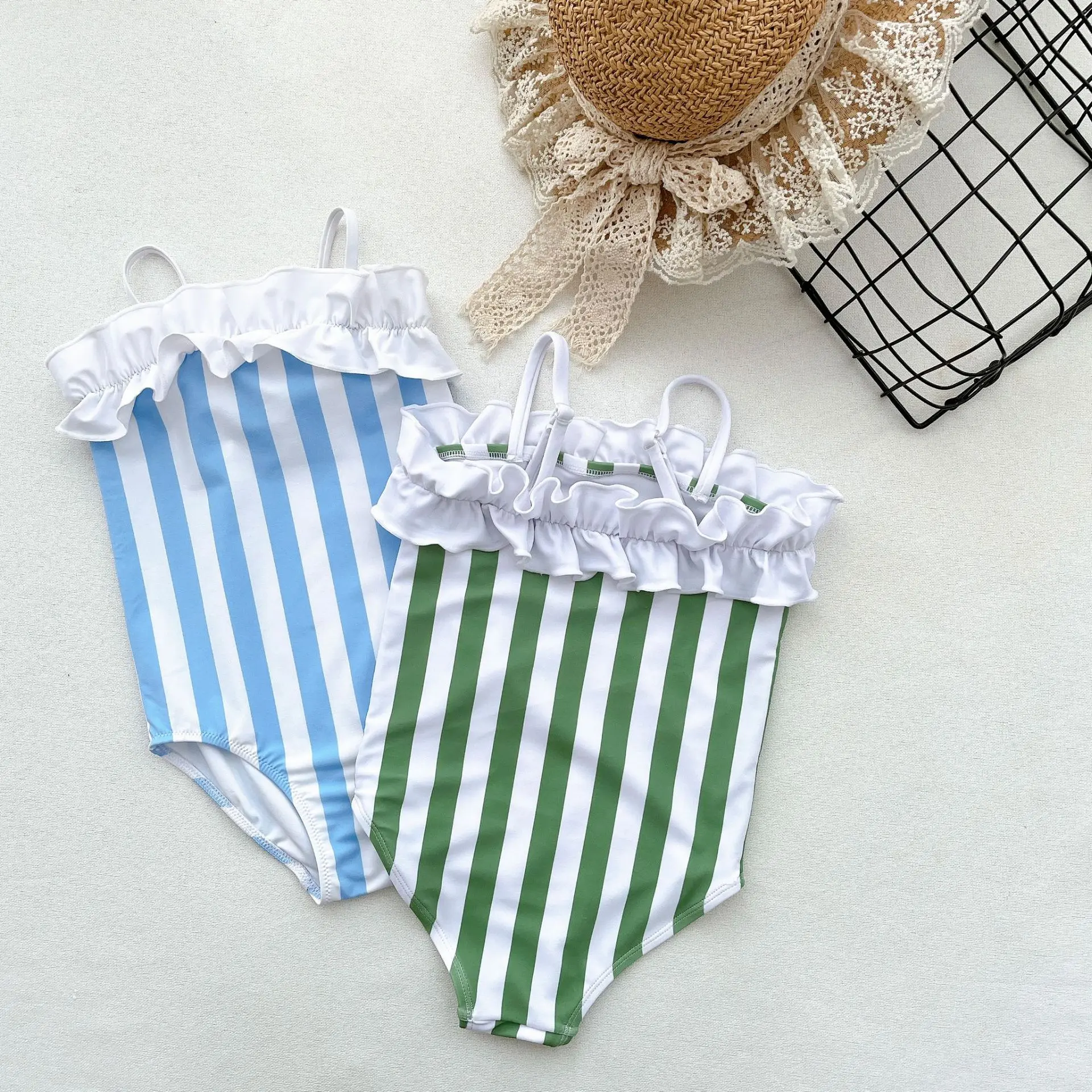 キッズ 水着 ストライプ ボーイズセット フリル ワンピース ツーピース スイムウェア リンク 兄弟 姉妹 お揃い コーデ【mh0000845】
