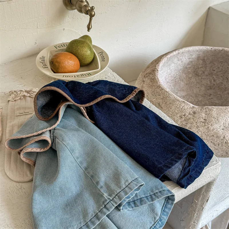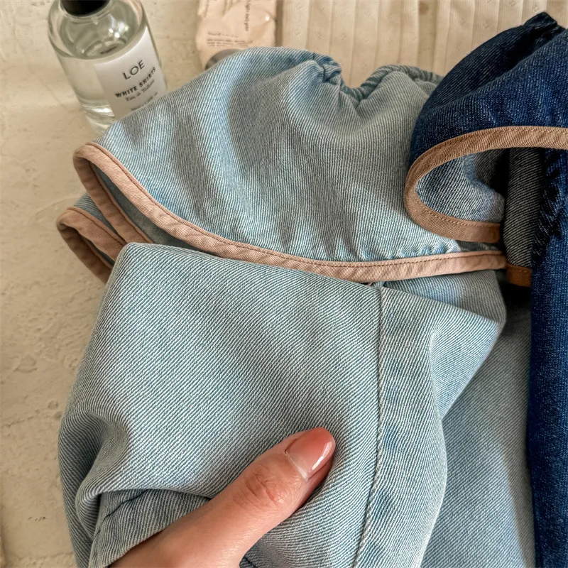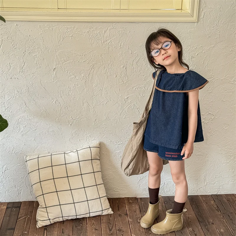 夏のおしゃれなキッズトップスが登場しました。デニム素材のノースリーブブラウスで、ビッグサークル襟が特徴的です。2つのカラーバリエーションからお選びいただけます。通気性の良いデニム素材で作られ、お子さまが快適に過ごせるよう配慮されています。カジュアルなデザインでありながらも、洗練されたスタイルを演出します。お出かけや日常の着こなしにぴったりのアイテムです。