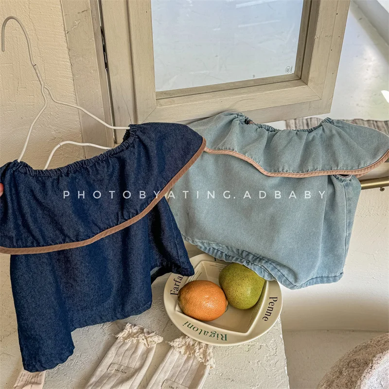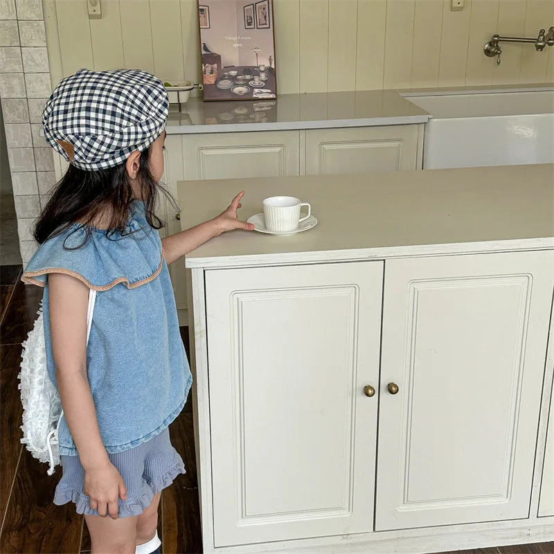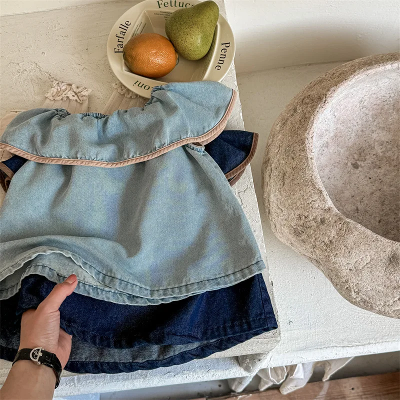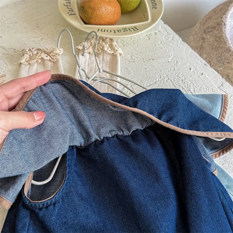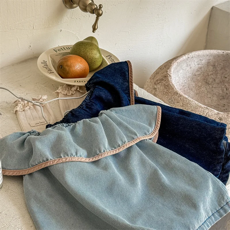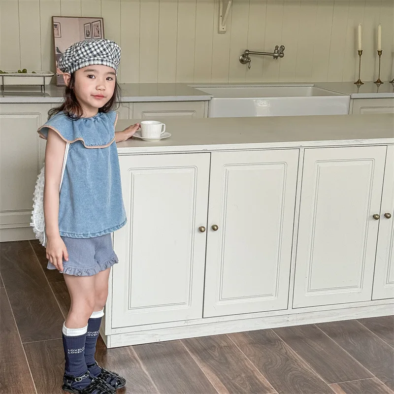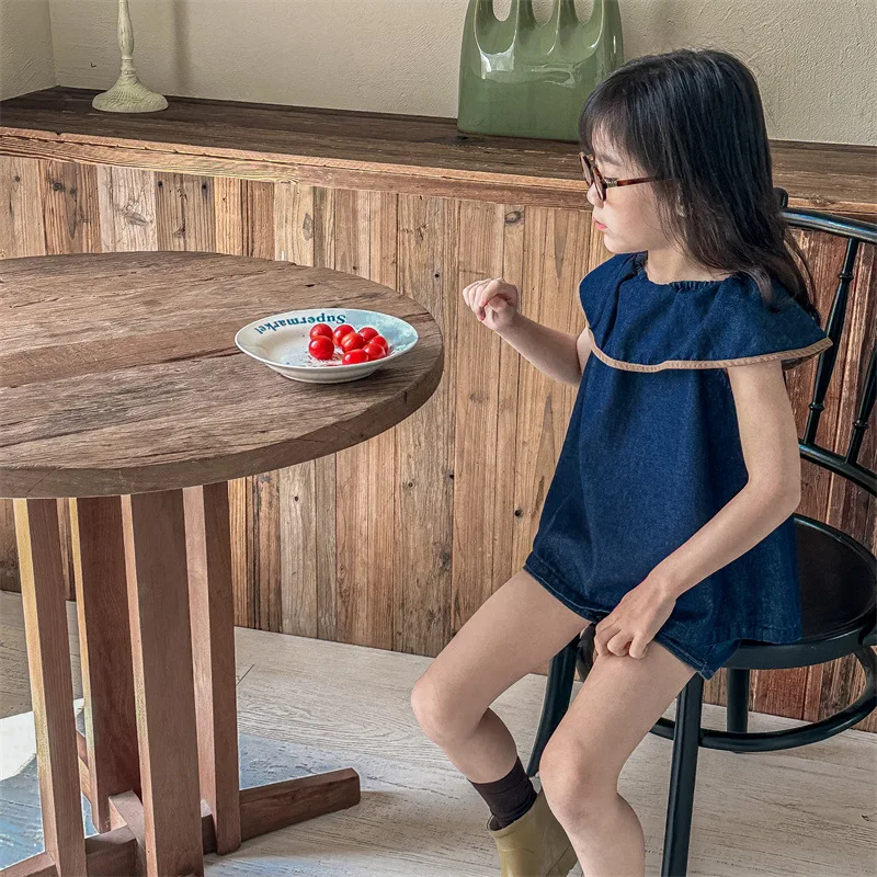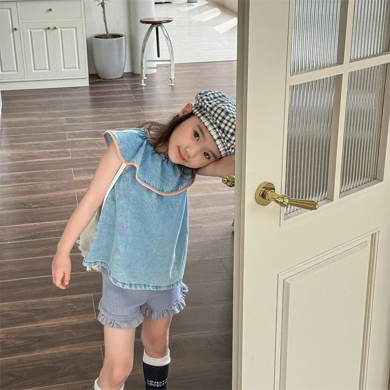 キッズトップス デニム ビッグサークル襟 ノースリーブブラウス 2カラー【mh0005437】