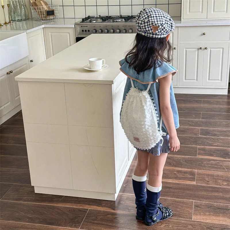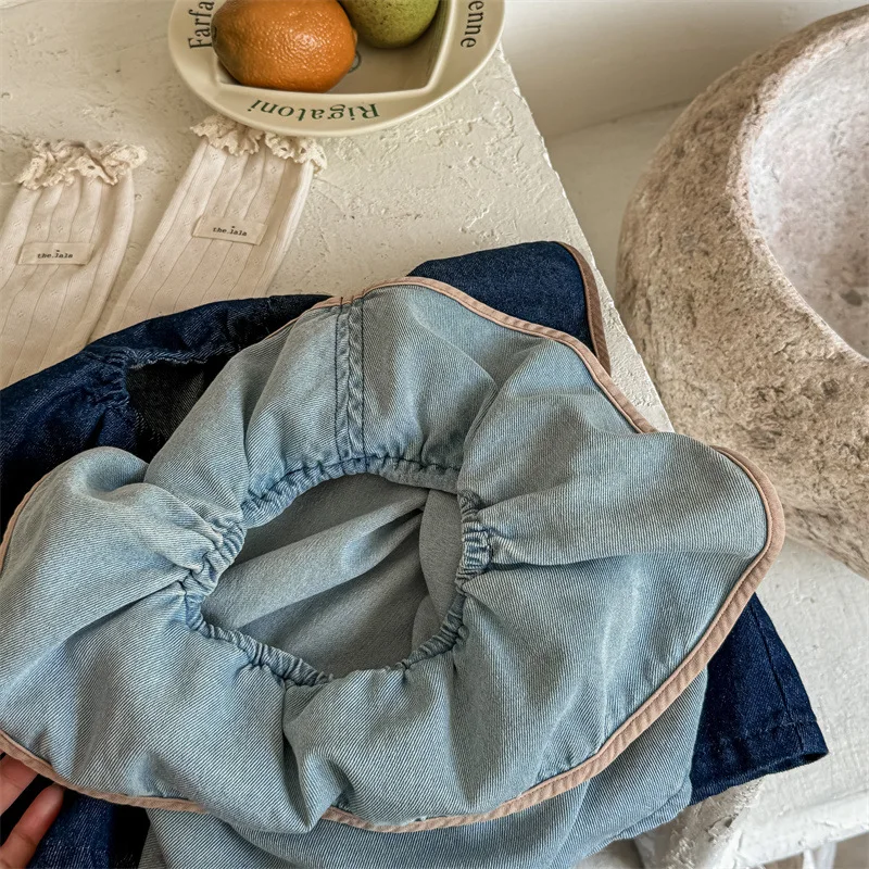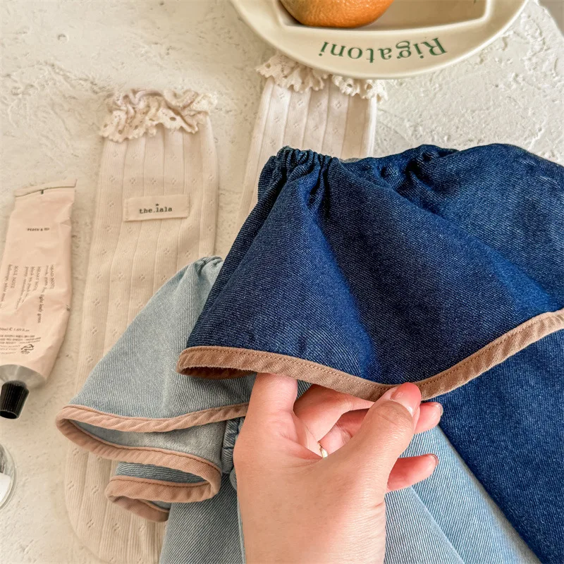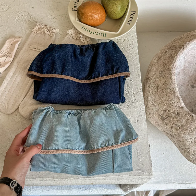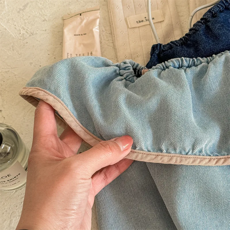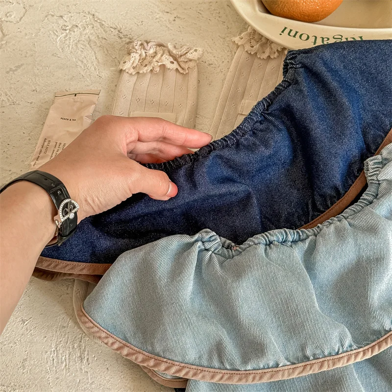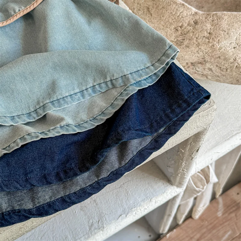 キッズトップス デニム ビッグサークル襟 ノースリーブブラウス 2カラー【mh0005437】
