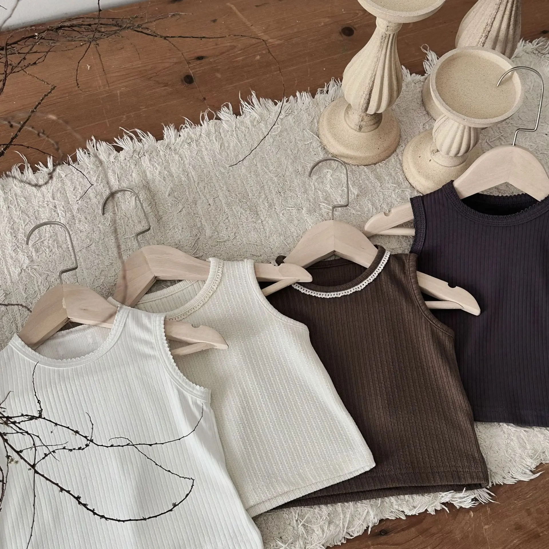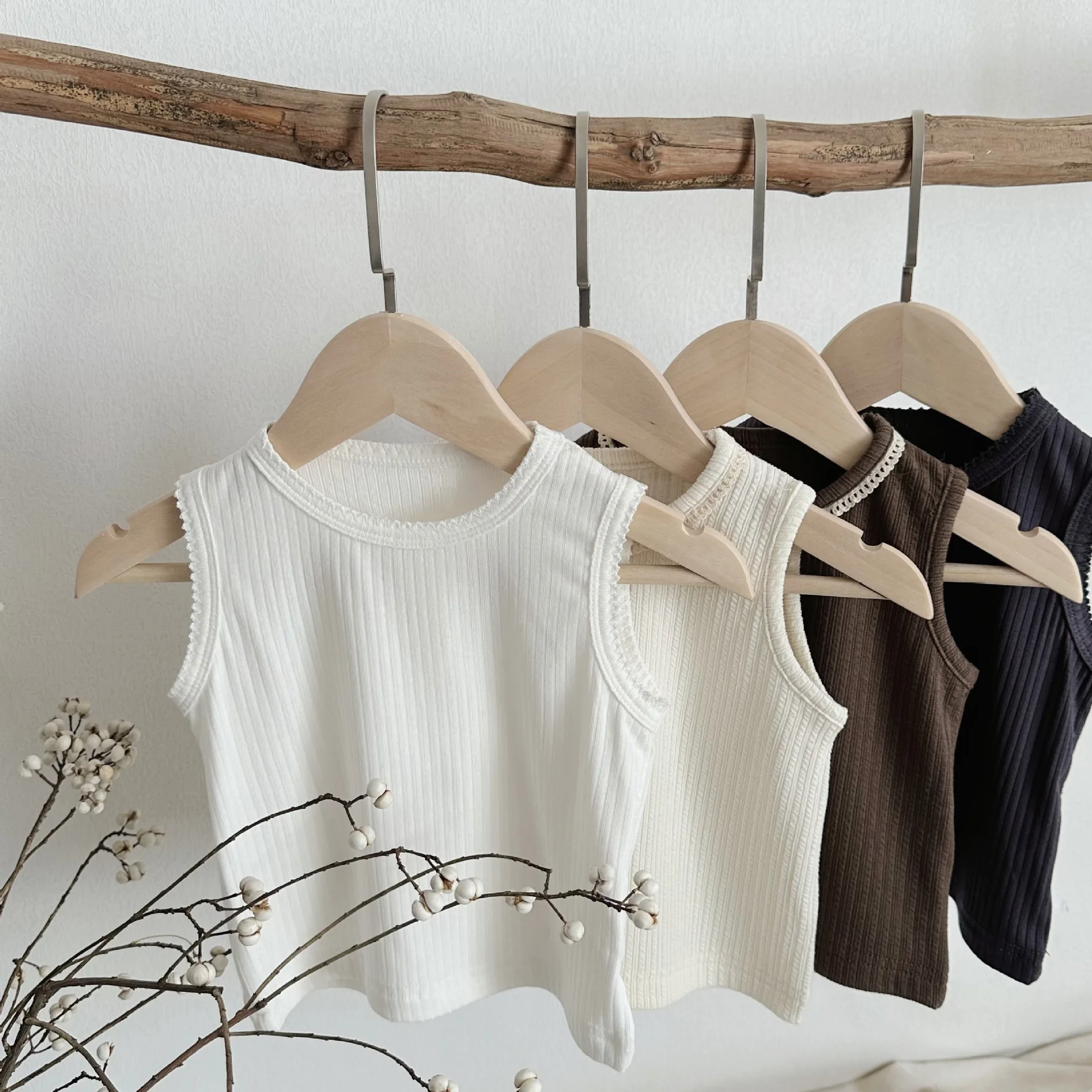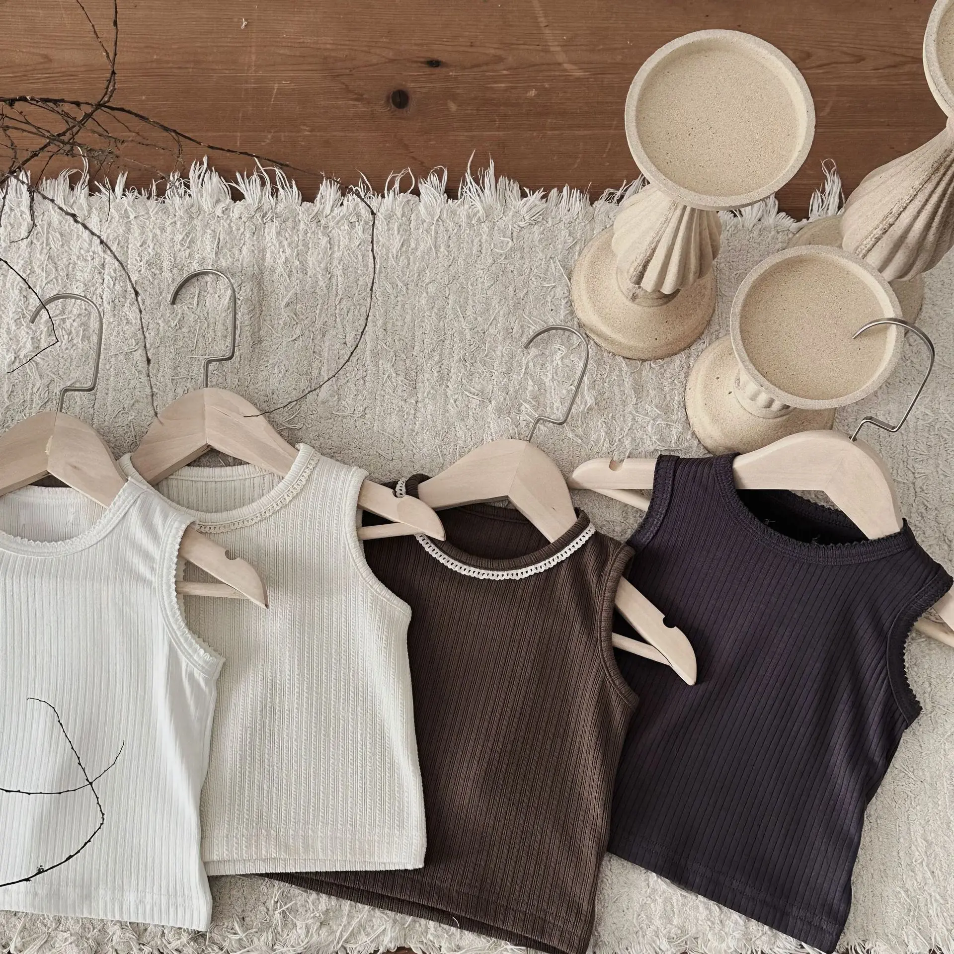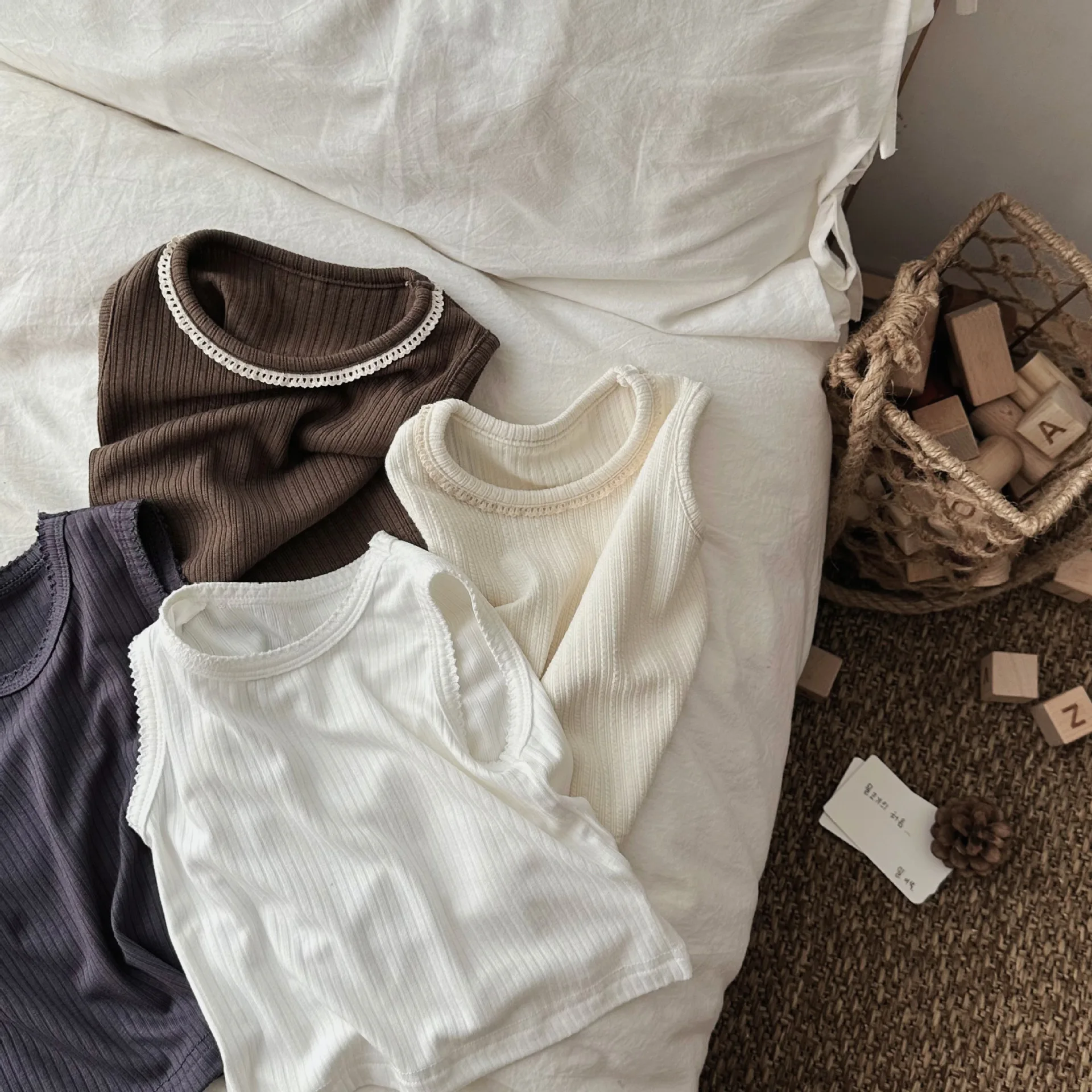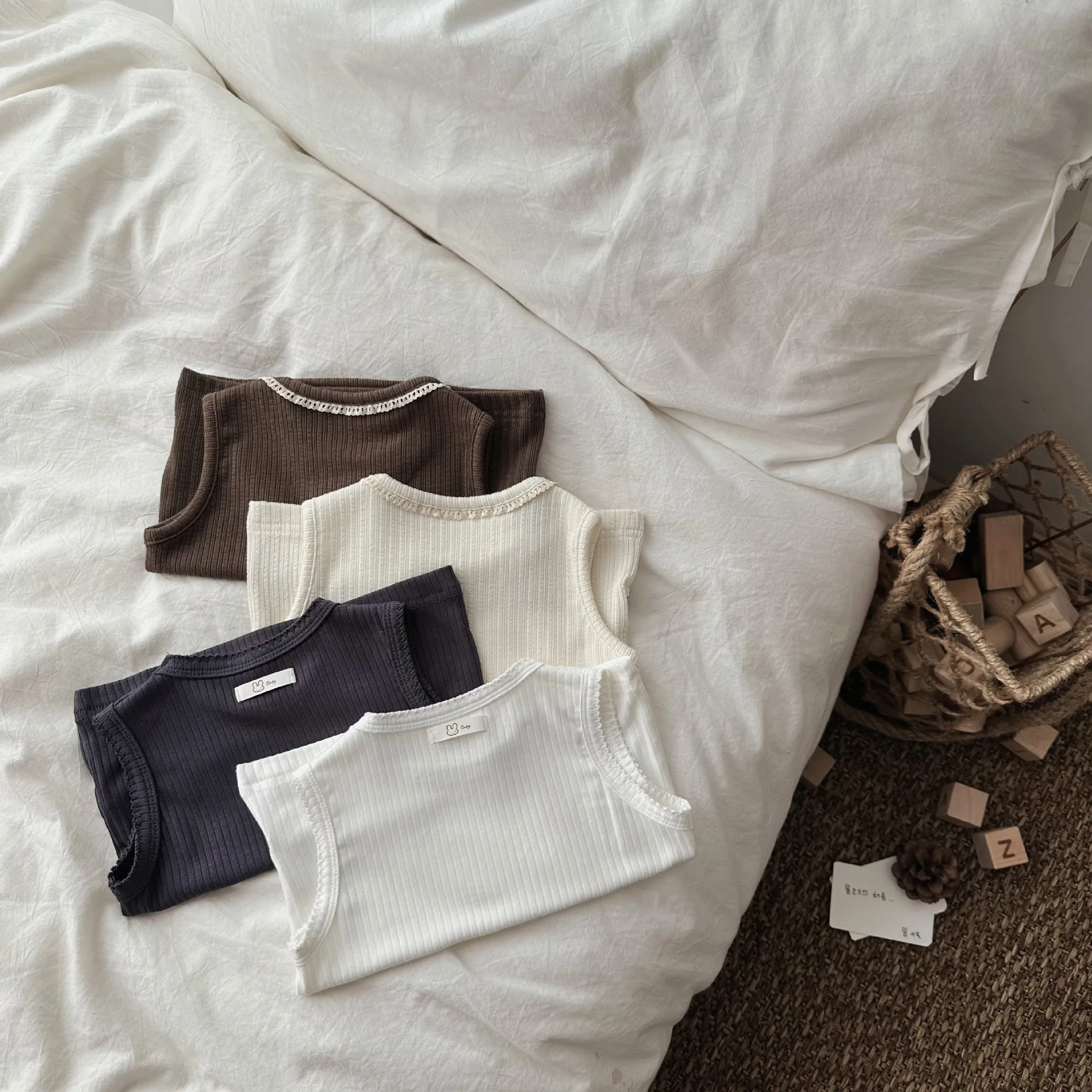 ベビートップス リブタンクトップ ノースリーブTシャツ シンプルベーシック 4カラー【mh0005464】