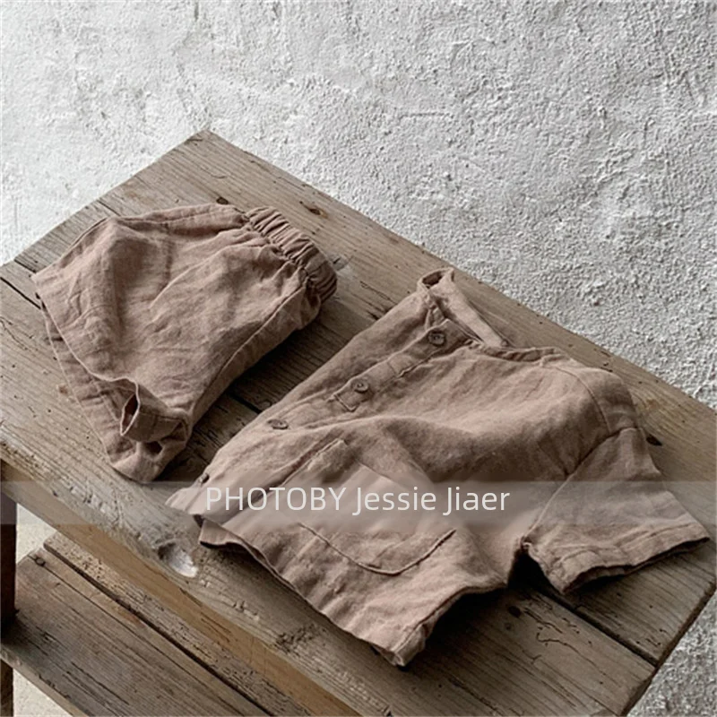 キッズセットアップ 2点セット 半袖シャツ+ショートパンツ シンプルベーシック 2カラー【mh0006035】