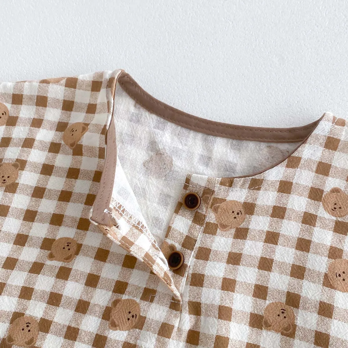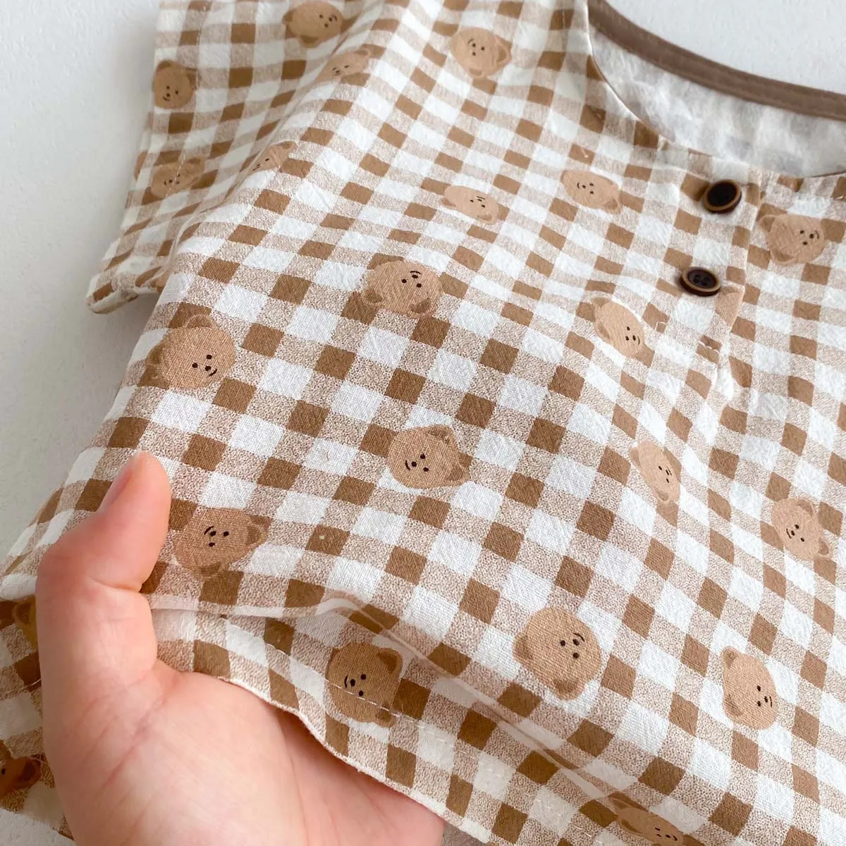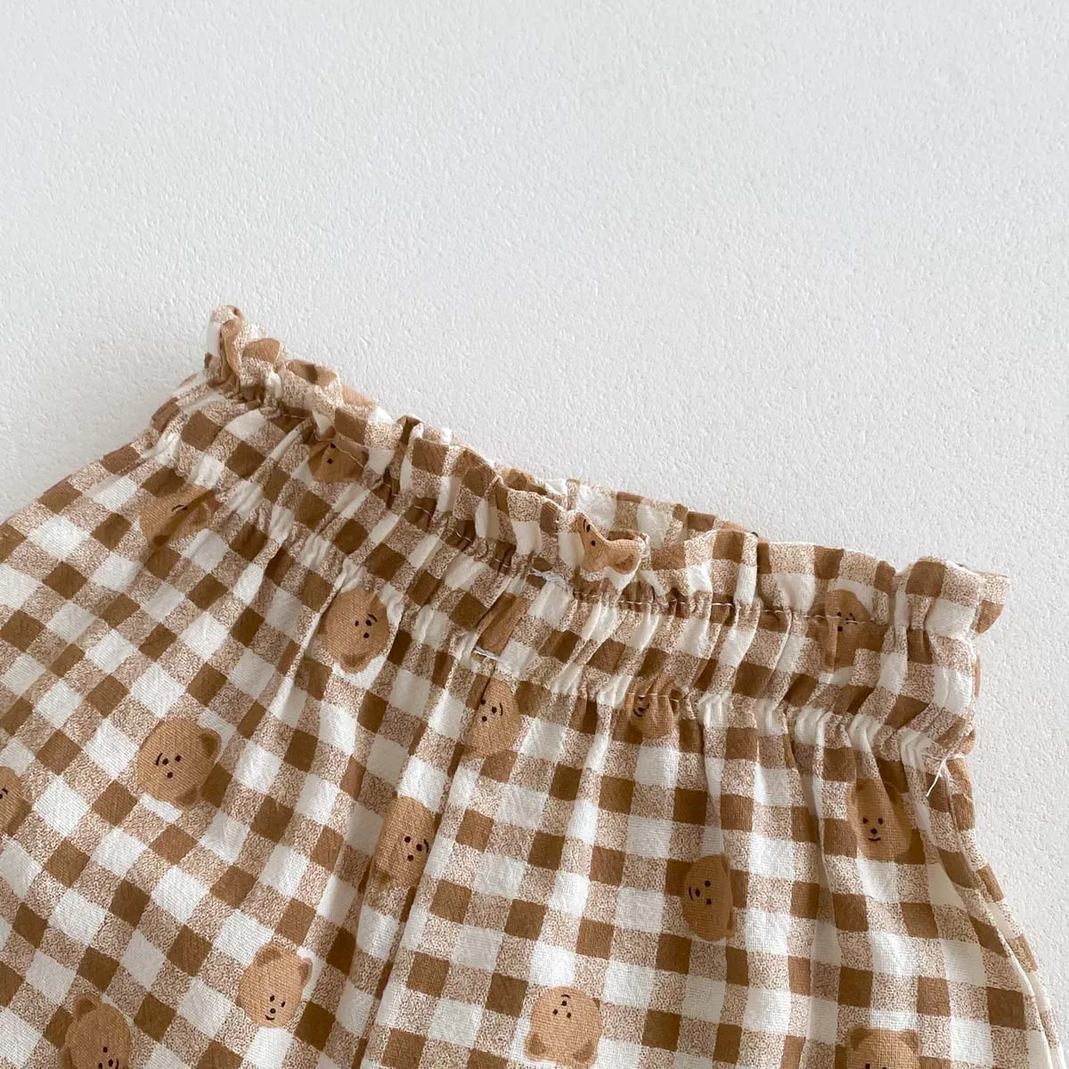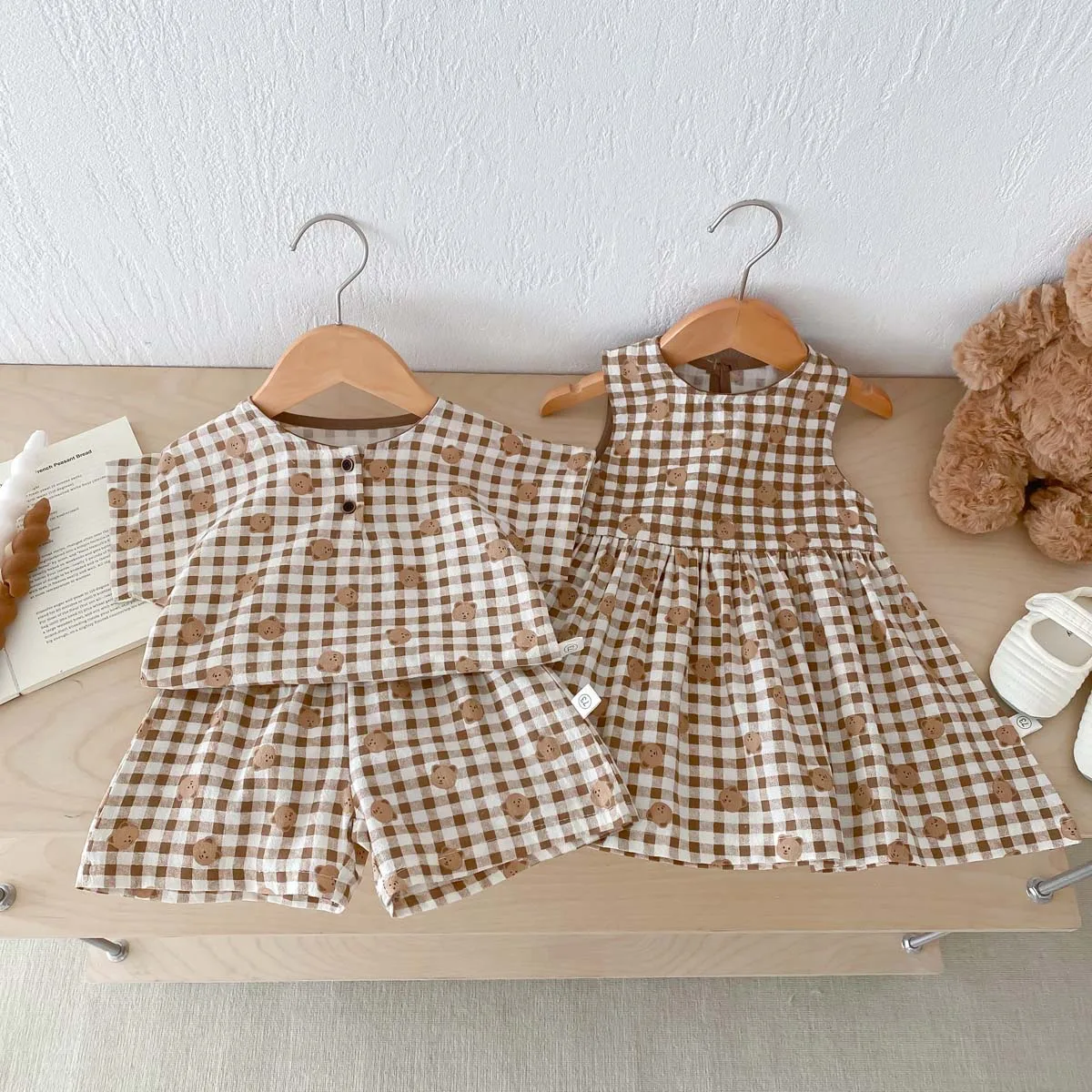 ベビーセットアップ 2点セット/ワンピース 半袖Tシャツ+ショートパンツ/ノースリーブワンピース ベアくまチェック リンクコーデ 兄弟姉妹 お揃いコーデ【mh0006269】
