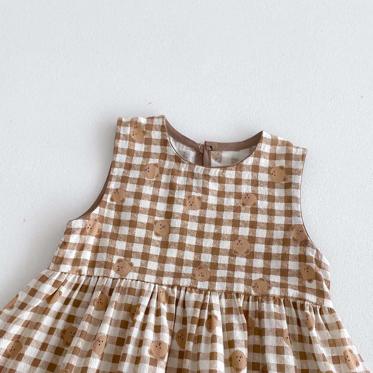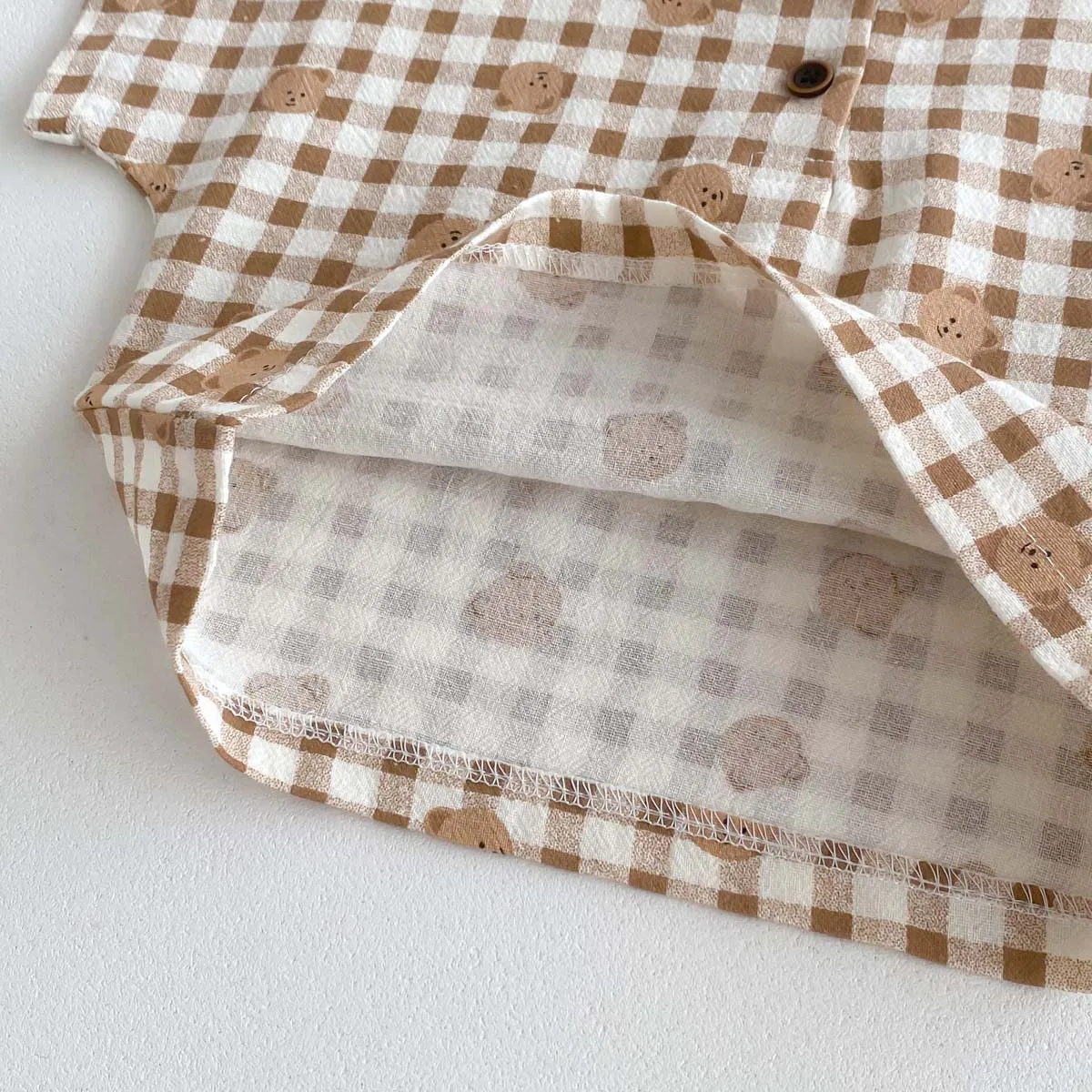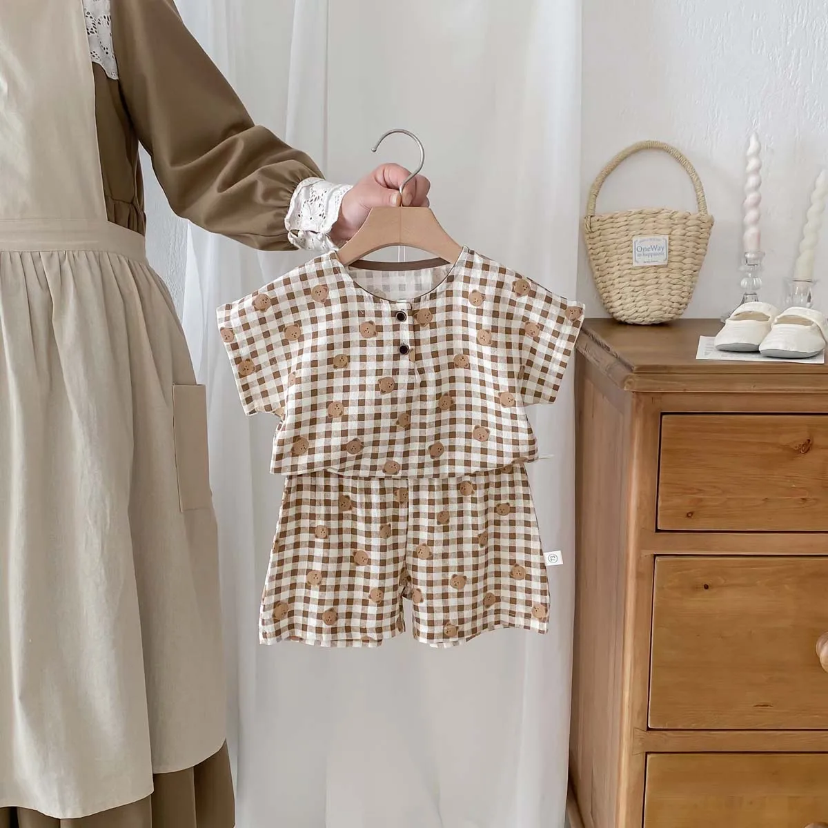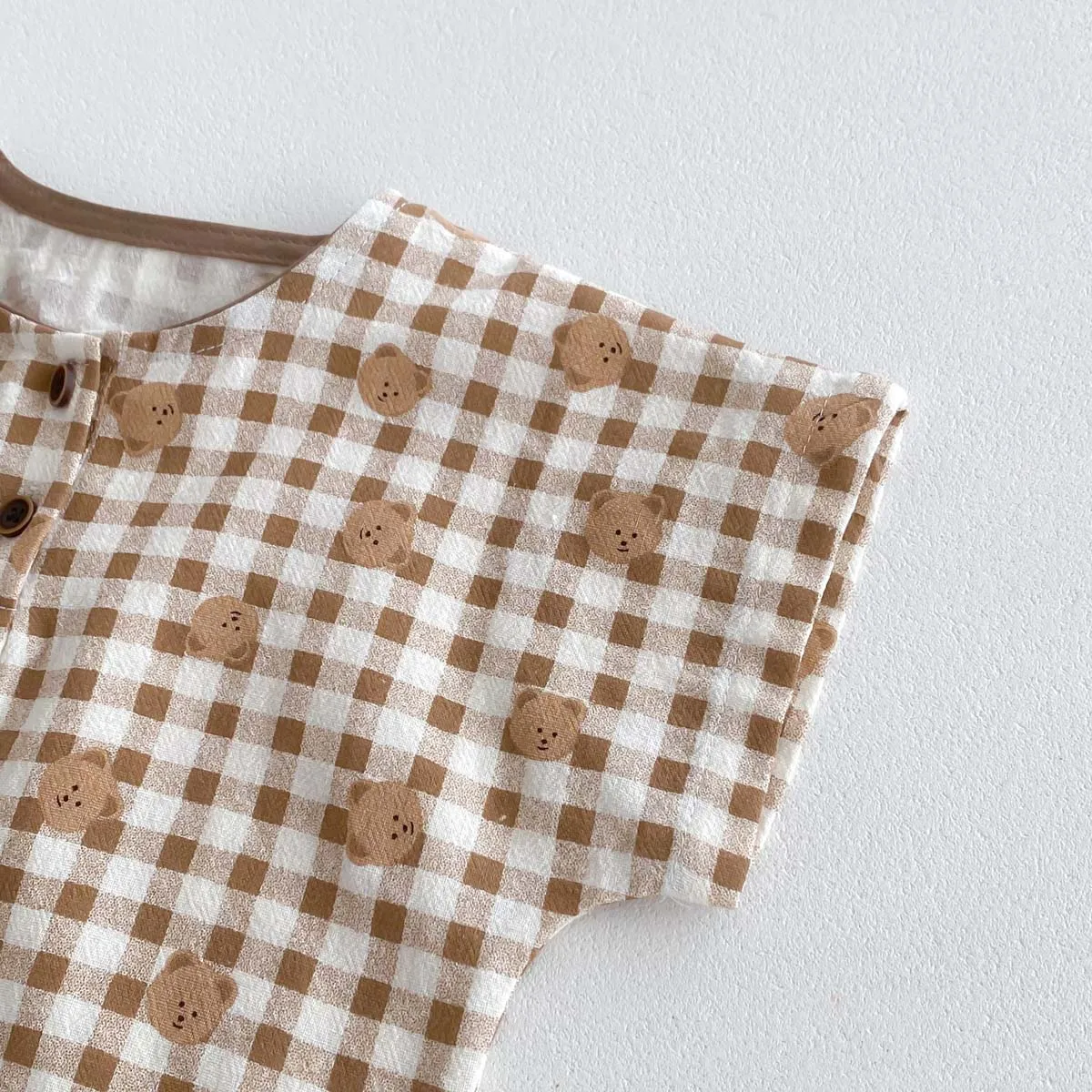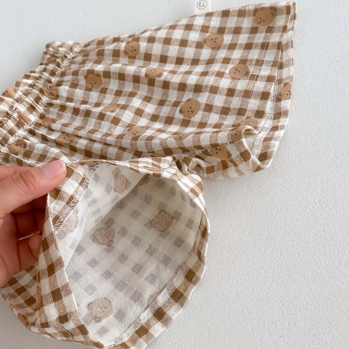 ベビーセットアップ 2点セット/ワンピース 半袖Tシャツ+ショートパンツ/ノースリーブワンピース ベアくまチェック リンクコーデ 兄弟姉妹 お揃いコーデ【mh0006269】