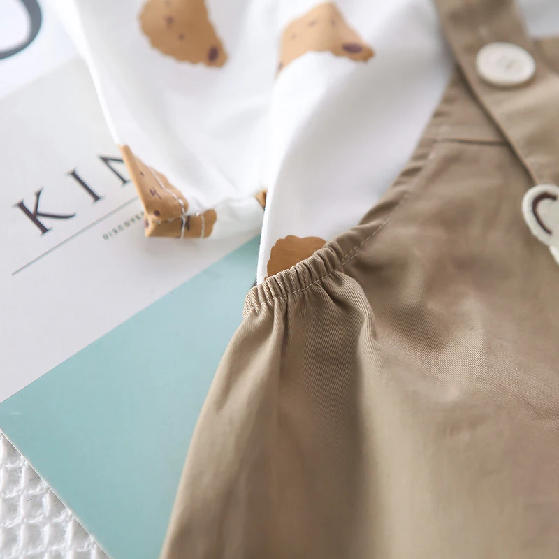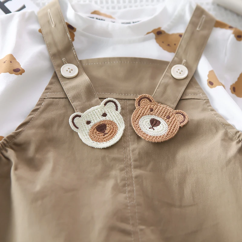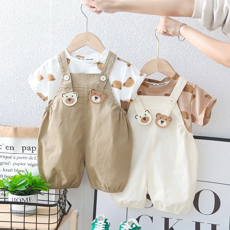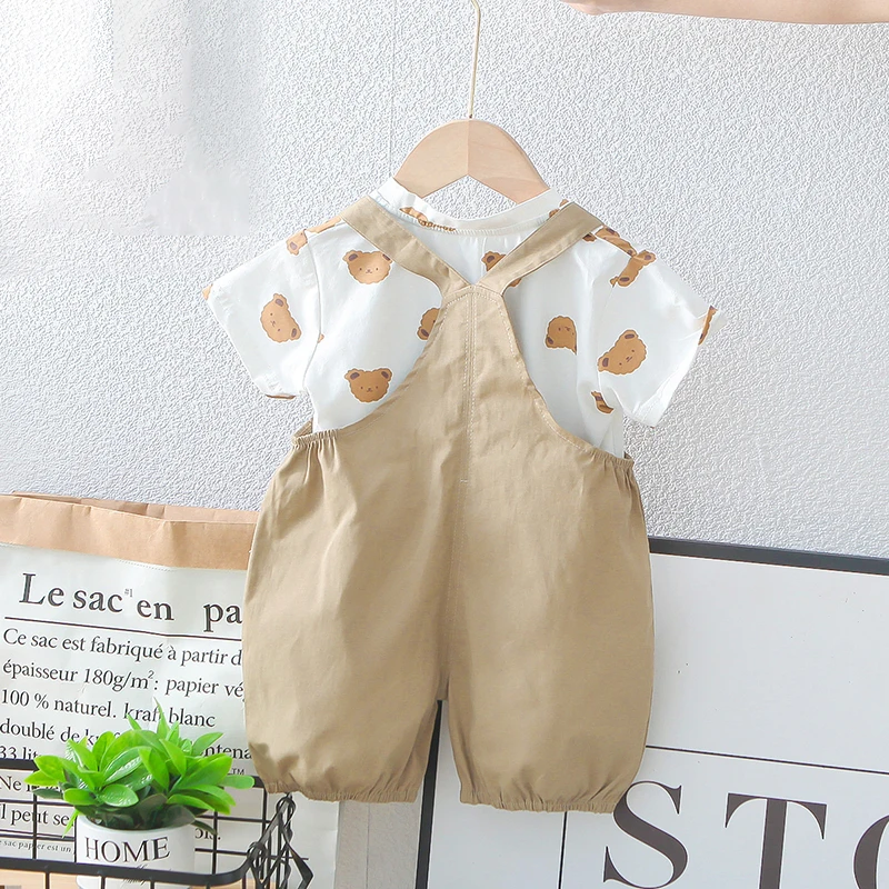 キッズセットアップ 2点セット 半袖Tシャツ+オーバーオール ベアくま 2カラー【mh0006526】